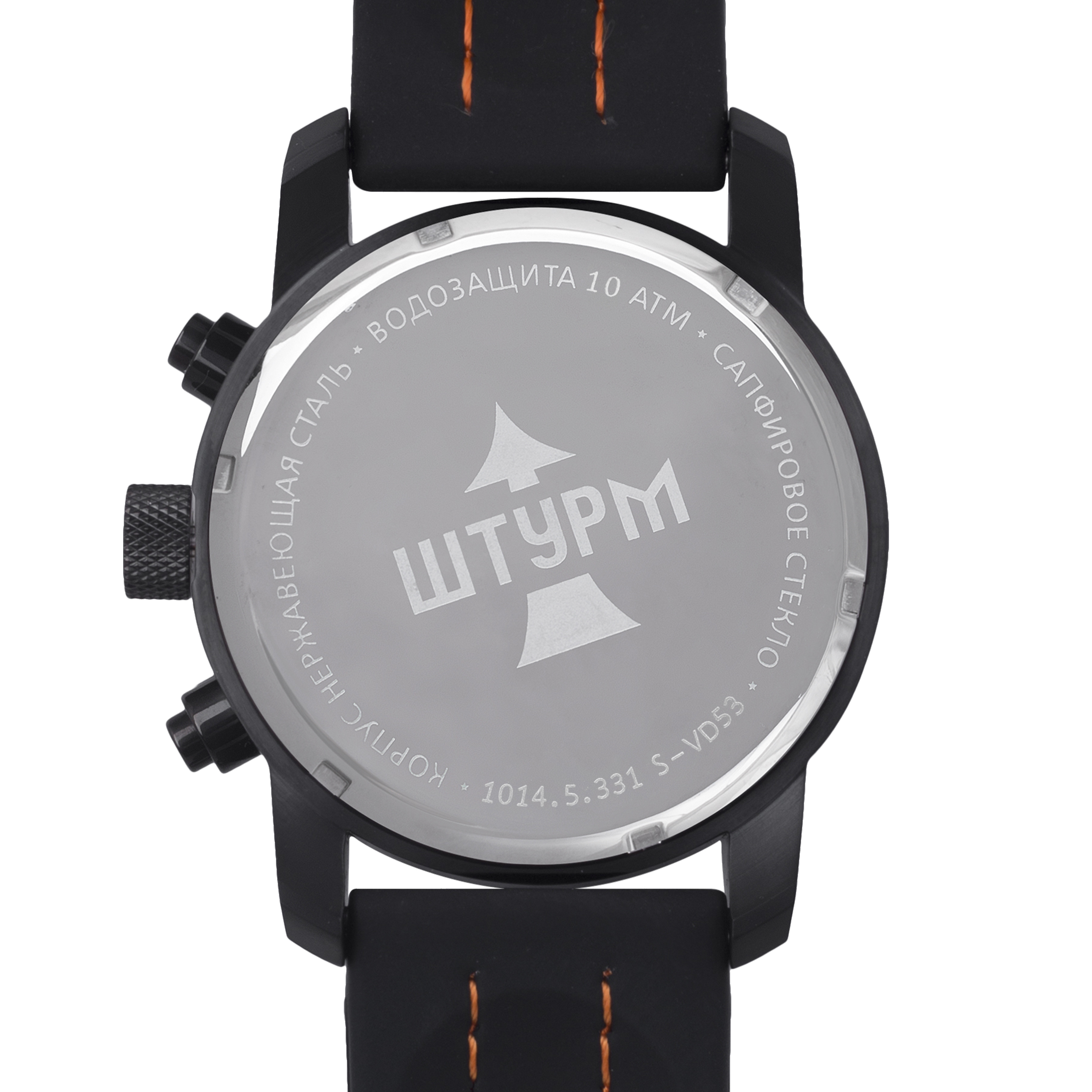 Наручные кварцевые часы Штурм черные, с ремешком из каучука