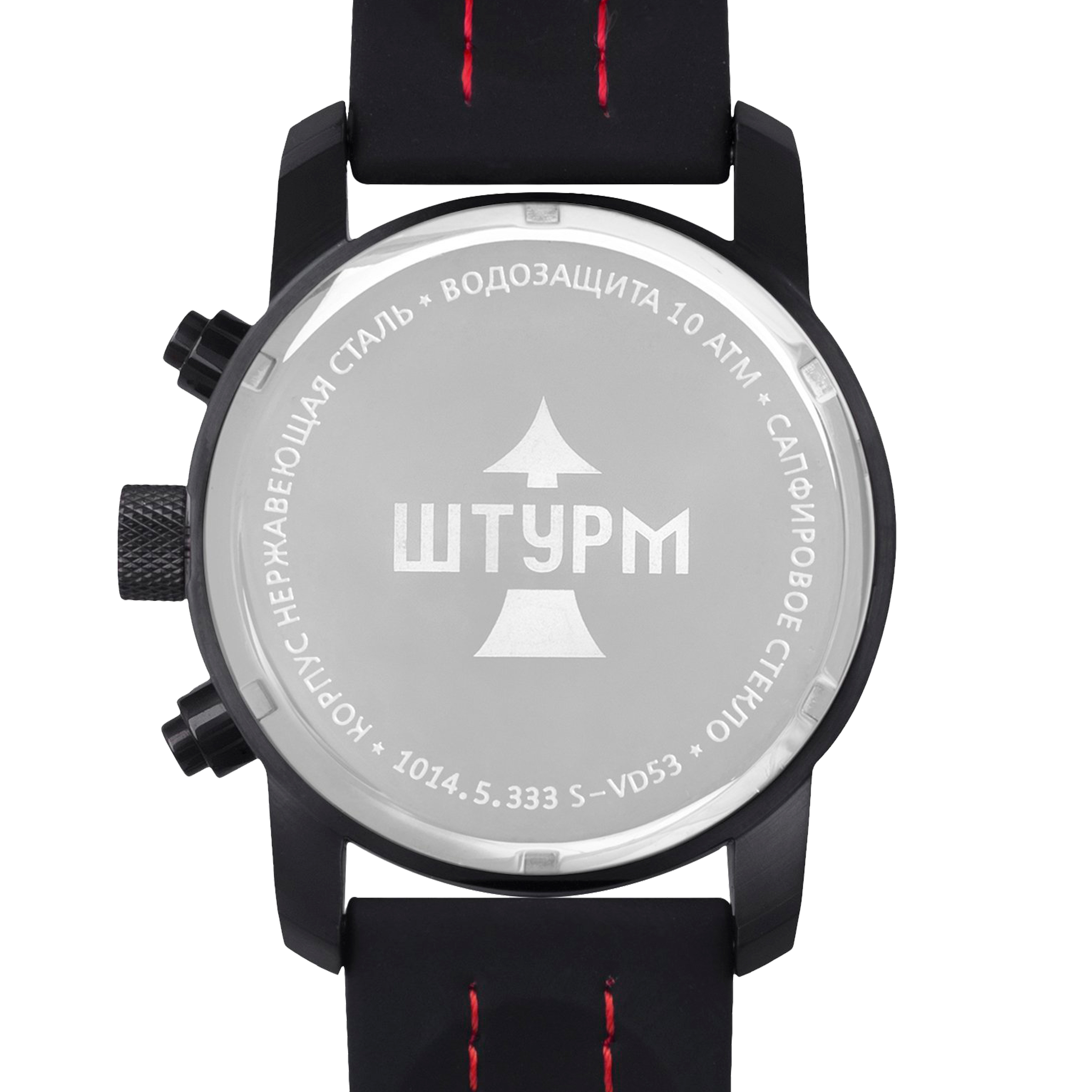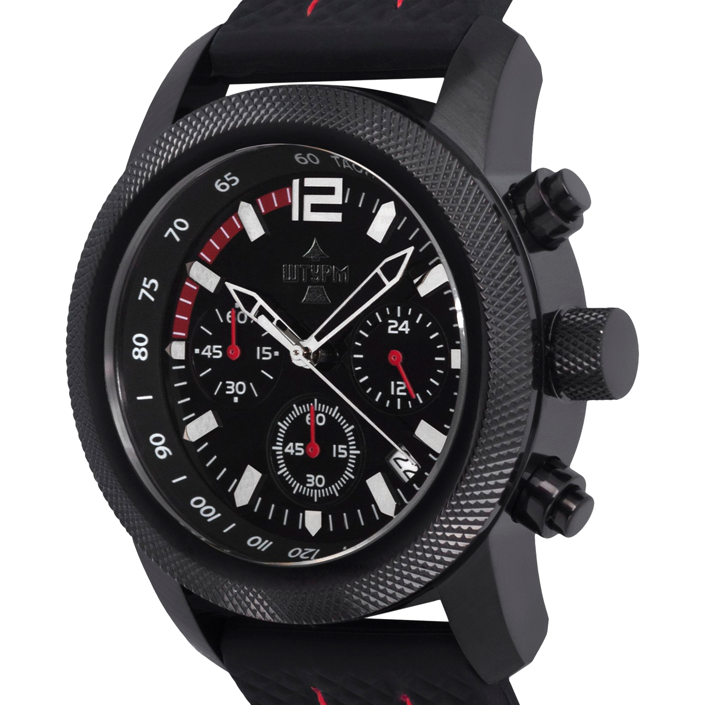 Наручные кварцевые часы Штурм черные, с ремешком из каучука