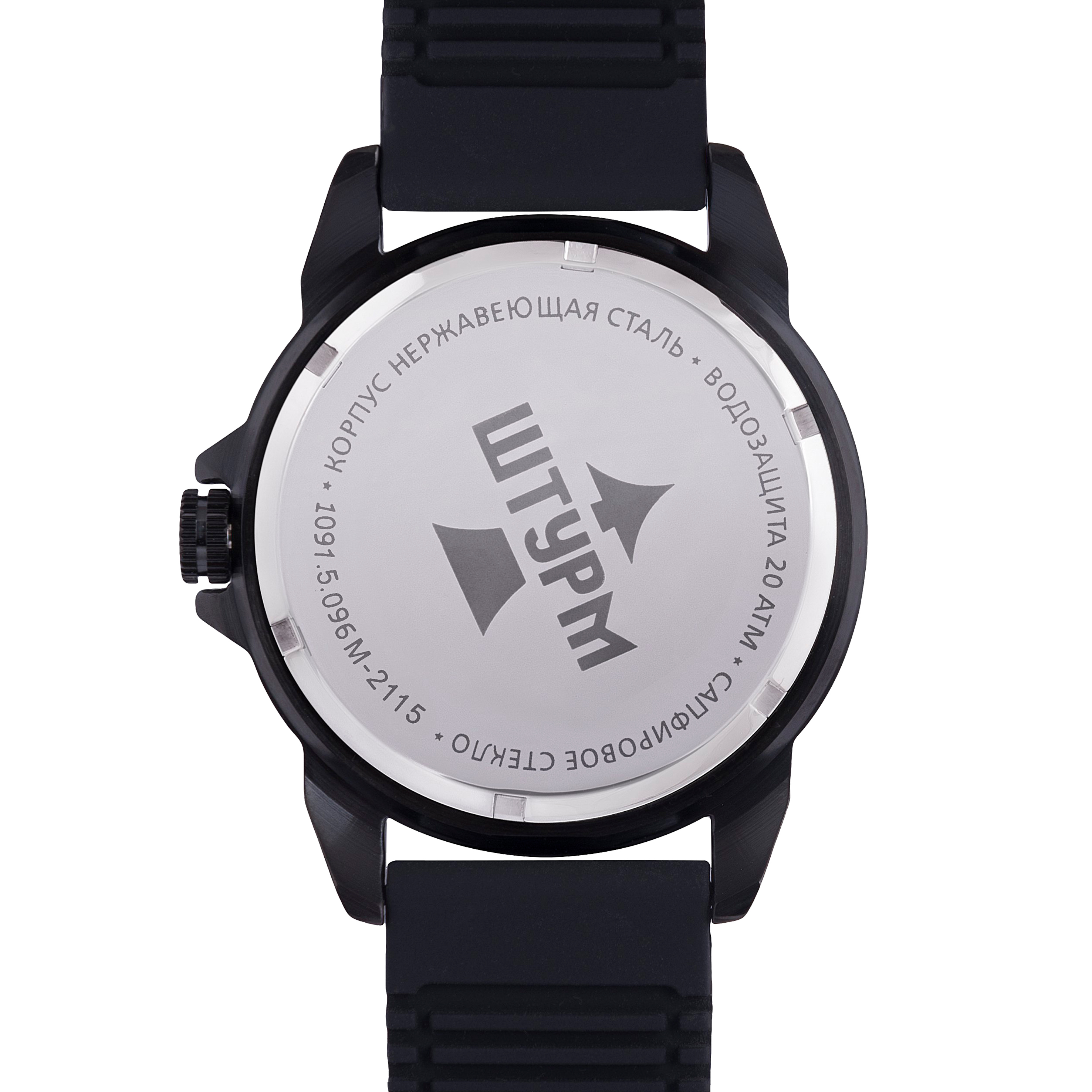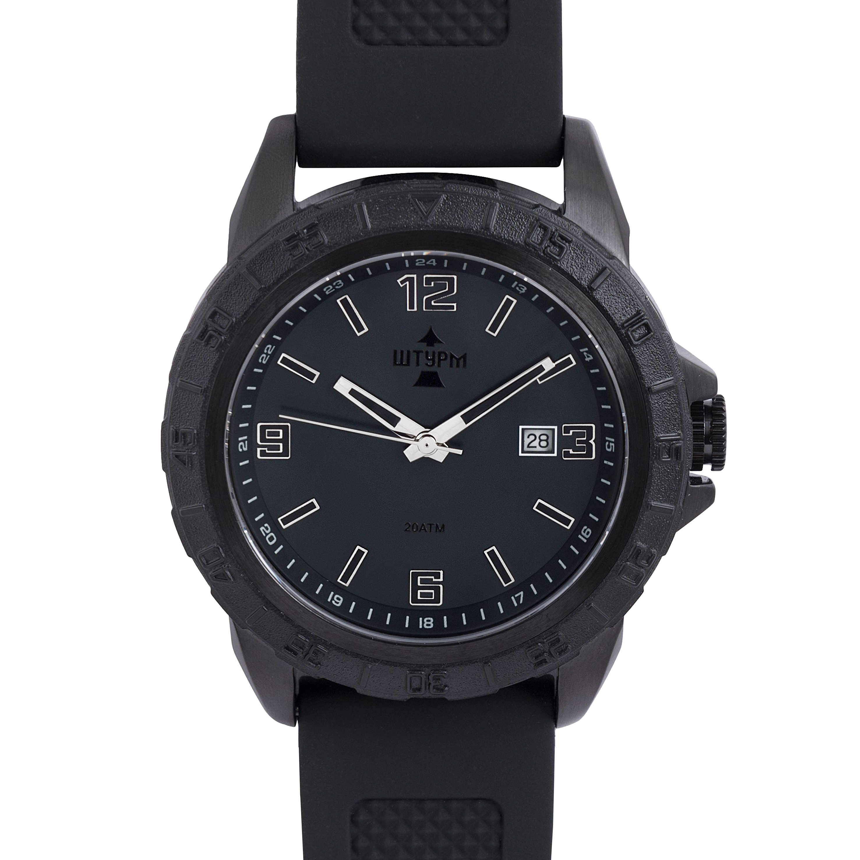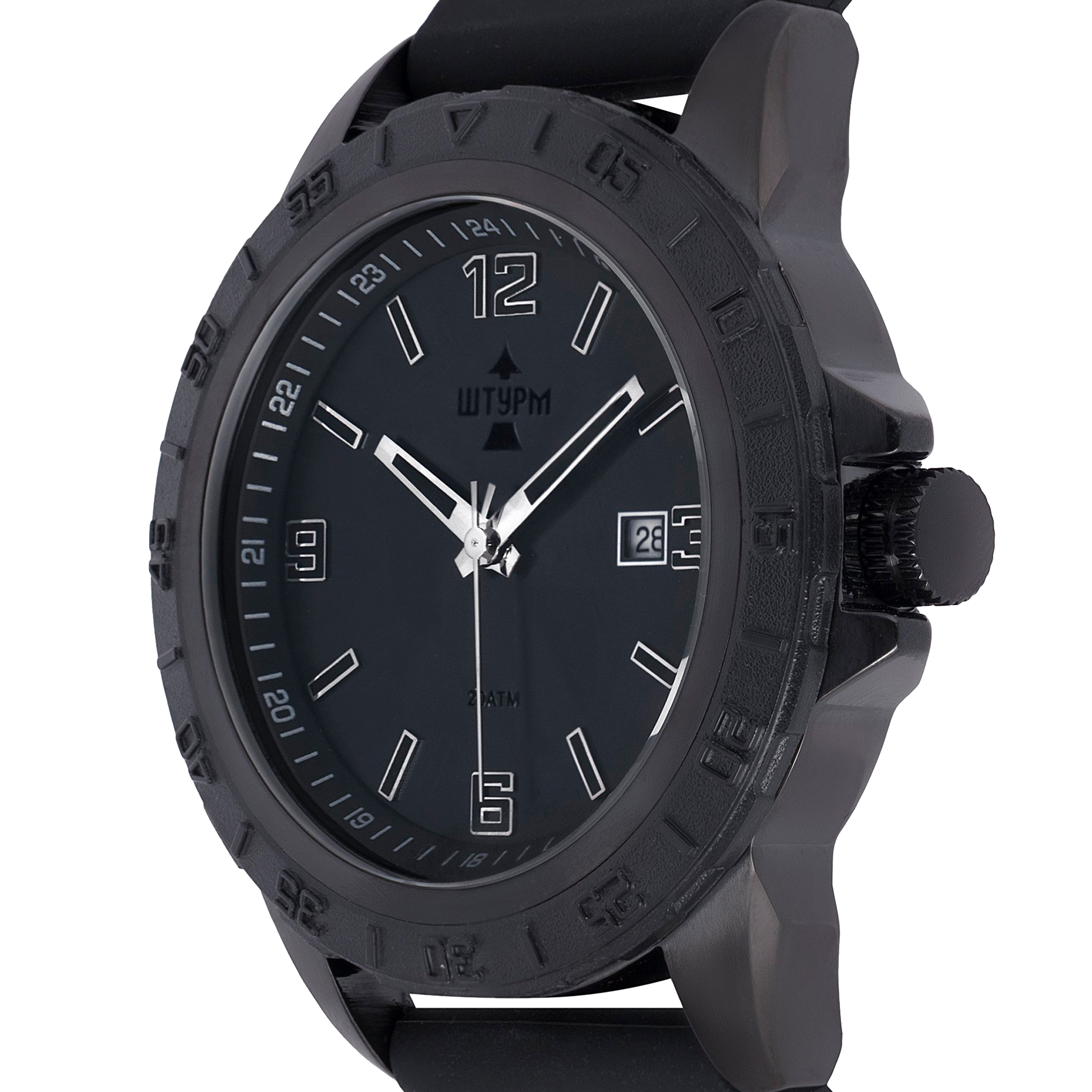 Наручные кварцевые часы Штурм черные, с ремешком из каучука