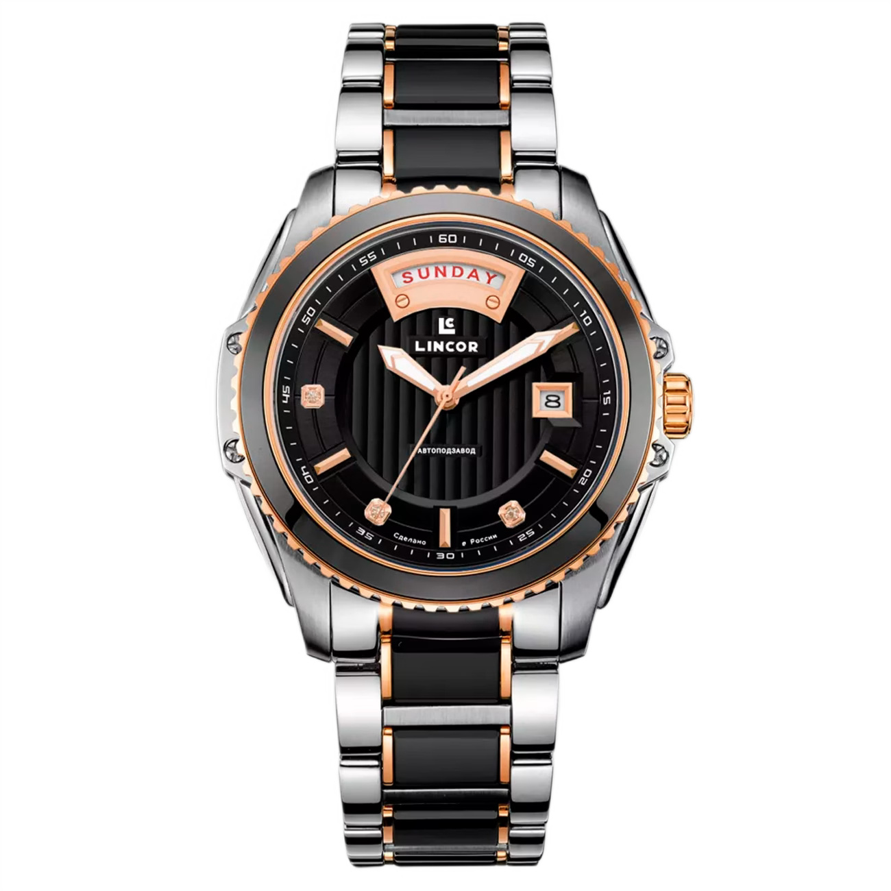 Наручные механические часы Lincor 1106 с автоподзаводом, серебристо-черные