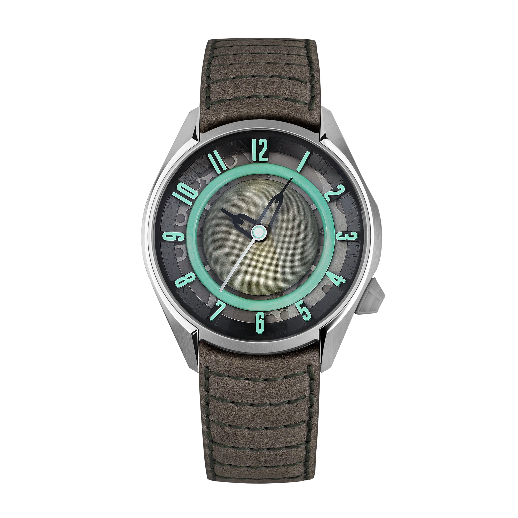 Наручные механические часы Lincor 4091 "Cosmos Сатурн" с автоподзаводом, серебристые с коричневым ремешком