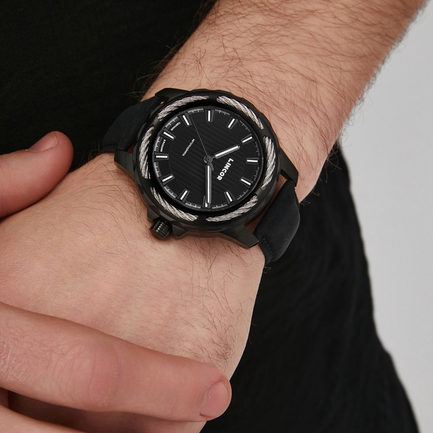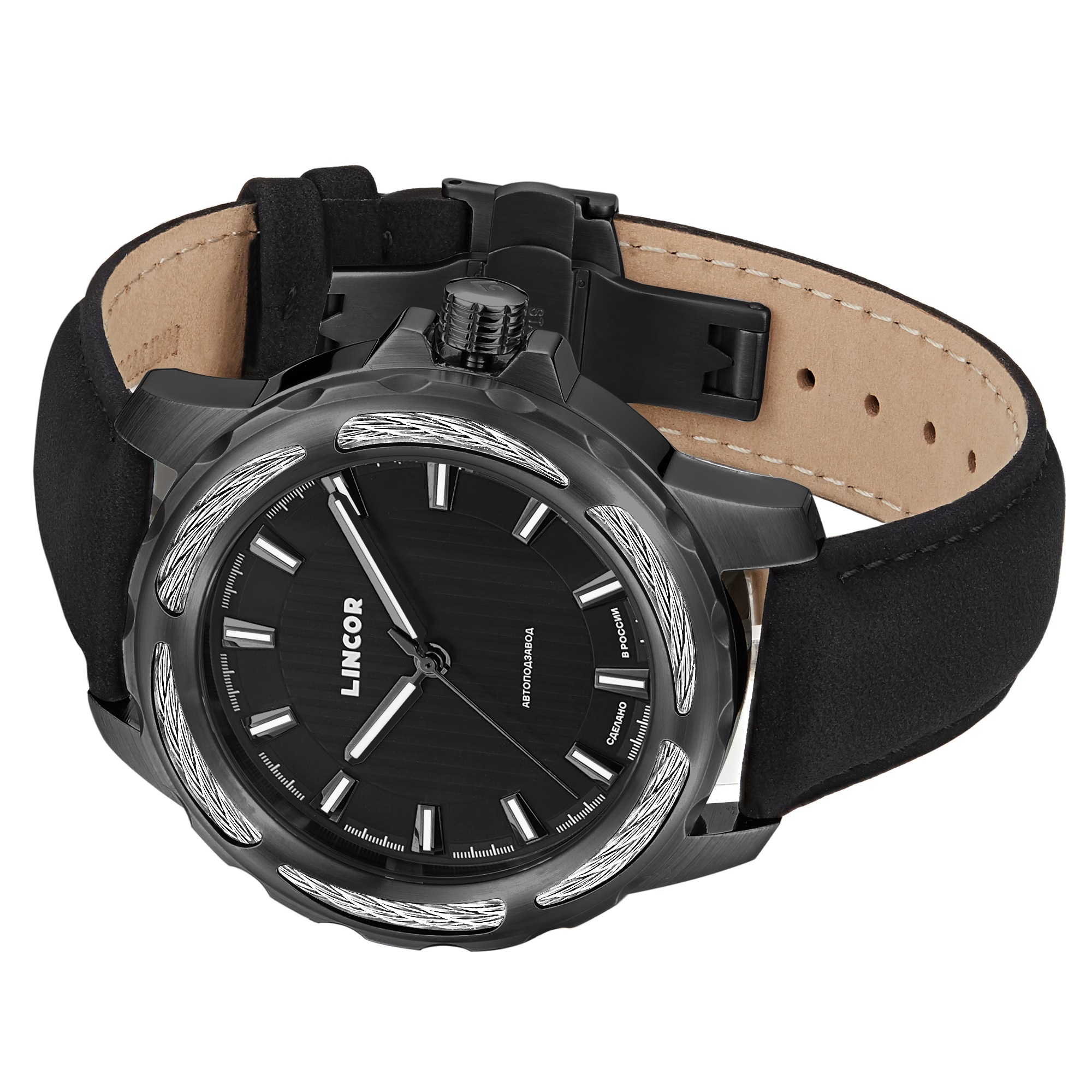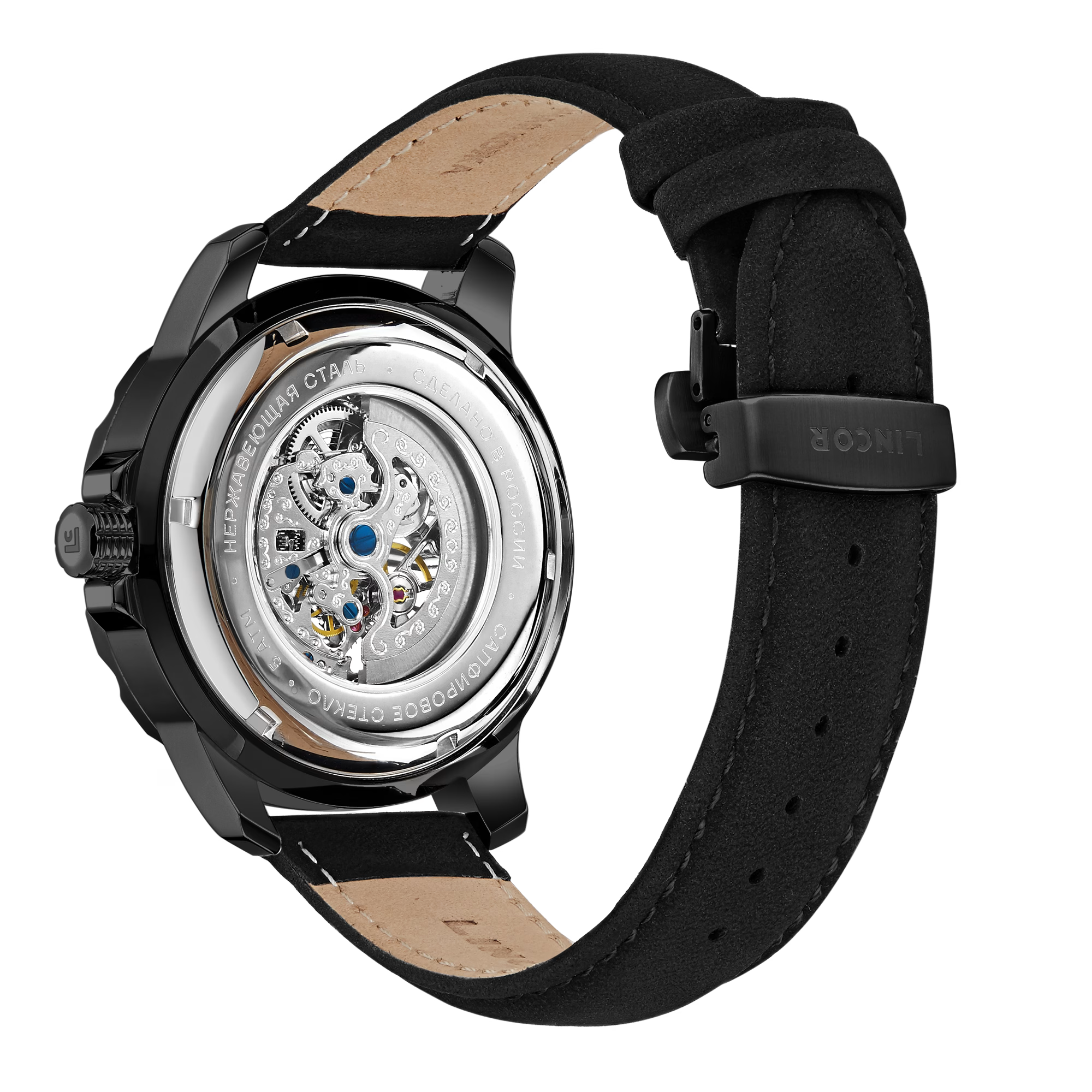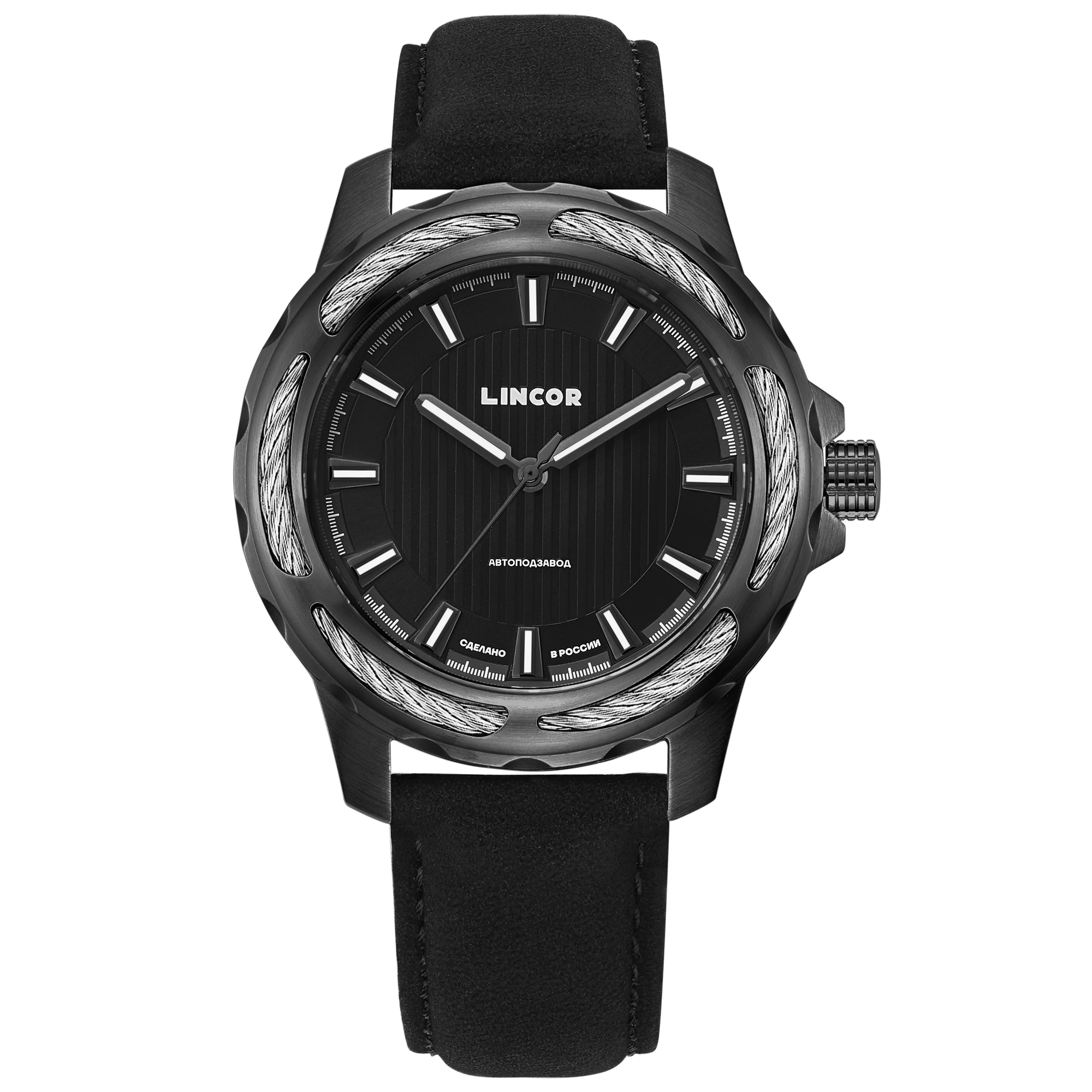 Наручные механические часы Lincor 4110 с автоподзаводом, с черным ремешком