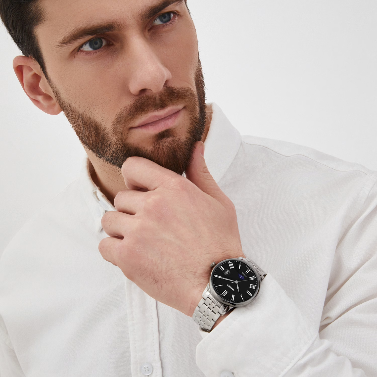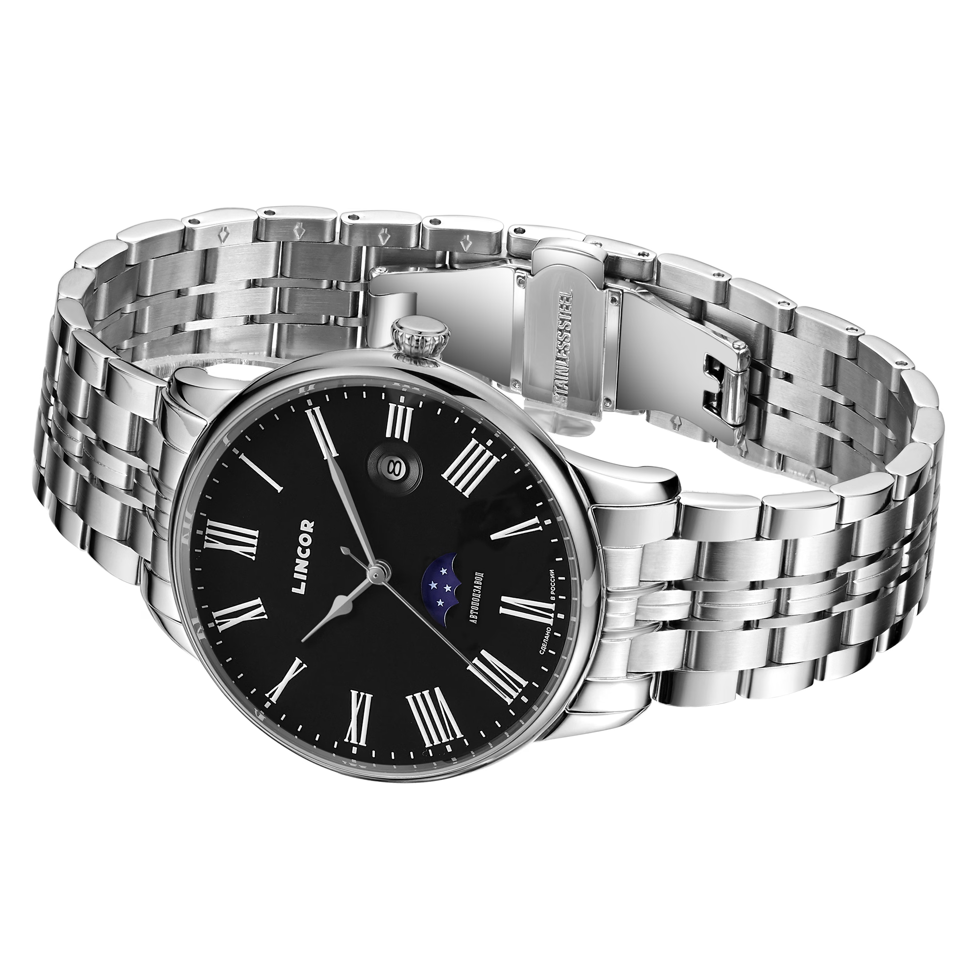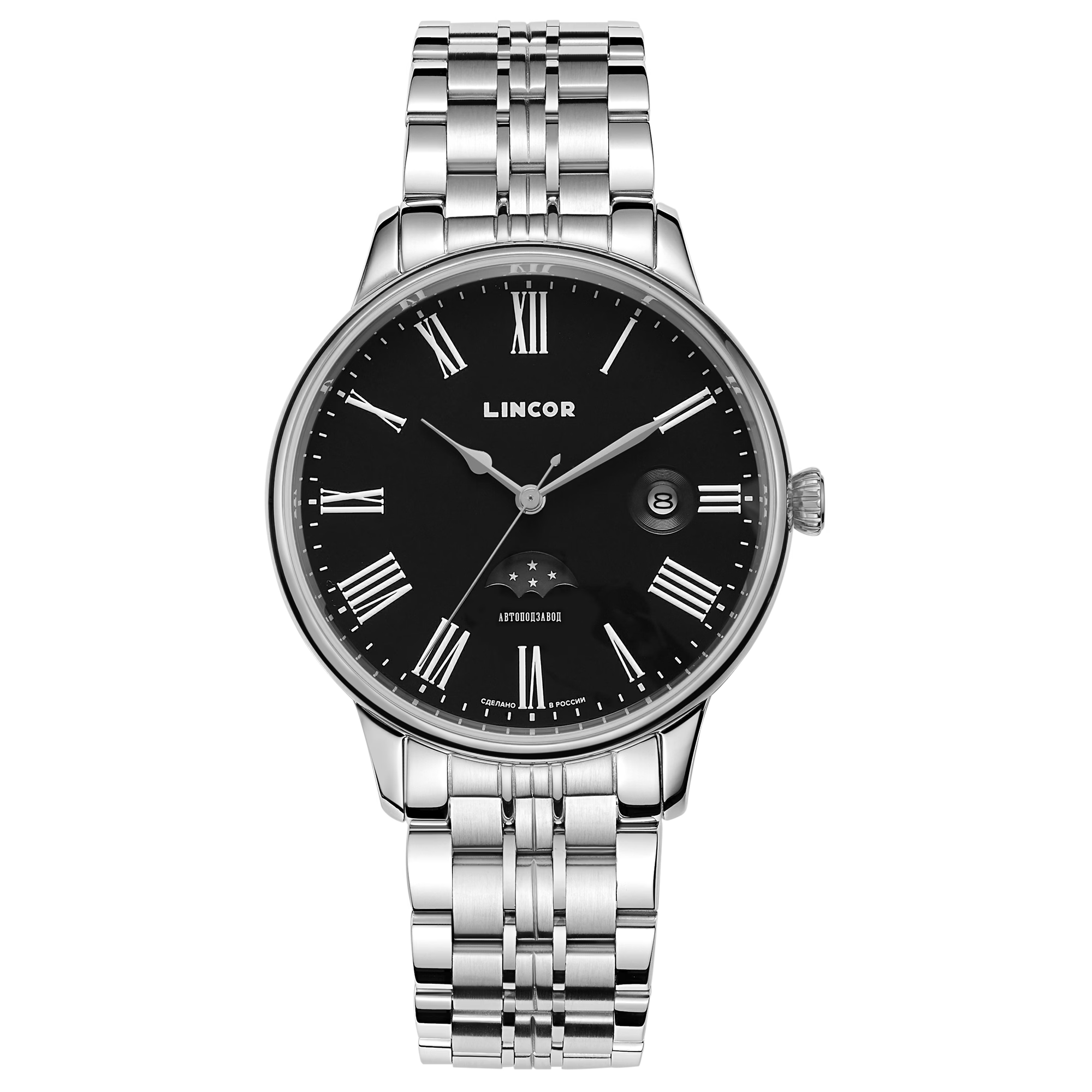 Наручные механические часы Lincor 4122 с автоподзаводом, серебристо-черные