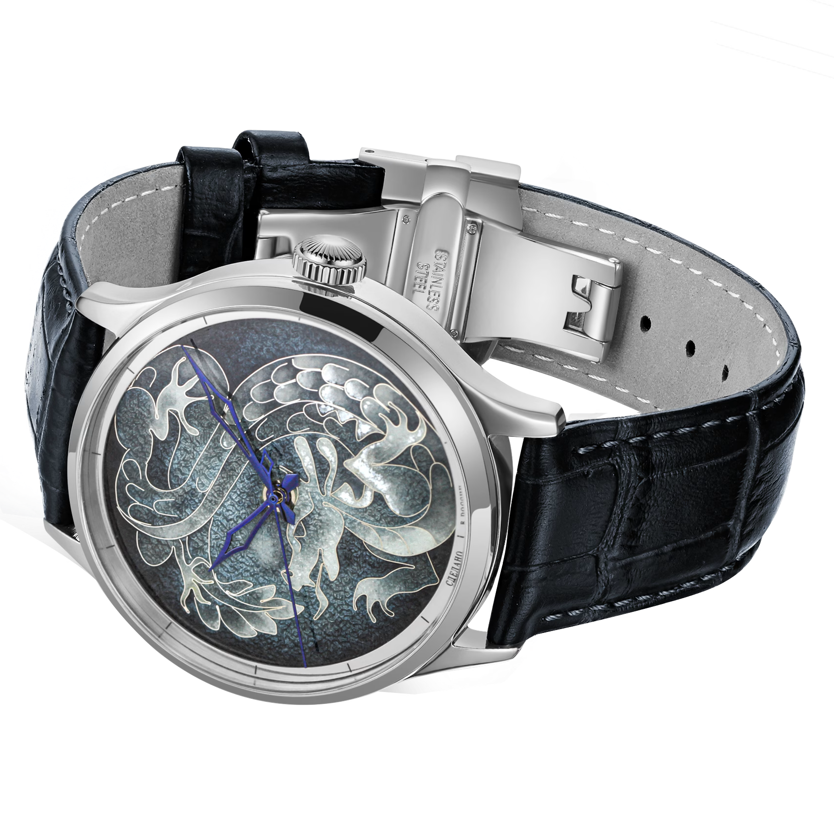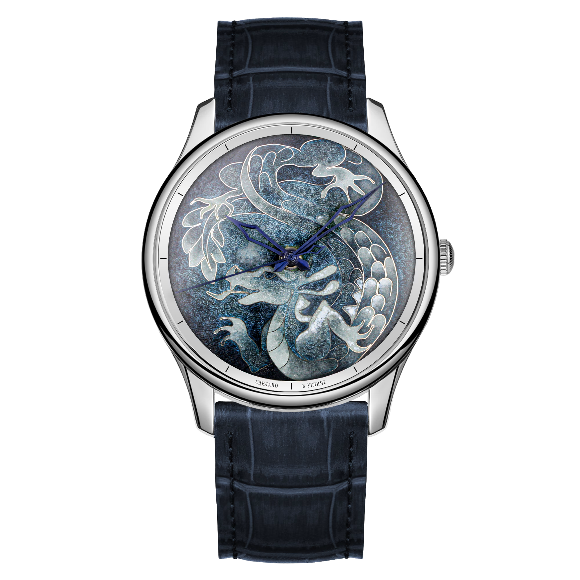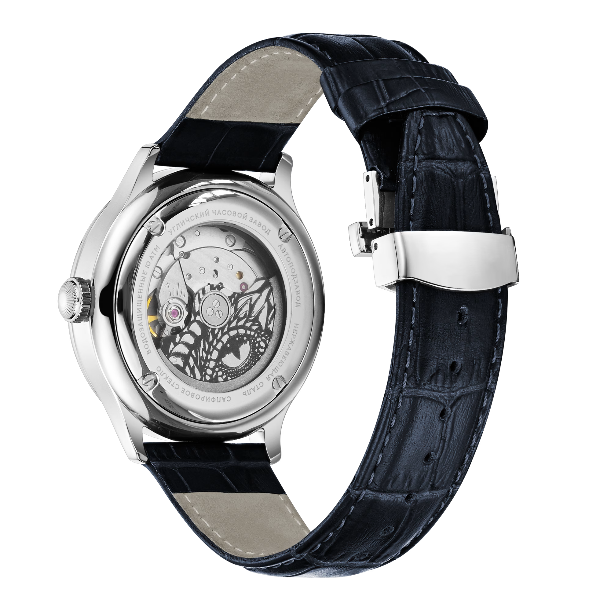 Наручные механические часы Lincor "ART Соло" с автоподзаводом, серебристо-синие с синим ремешком