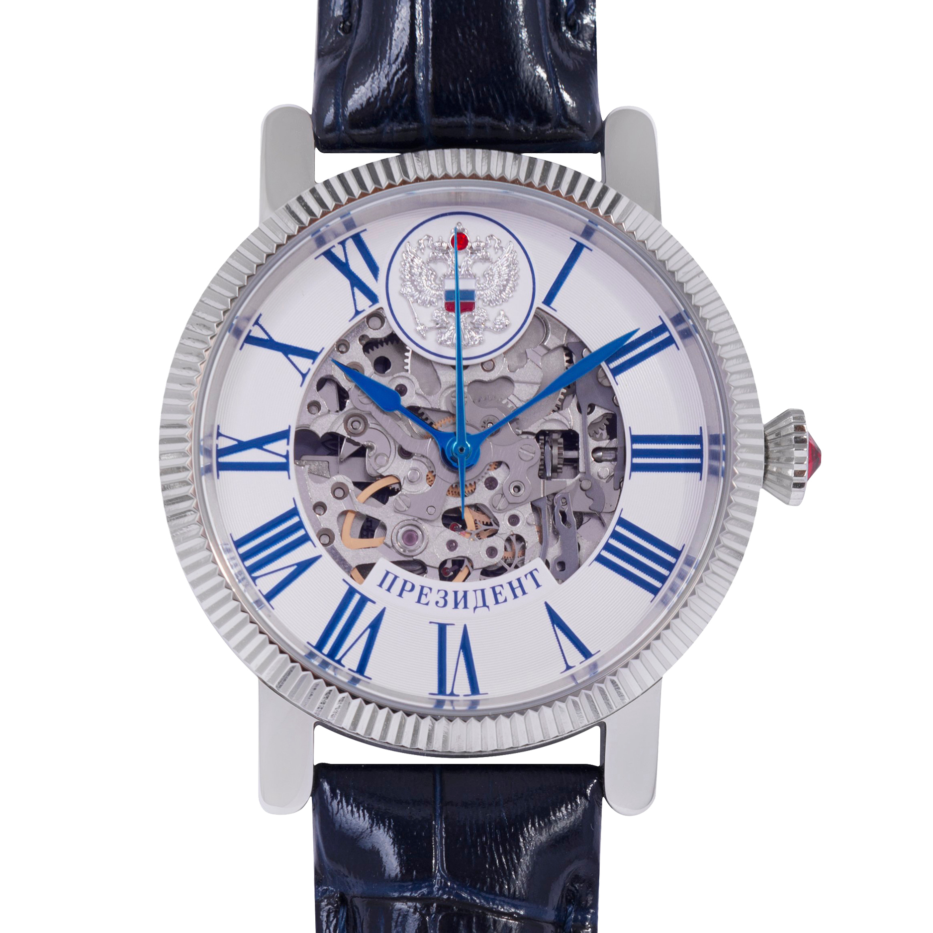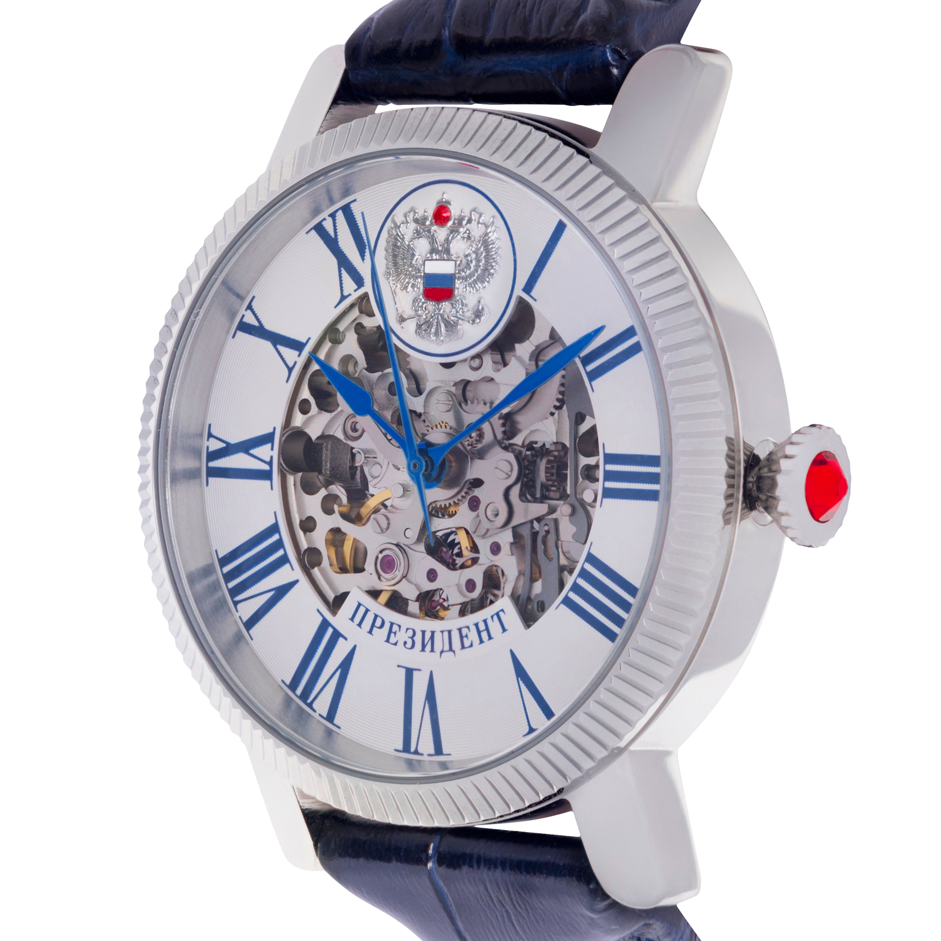 Наручные механические часы Президент бело-серебристые, с синим ремешком