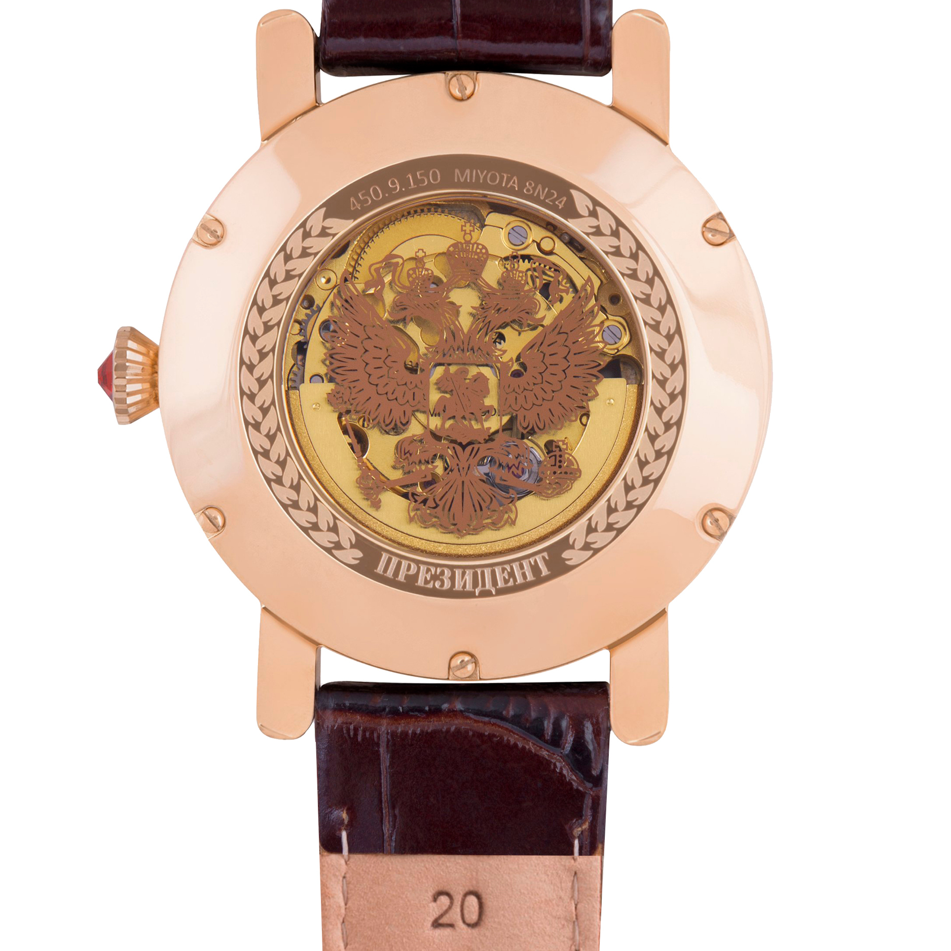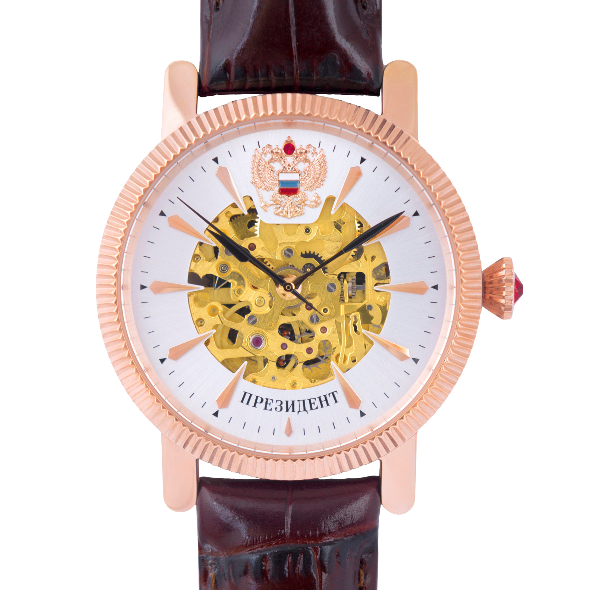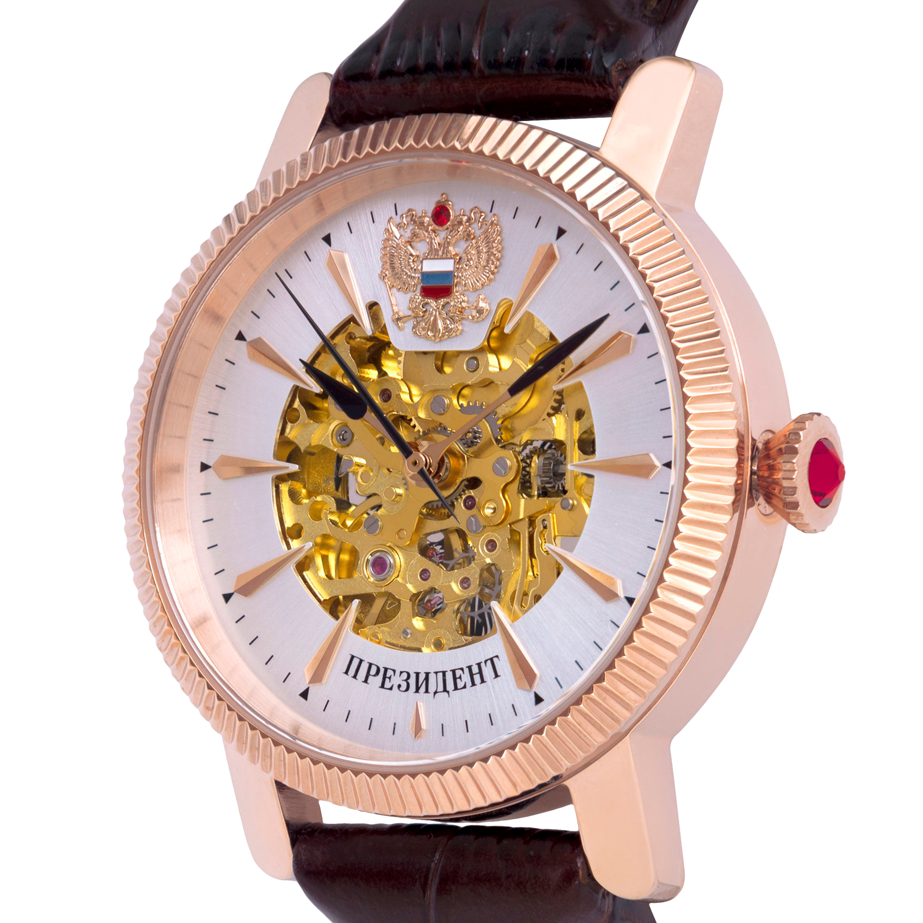Наручные механические часы Президент бело-золотистые, с бордовым ремешком