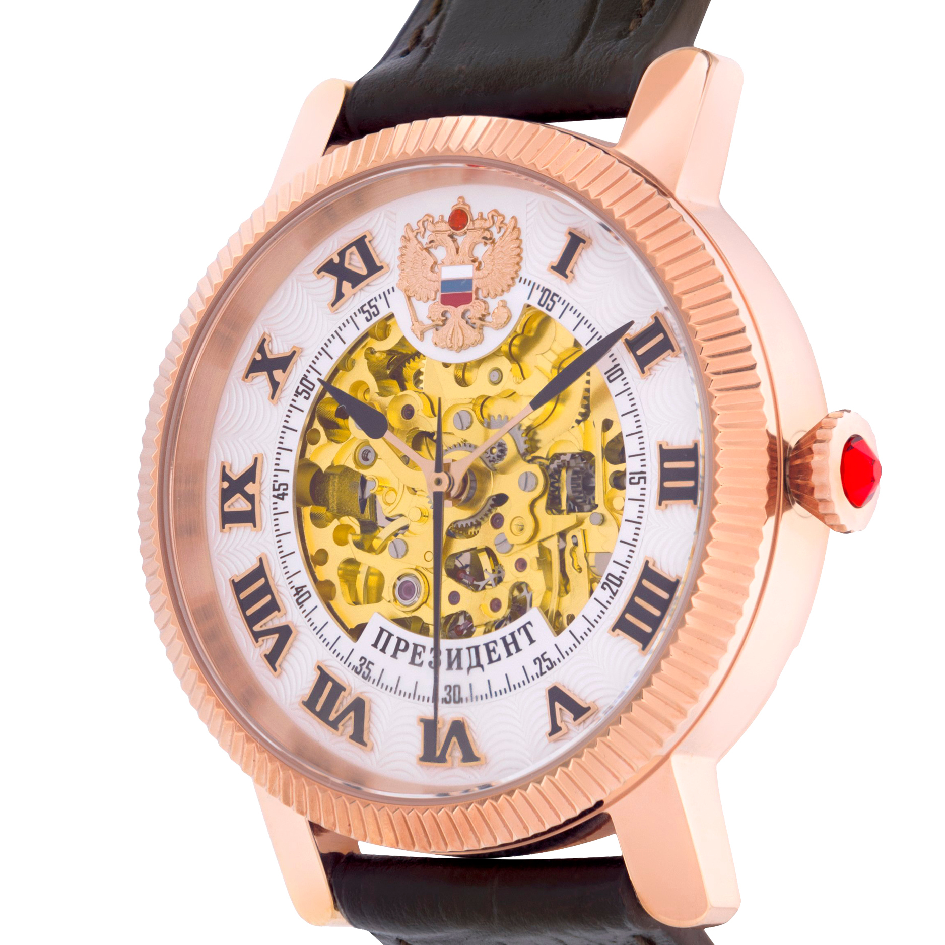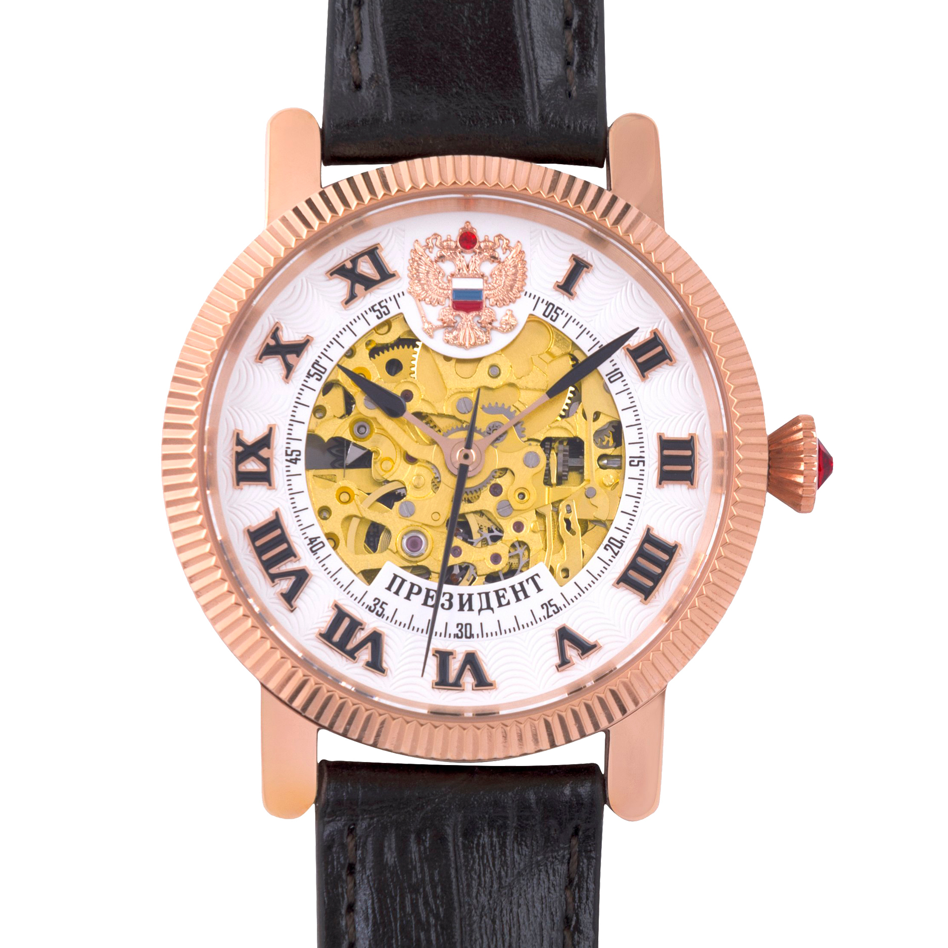 Наручные механические часы Президент бело-золотистые, с черным ремешком