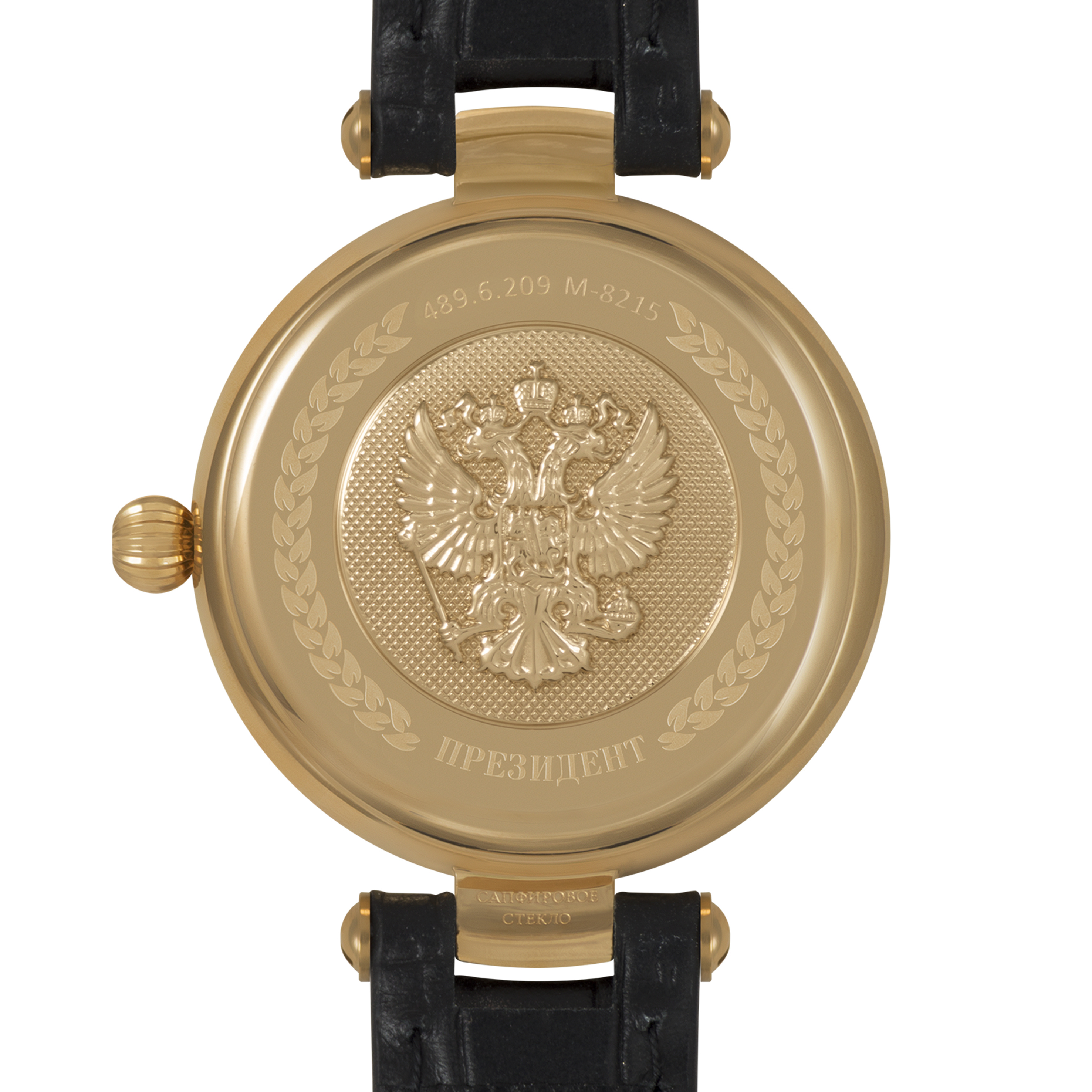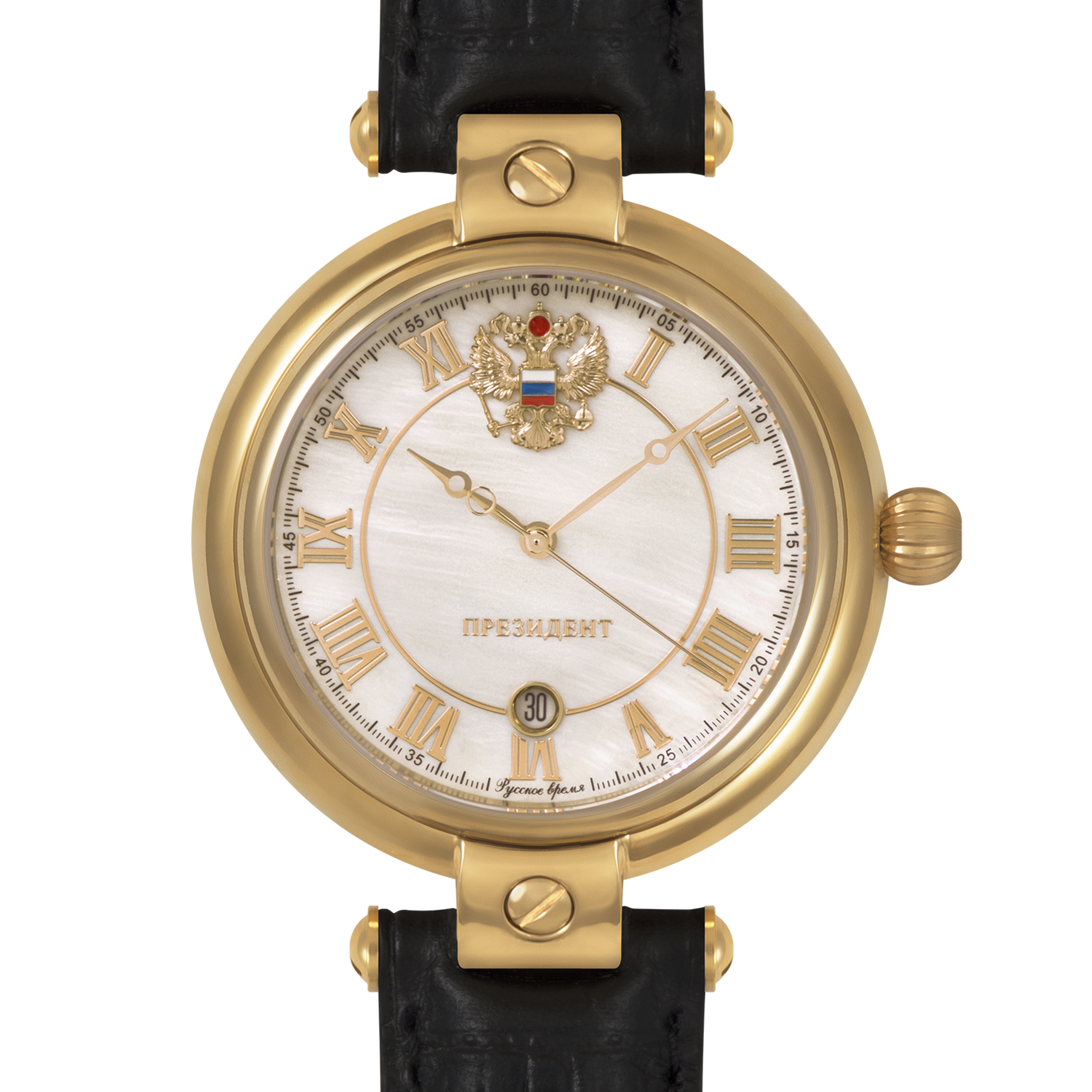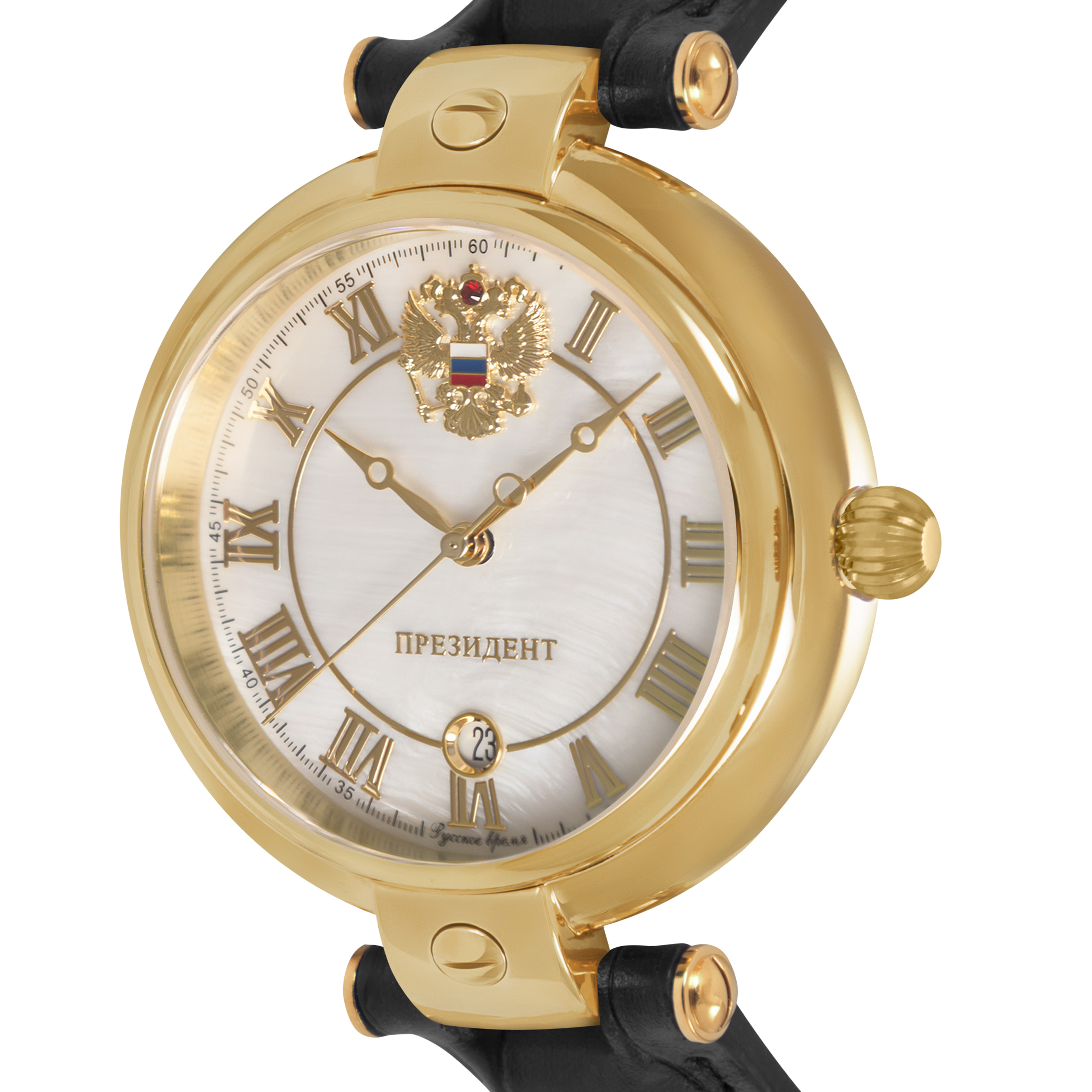 Наручные механические часы Президент бело-золотистые, с черным ремешком