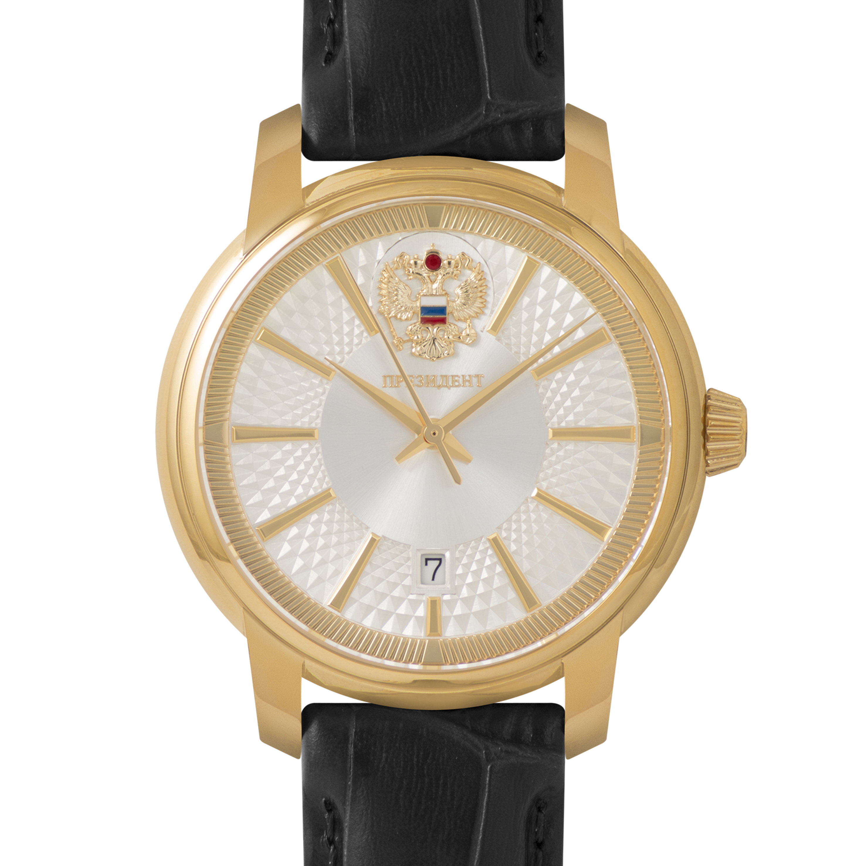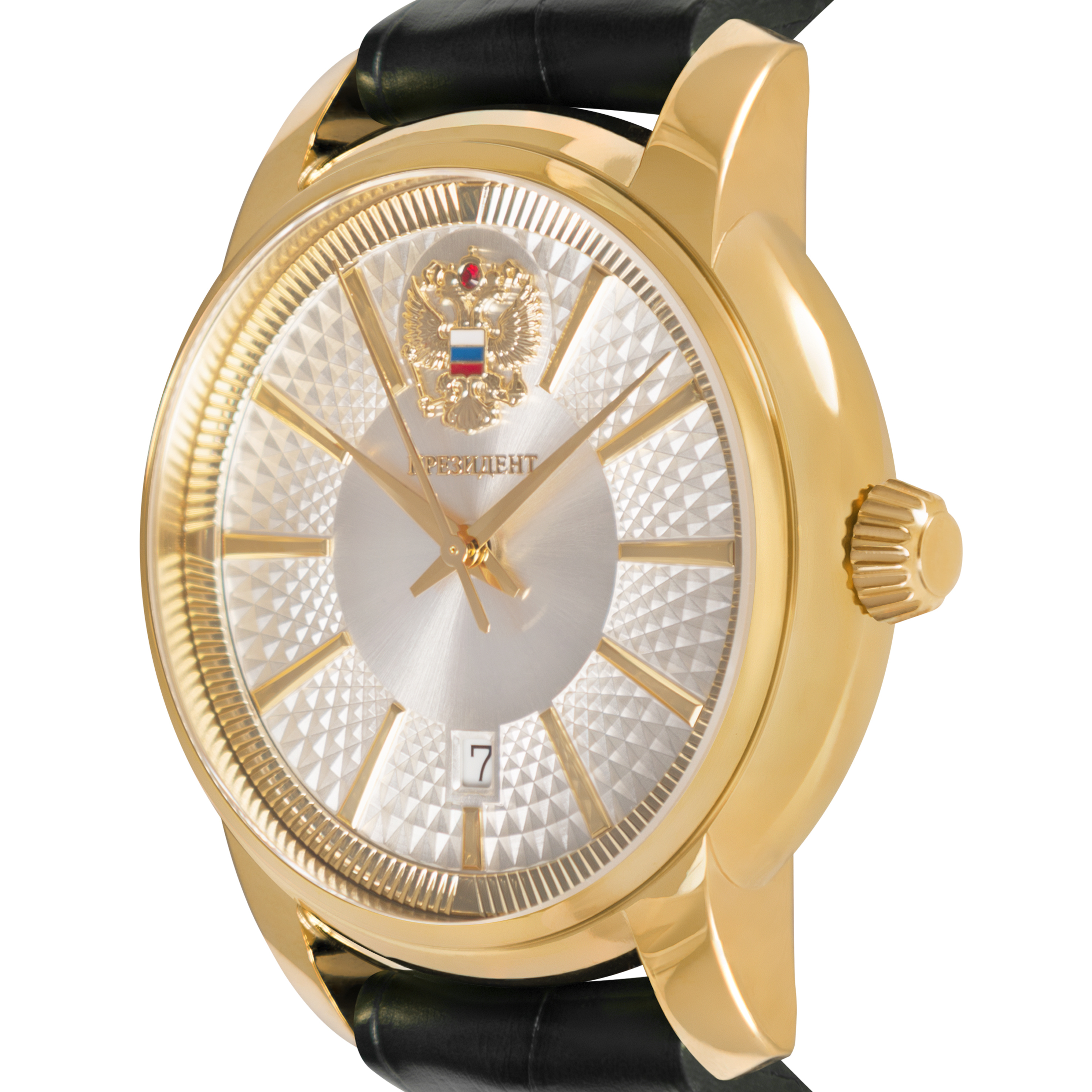 Наручные механические часы Президент бело-золотистые, с черным ремешком
