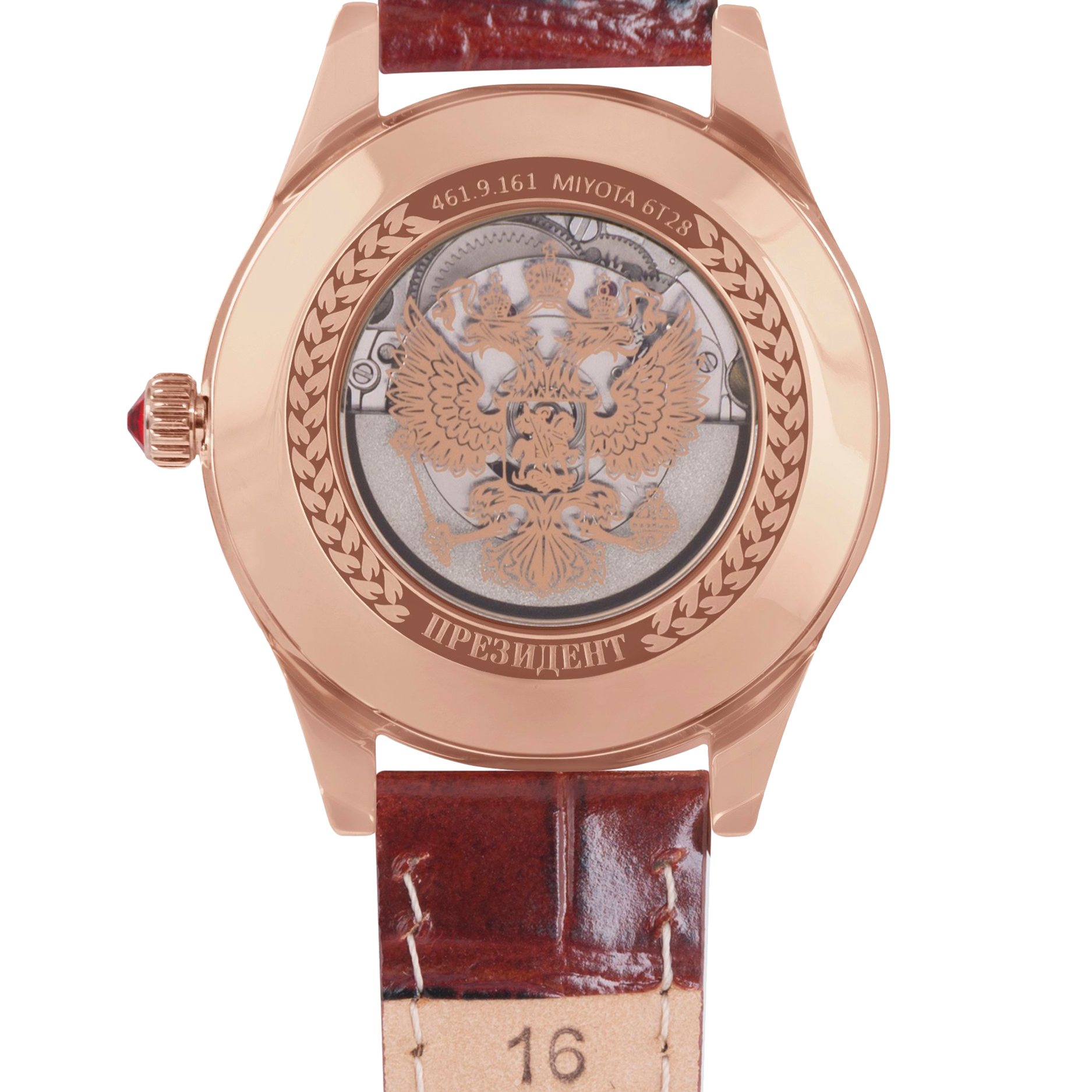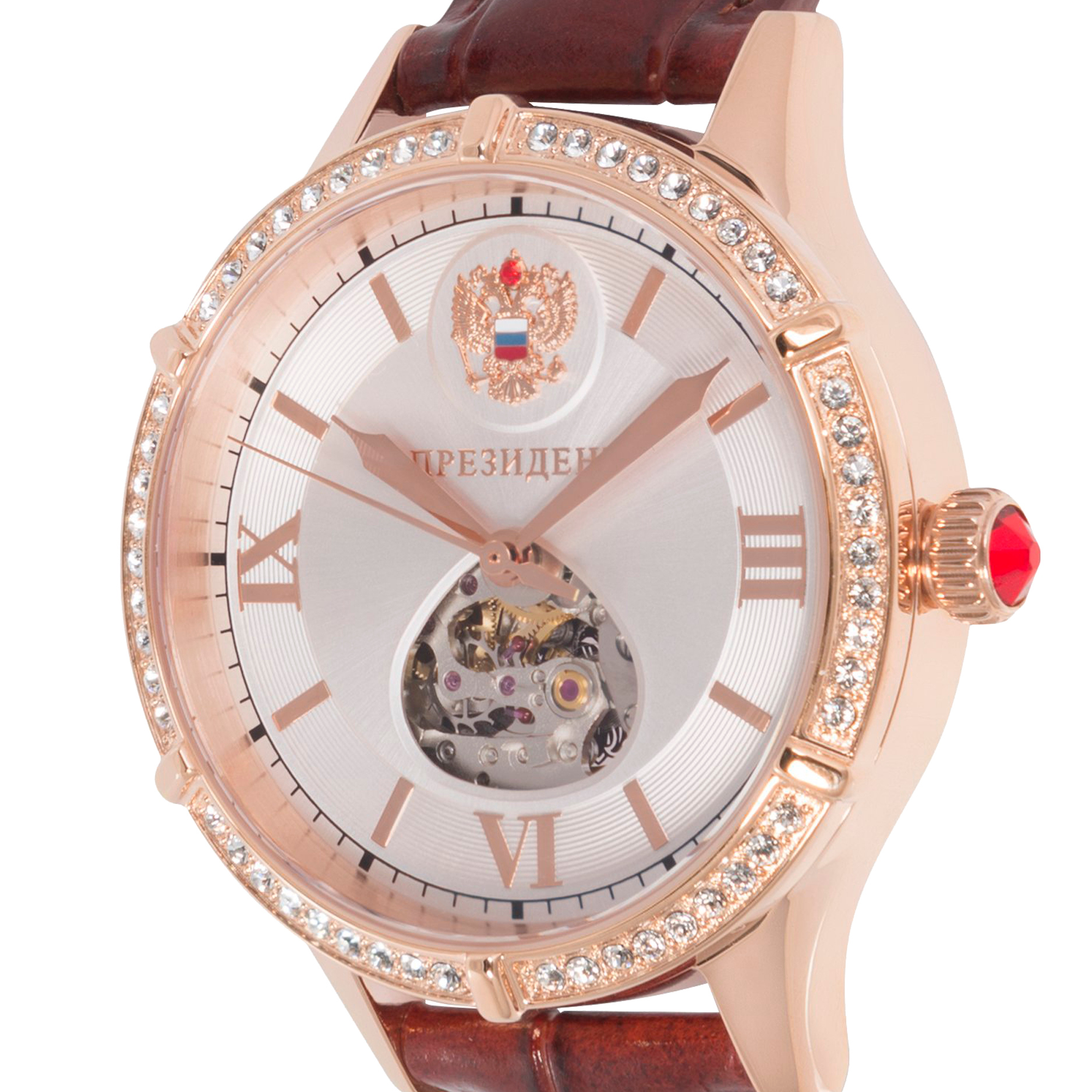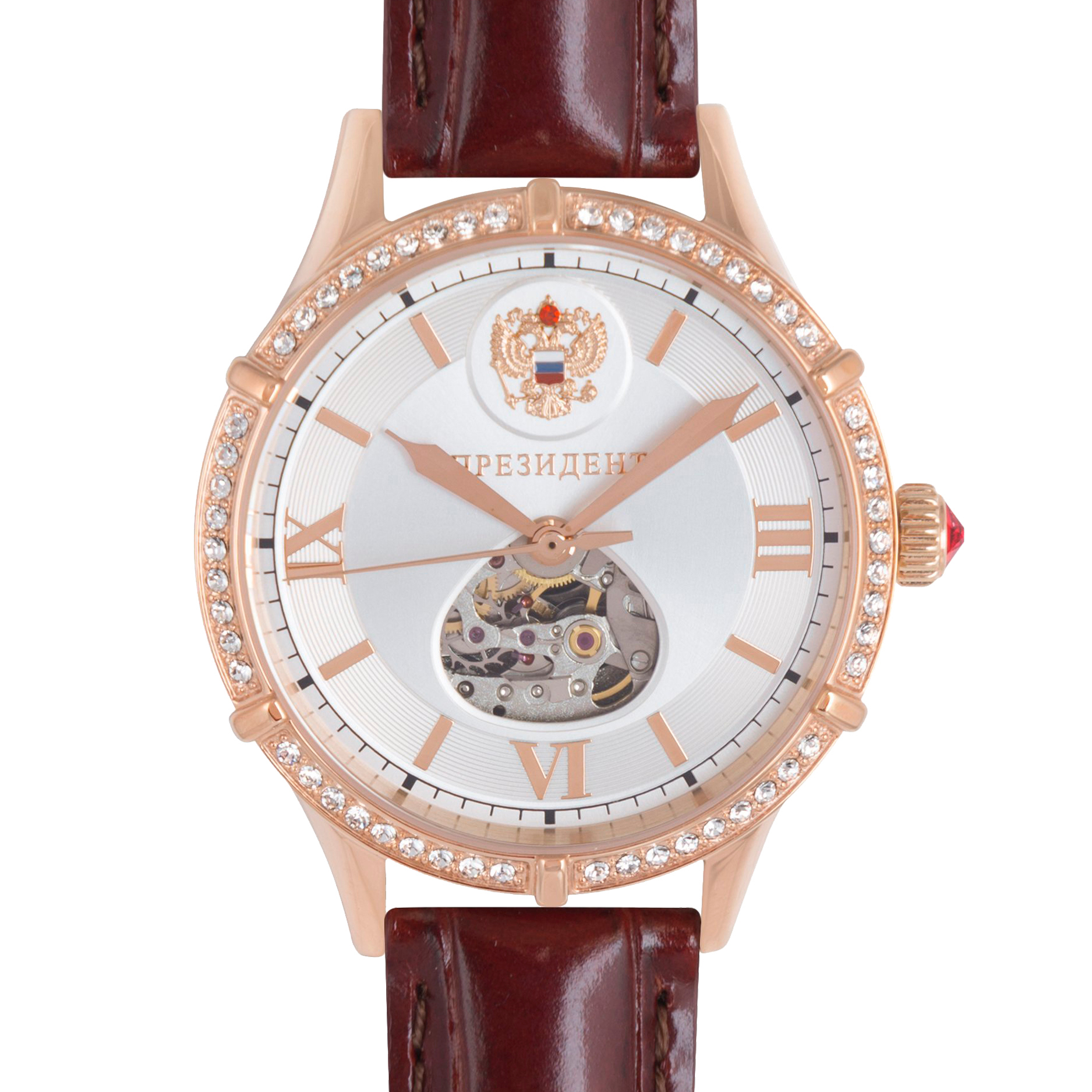 Наручные механические часы Президент бело-золотистые, с коричневым ремешком