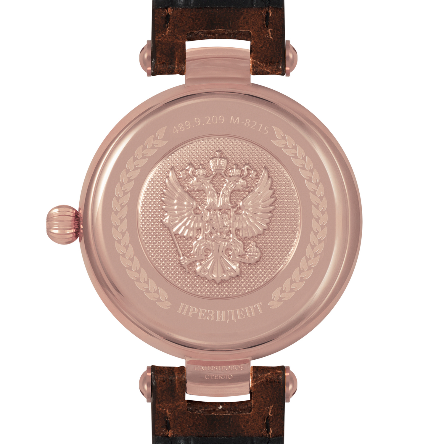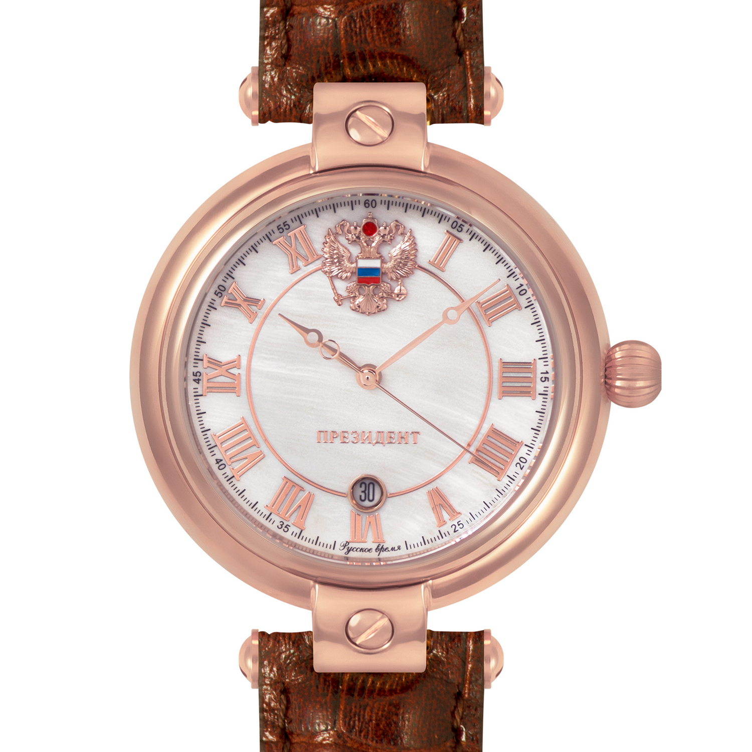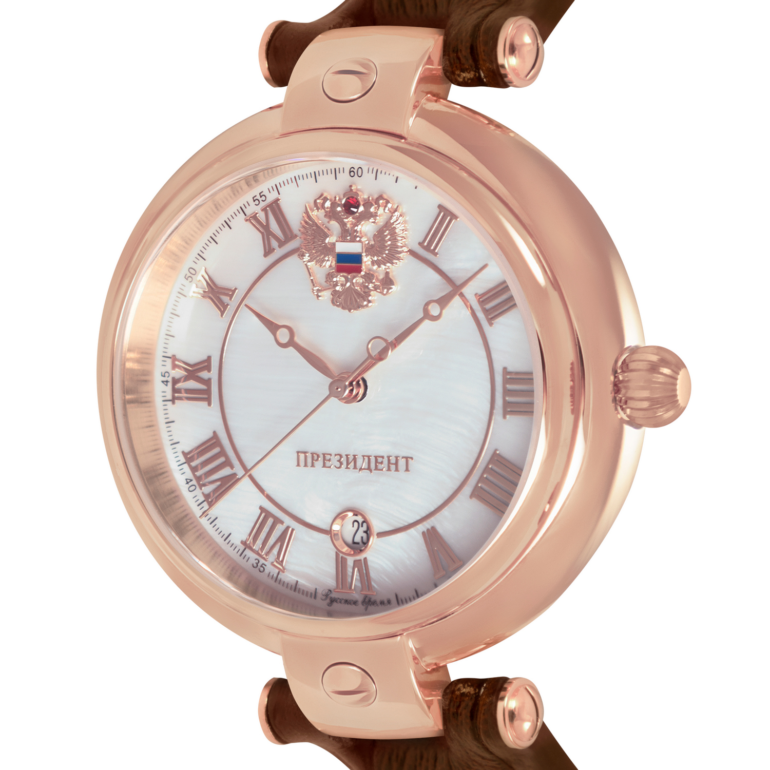 Наручные механические часы Президент бело-золотистые, с коричневым ремешком