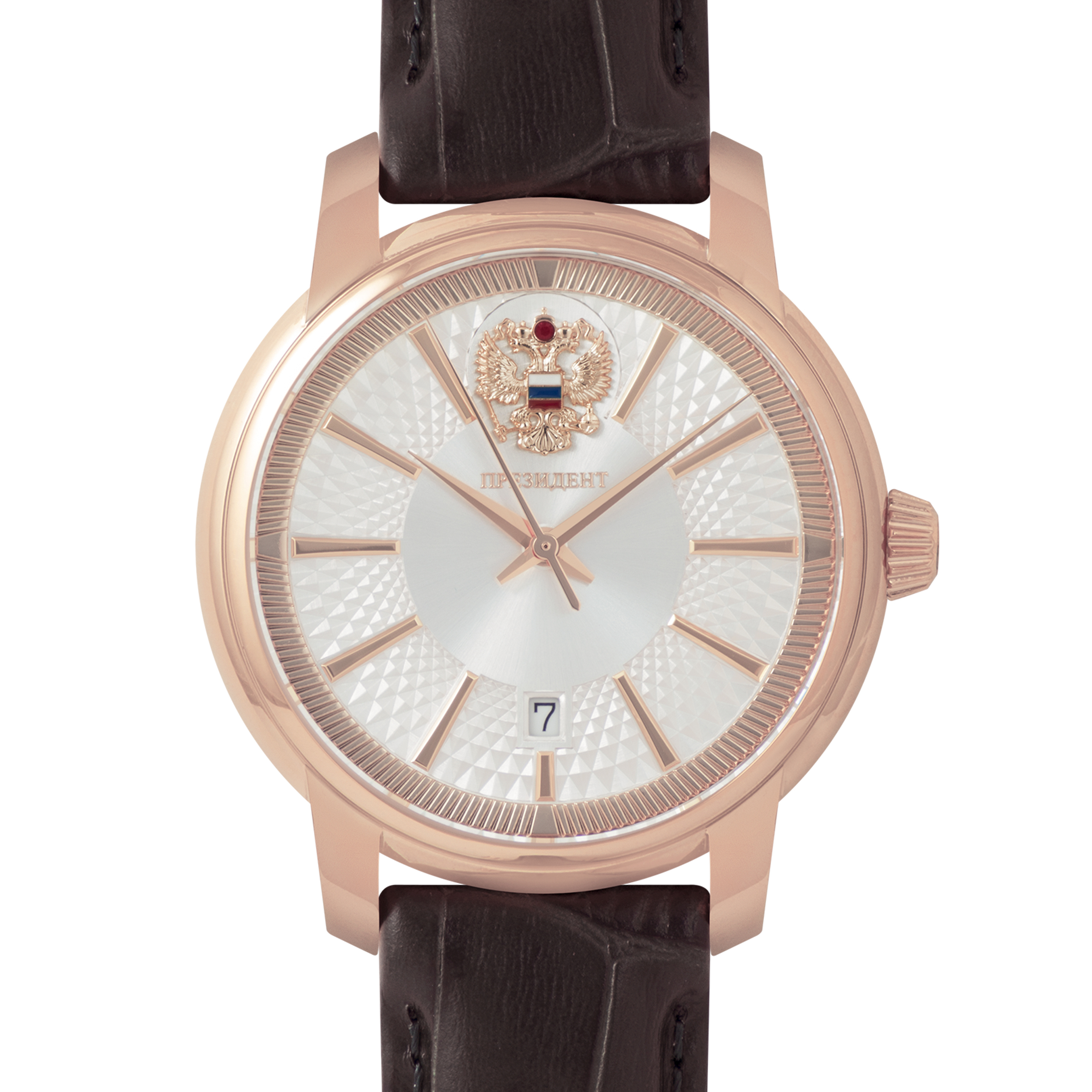 Наручные механические часы Президент бело-золотистые, с коричневым ремешком