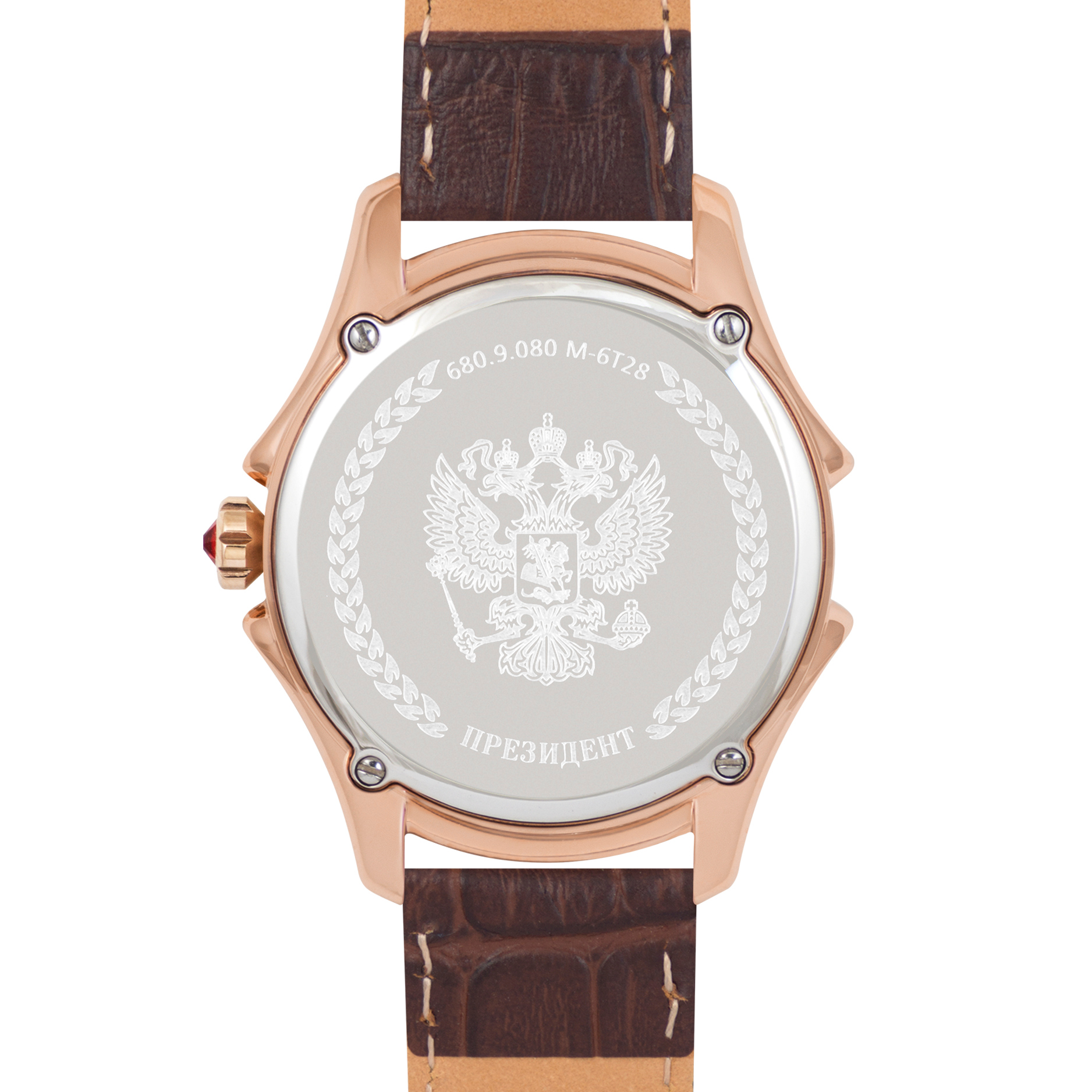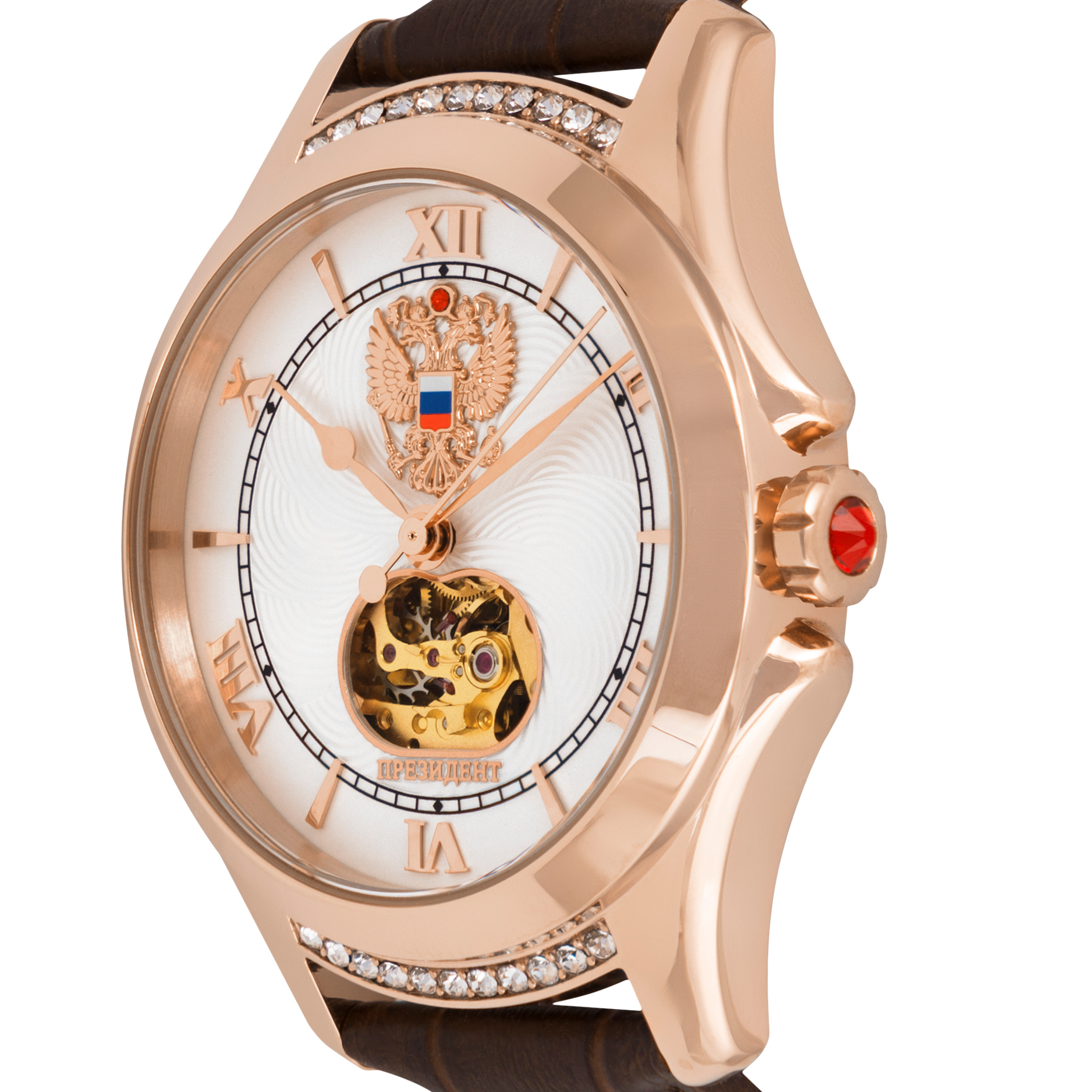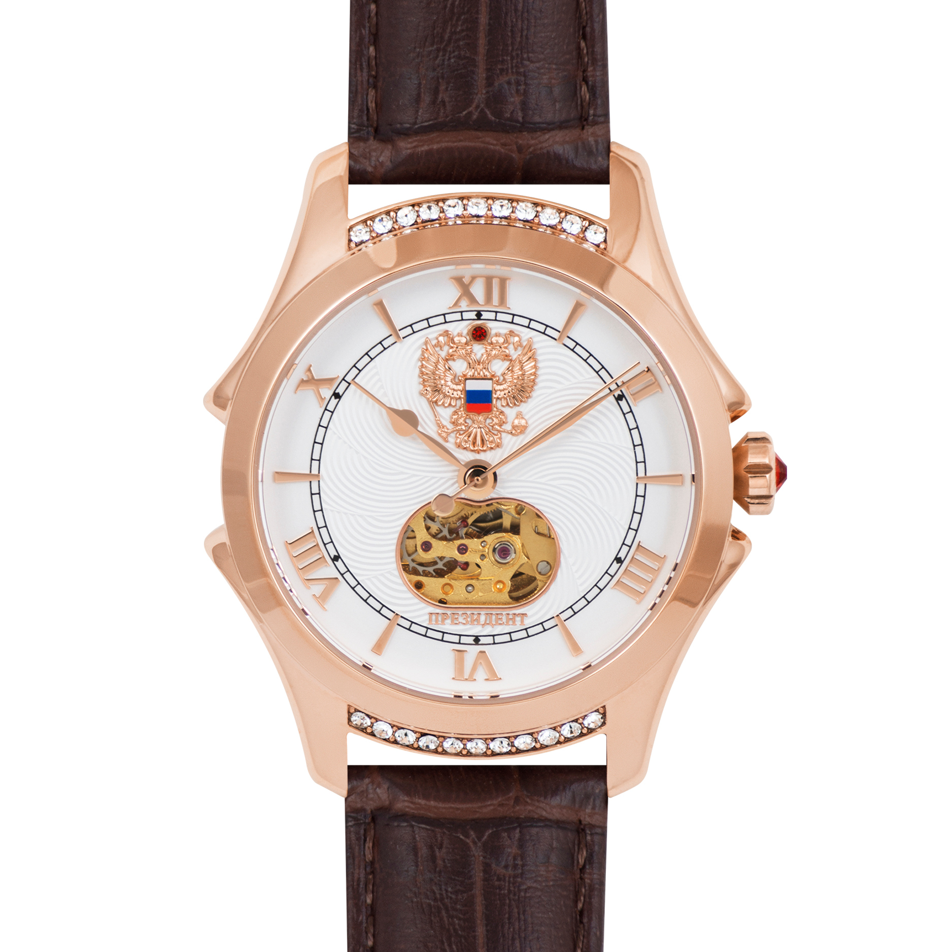Наручные механические часы Президент бело-золотистые, с коричневым ремешком