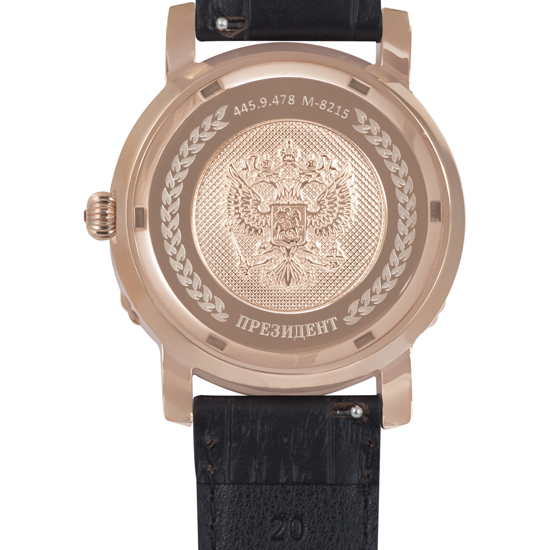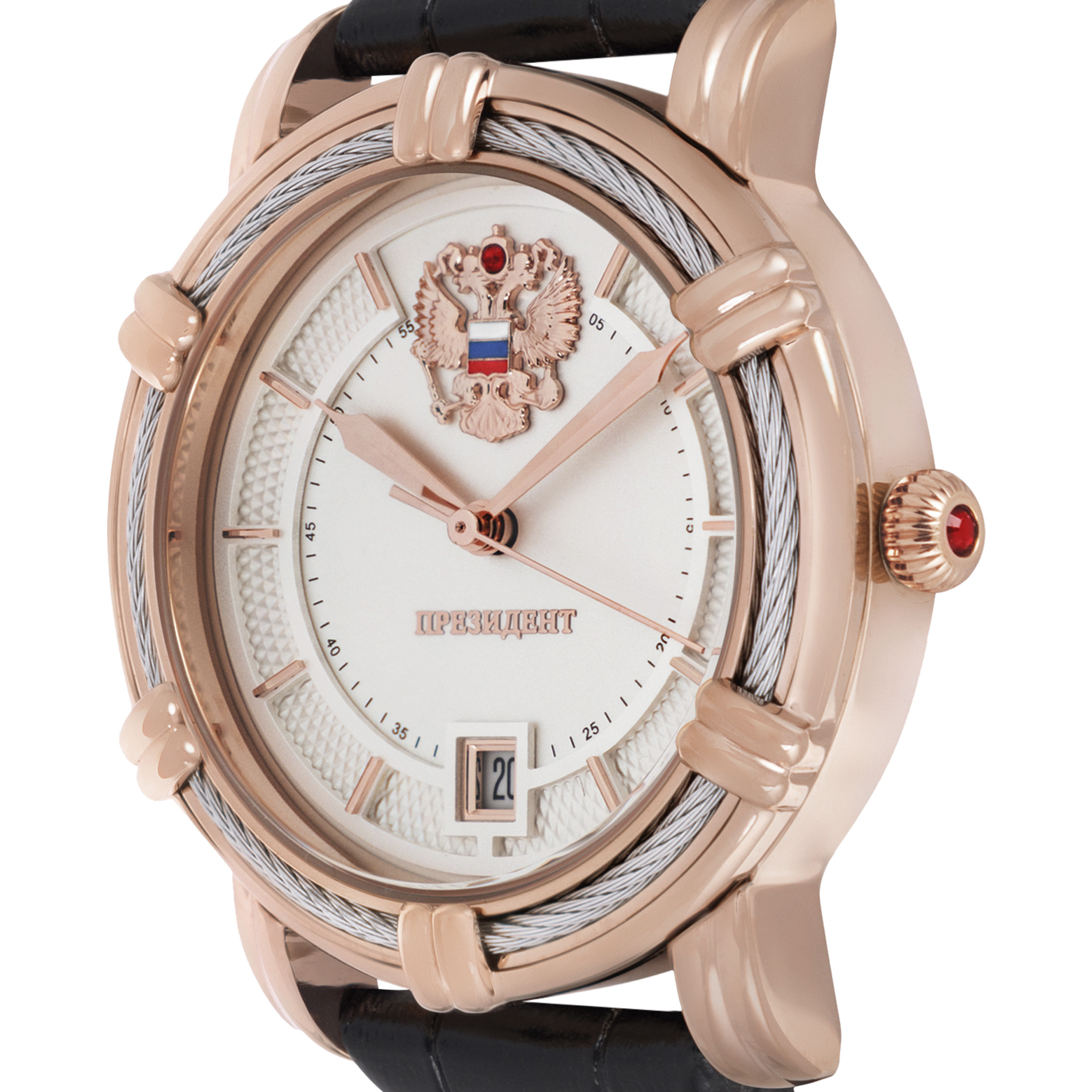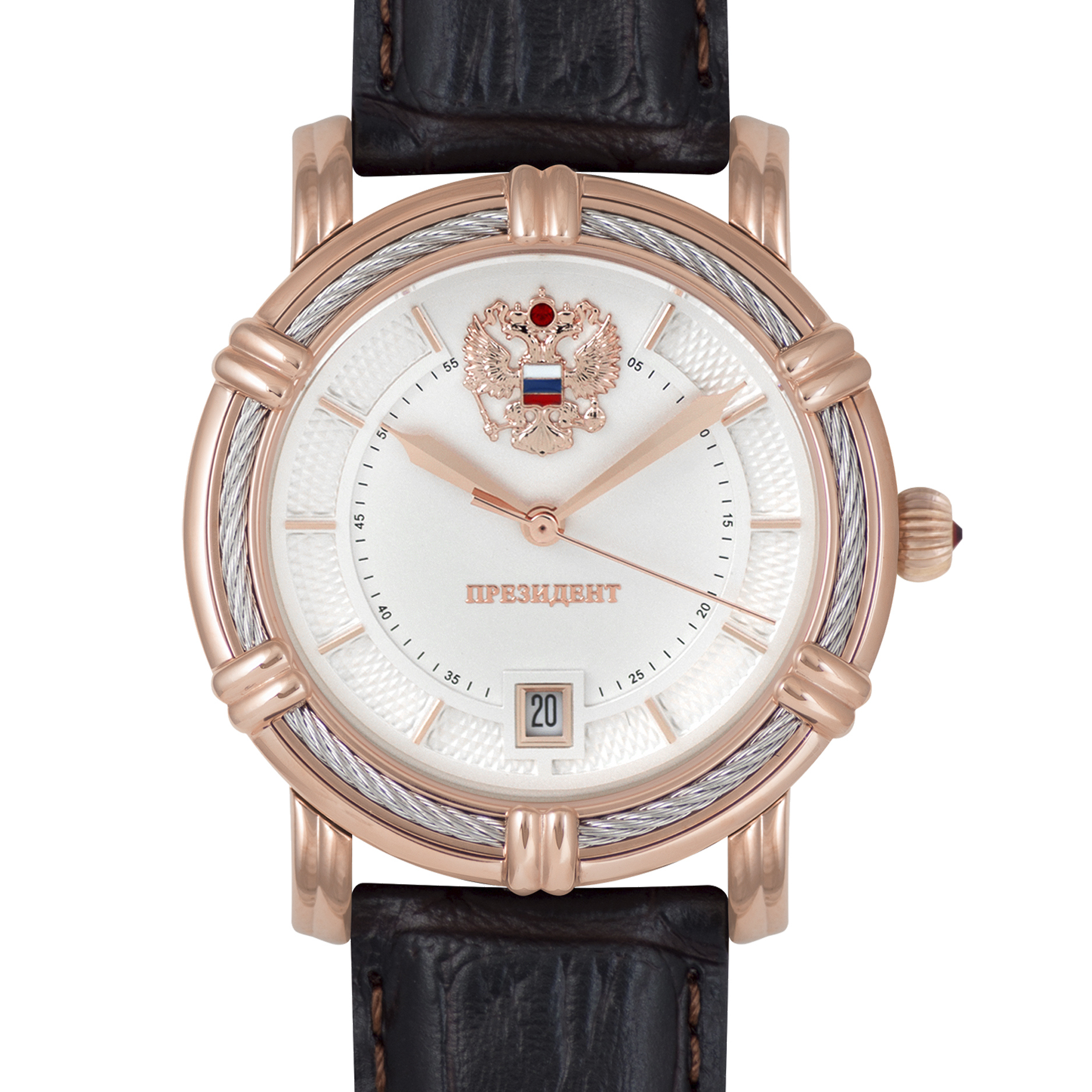 Наручные механические часы Президент бело-золотистые, с темно-коричневым ремешком