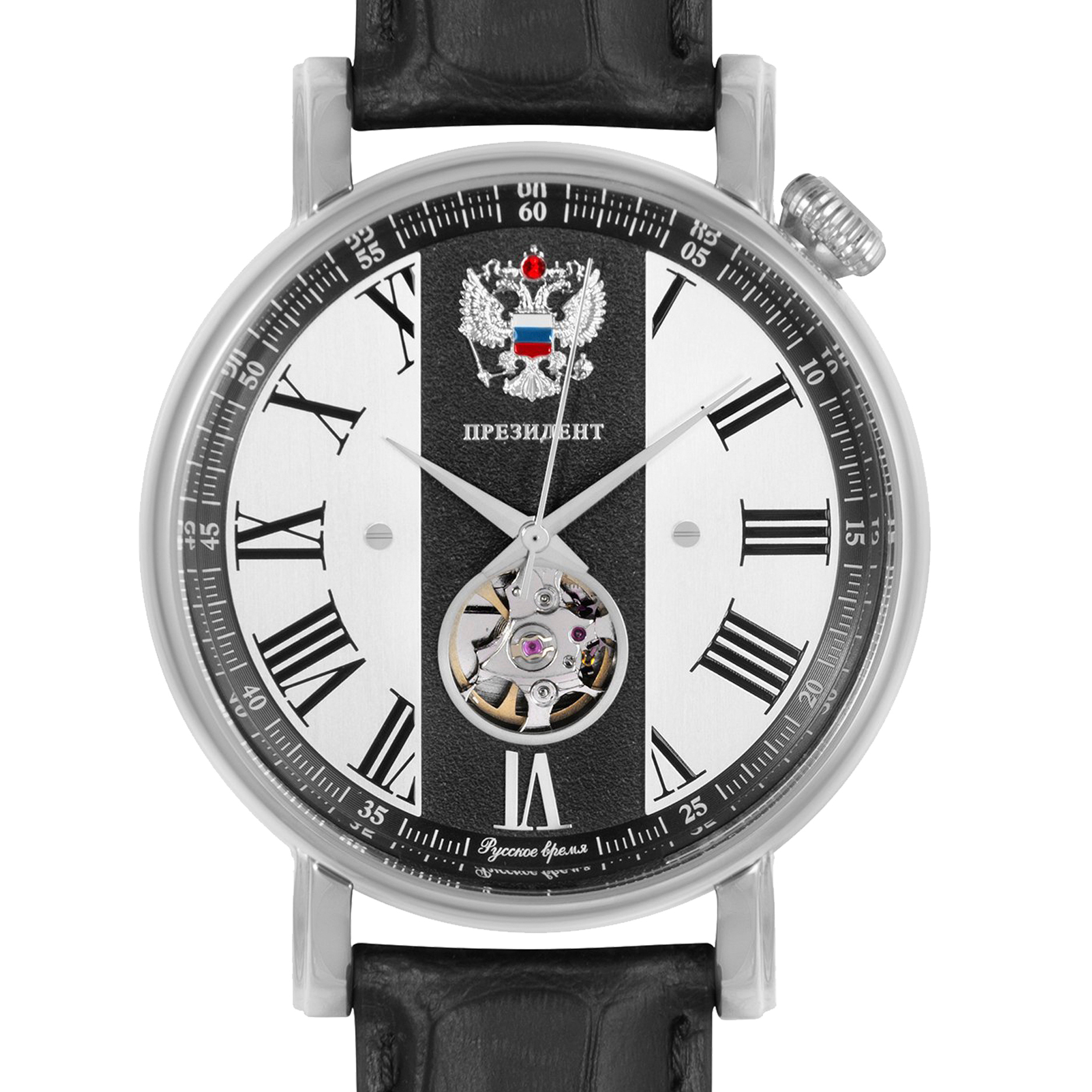 Наручные механические часы Президент черно-серебристые, с черным ремешком