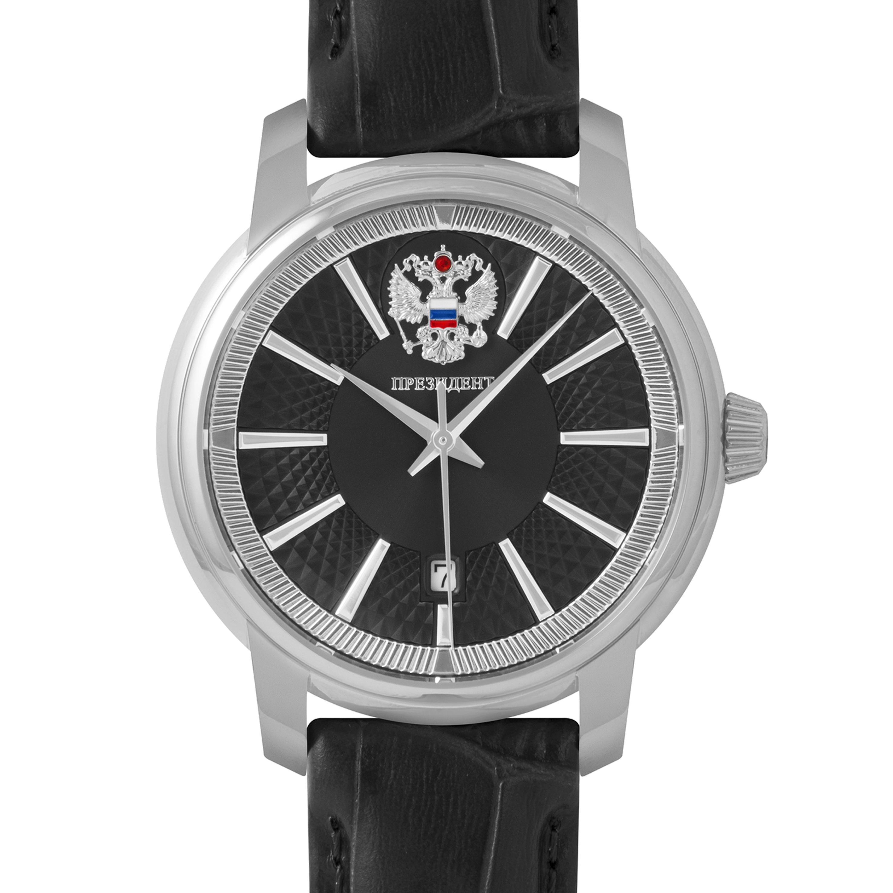 Наручные механические часы Президент черно-серебристые, с черным ремешком
