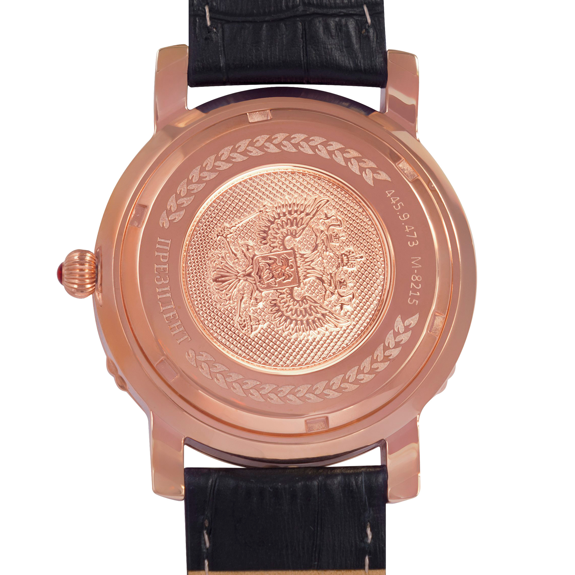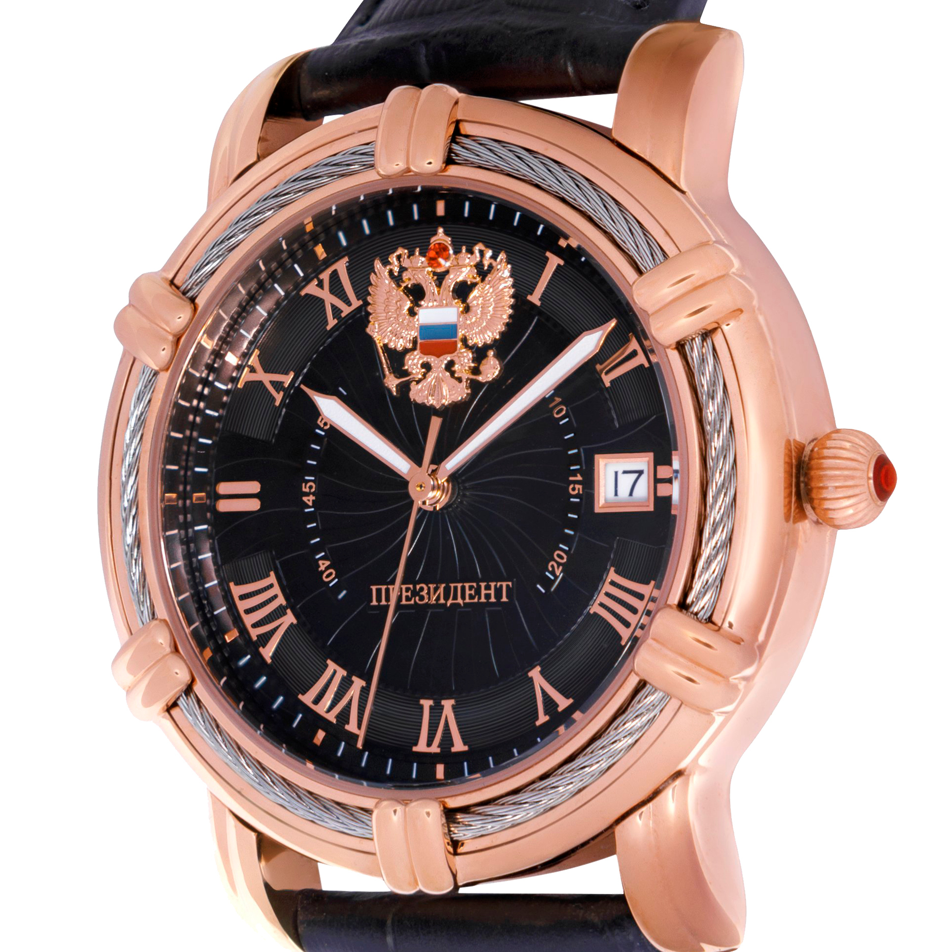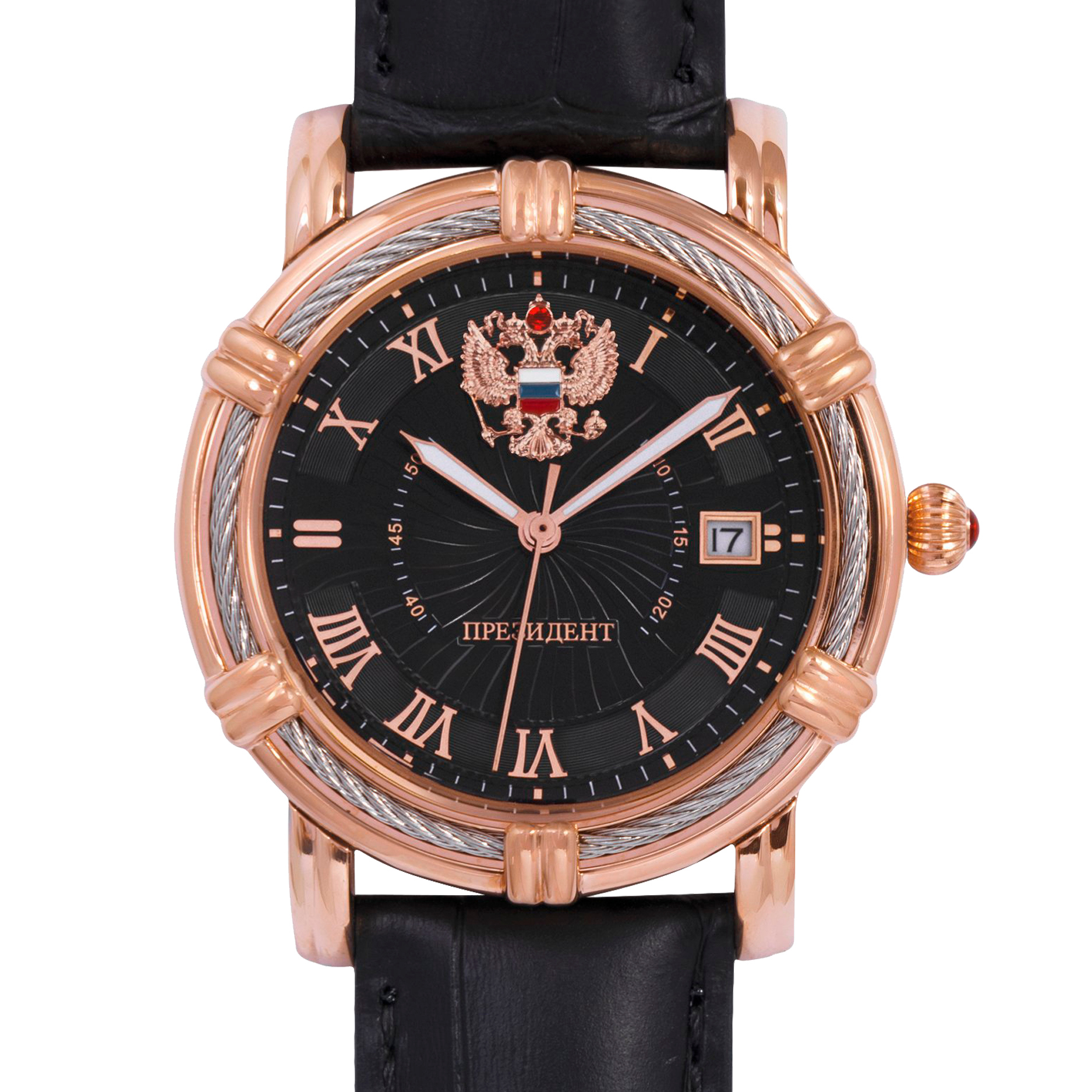 Наручные механические часы Президент черно-золотистые, с черным ремешком, розовое золото