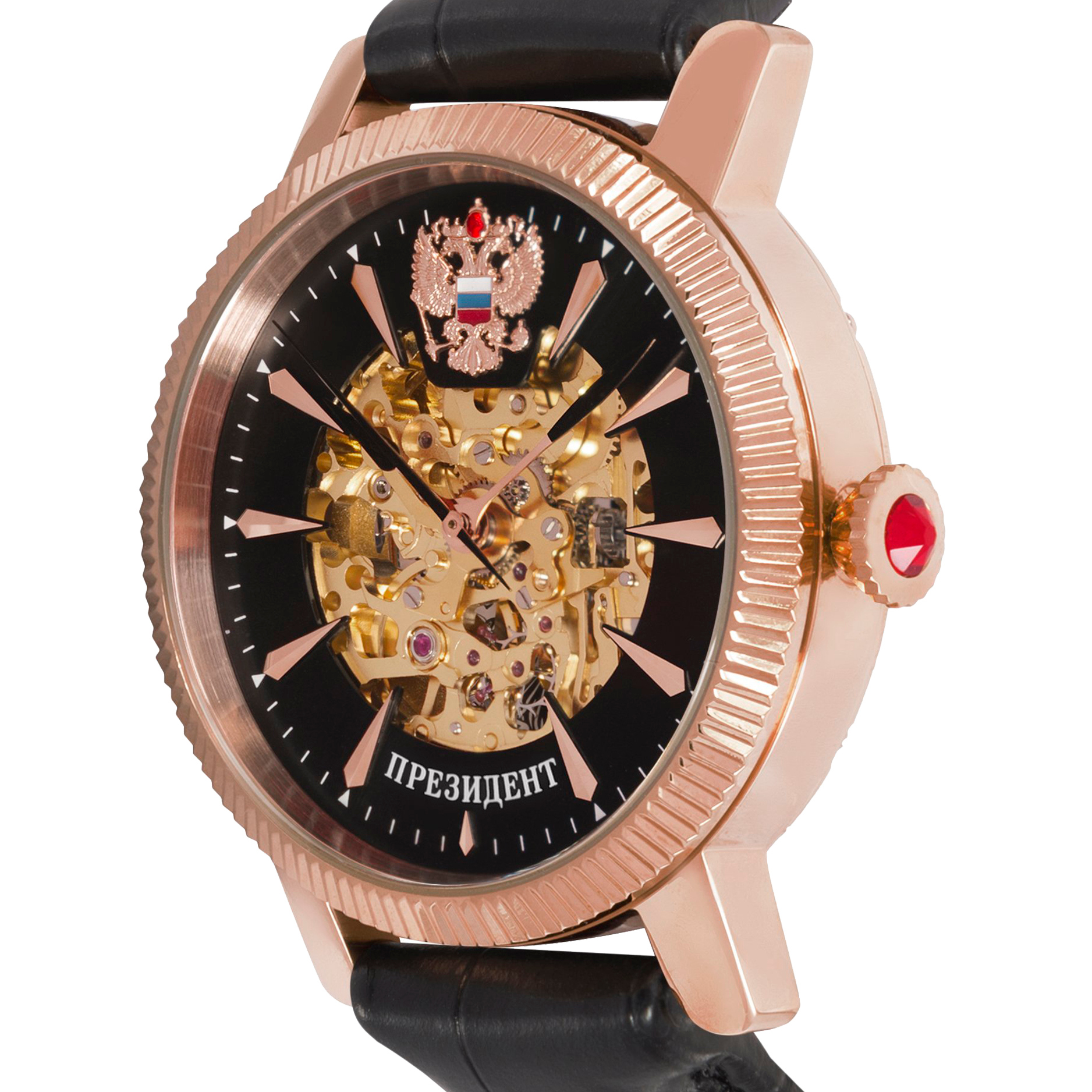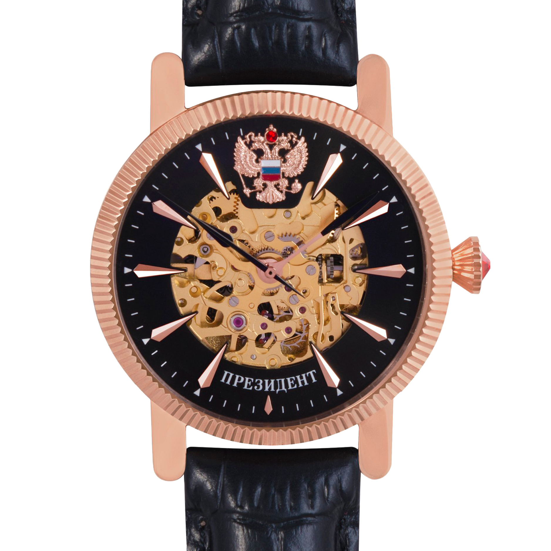 Наручные механические часы Президент черно-золотистые, с черным ремешком
