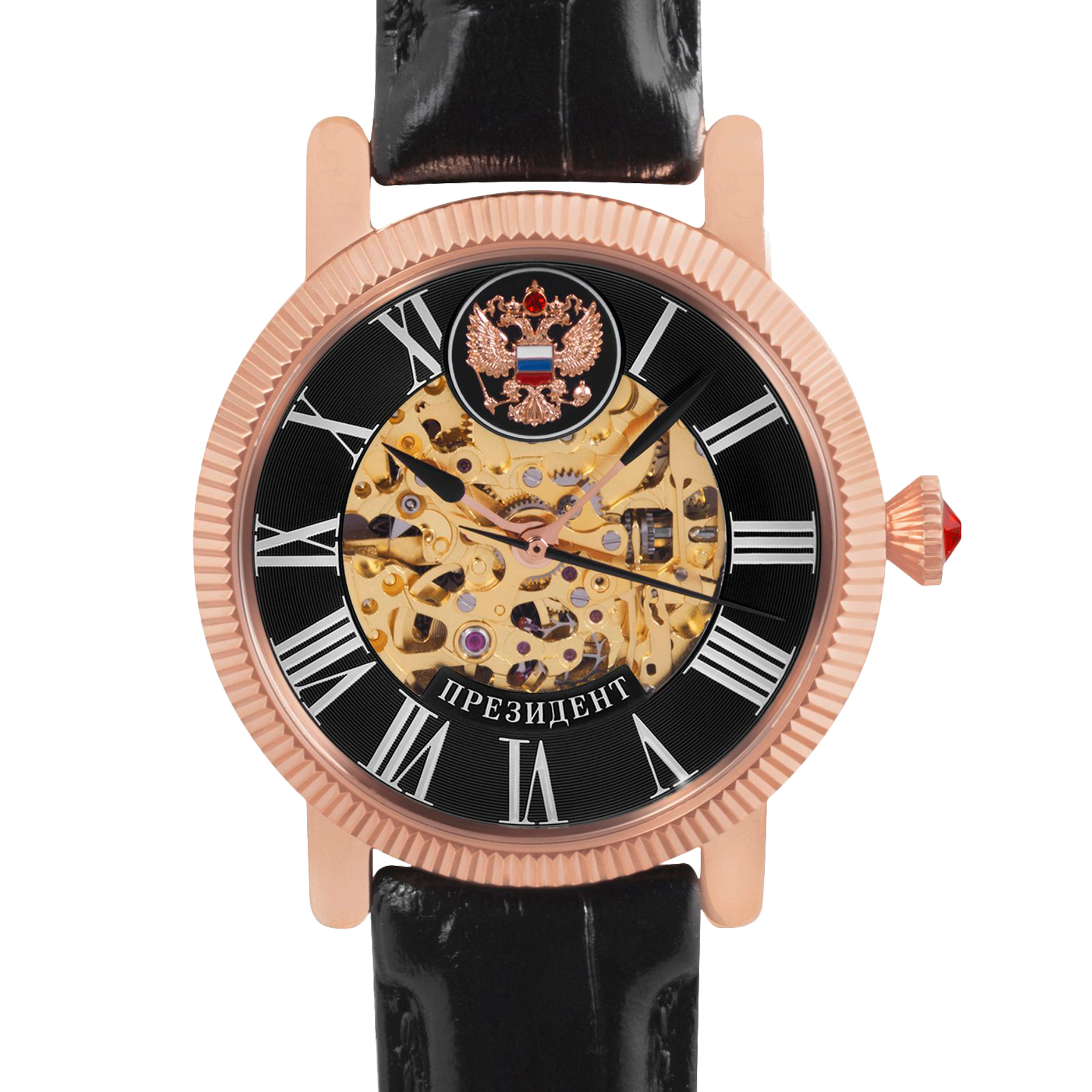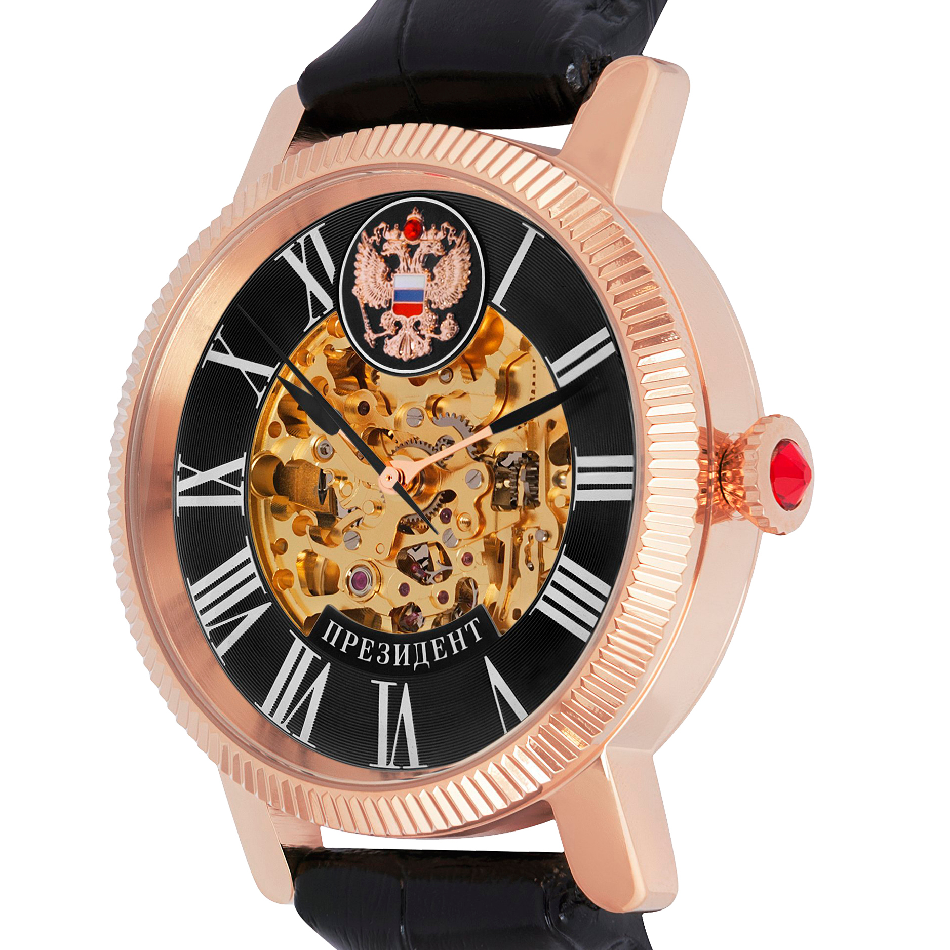 Наручные механические часы Президент черно-золотистые, с черным ремешком