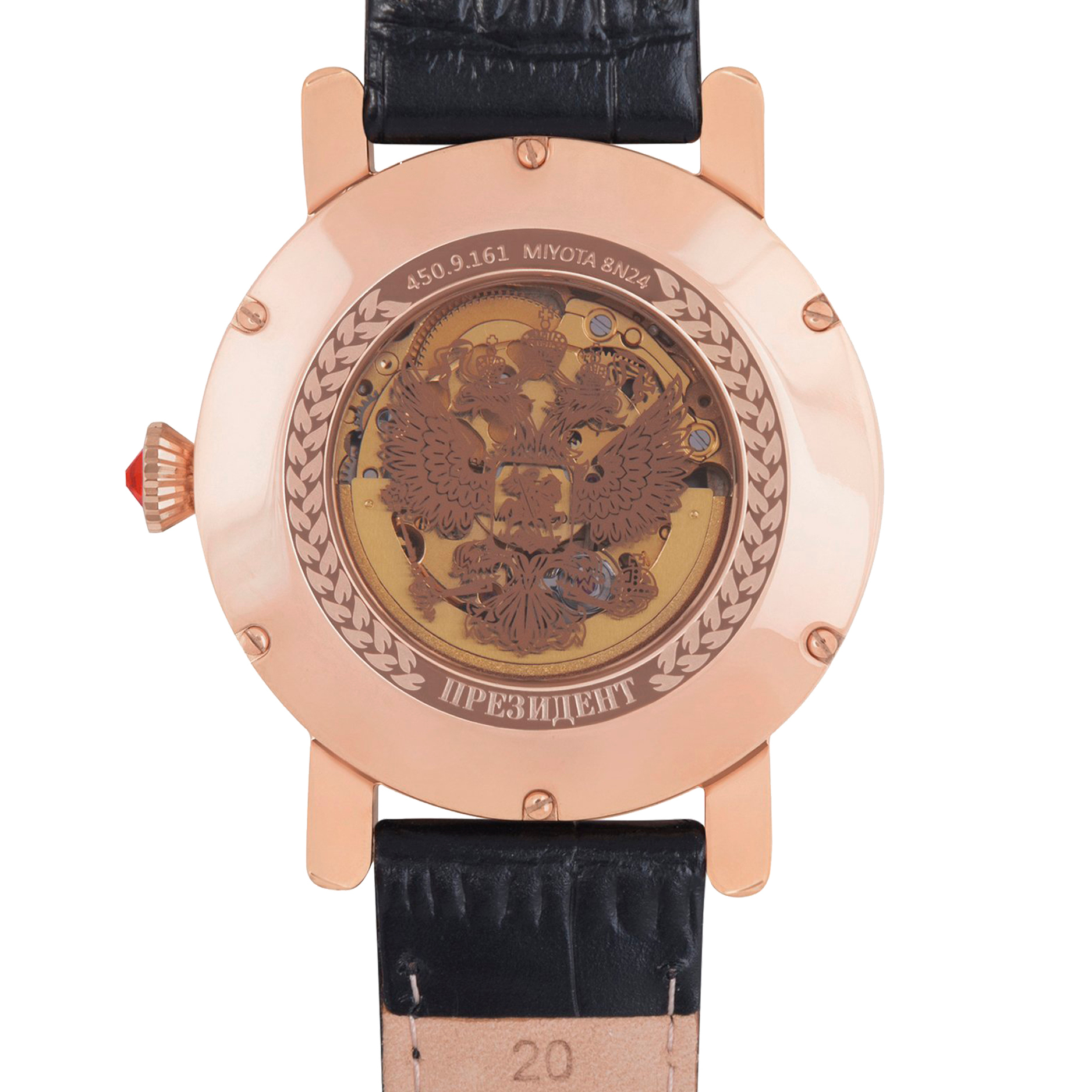 Модели современных из новой коллекции «Президент» отличает респектабельность и классический стиль в истинном понимании этого слова. Это выбор надежных мужчин, абсолютно никогда не отступающих от своих принципов и готовых на все ради своего дела, карьеры. Классический дизайн позволяет носить эту модель каждый день, не размышляя о выборе подходящих аксессуаров и одежды. Деловая встреча или романтическое свидание – эти элегантные часы помогут не опоздать и подчеркнут Ваш безукоризненный стиль. Даже несмотря на все зарубежные технологичные разработки, механические часы компании Часовое производство "Русское время" с автоподзаводом точно не спешат уходить в историю. И 100% не уйдут еще долгие годы: ведь их легкость в использовании, точность хода заслужили доверие людей навсегда. Такие часы в стальном корпусе хорошо обезопасены от мелких повреждений и абсолютно безопасны для здоровья. Нержавеющая сталь – гипоаллергенный материал, поэтому данная модель подойдет всем, кто ценит 100% качество и заботится о здоровье. Розовое золото – отличный вариант для тех, кто любит все нестандартное, но чтит традиции. Часы с таким покрытием в моде уже не первый сезон и не собираются сдавать свои позиции. Ремешок этих часов очень удобен: Вы не будете испытывать неприятных ощущений при ношении данной модели часов. Его материал экологически абсолютно безопасен и полностью разрешен к использованию на территории любой страны.