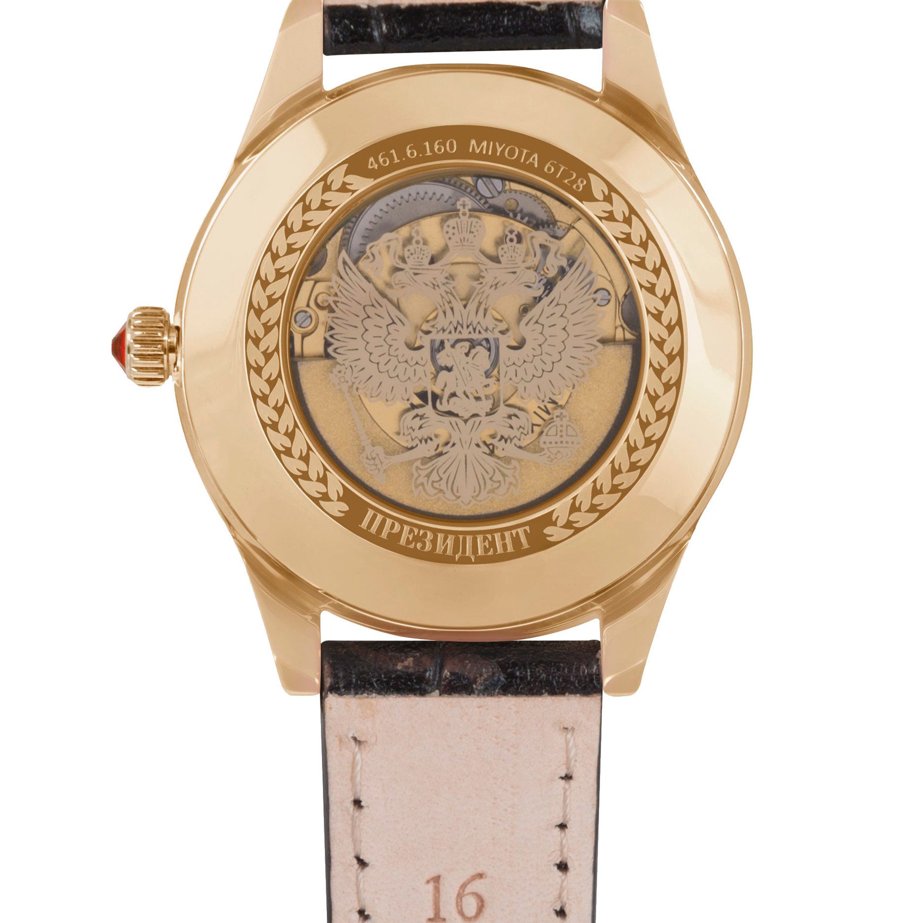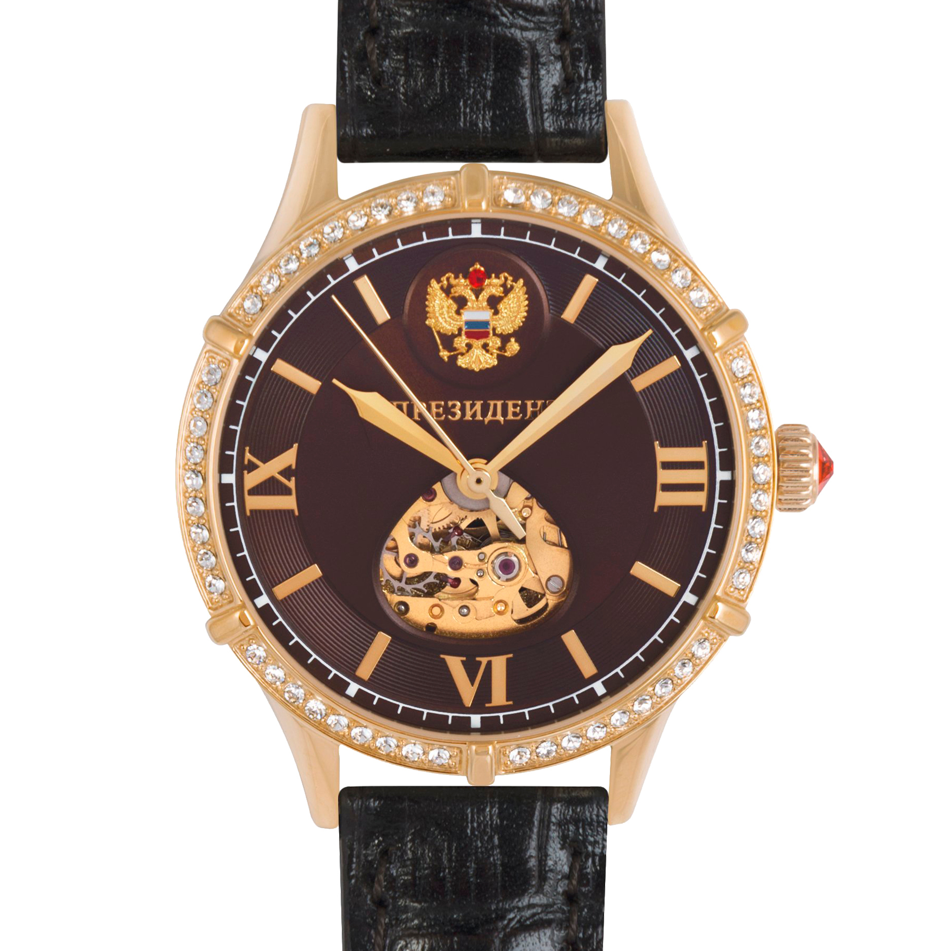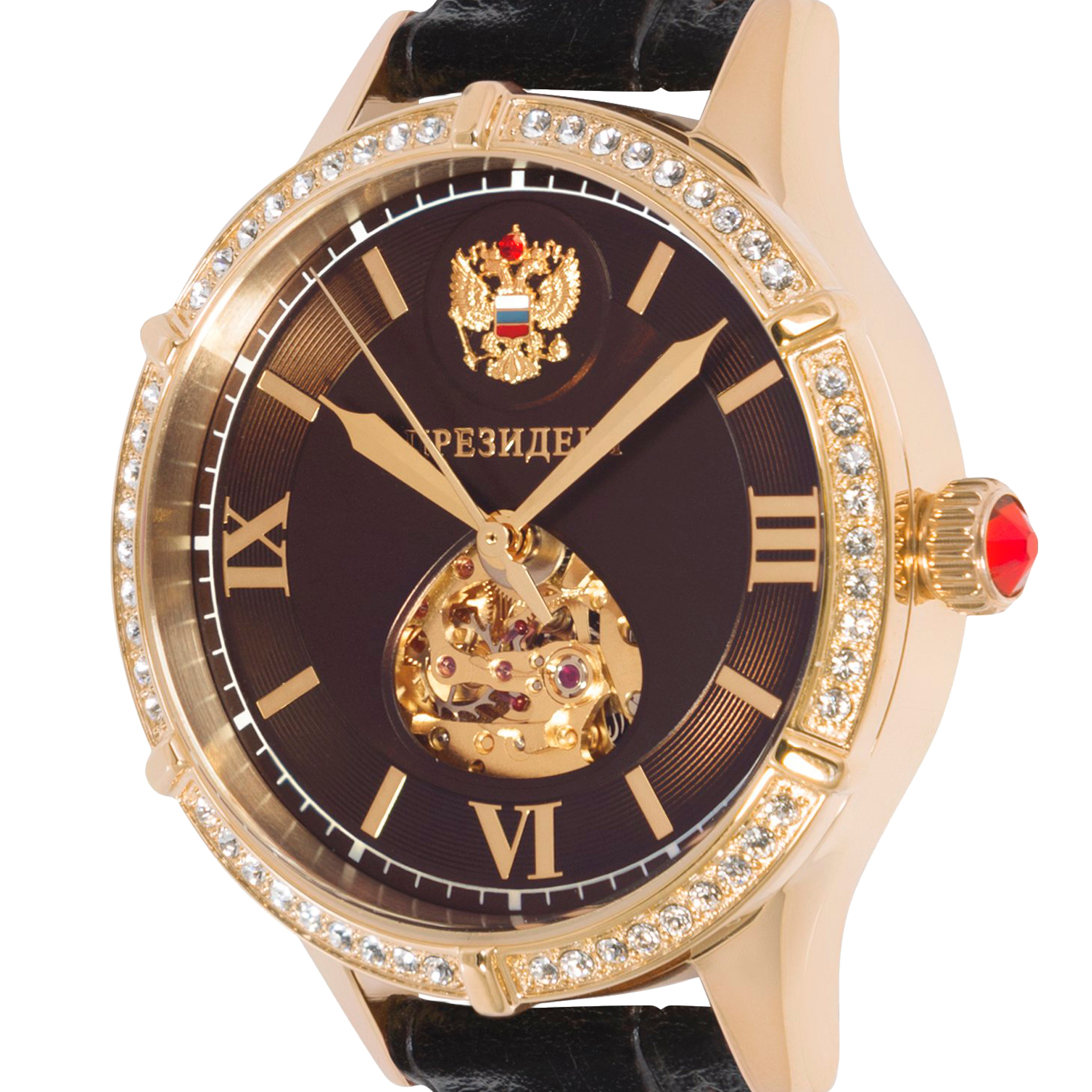 Наручные механические часы Президент коричнево-золотистые, с черным ремешком