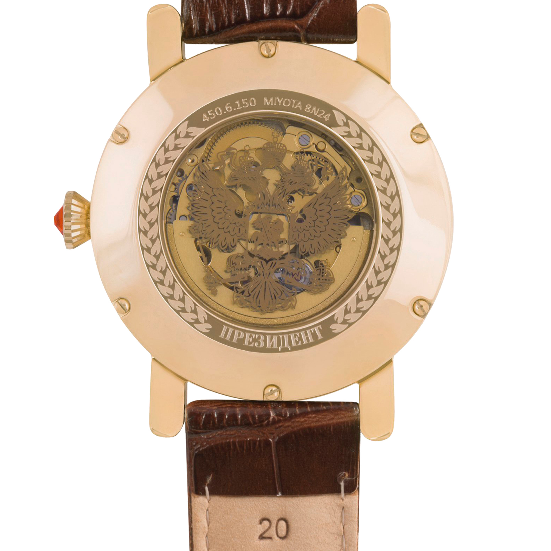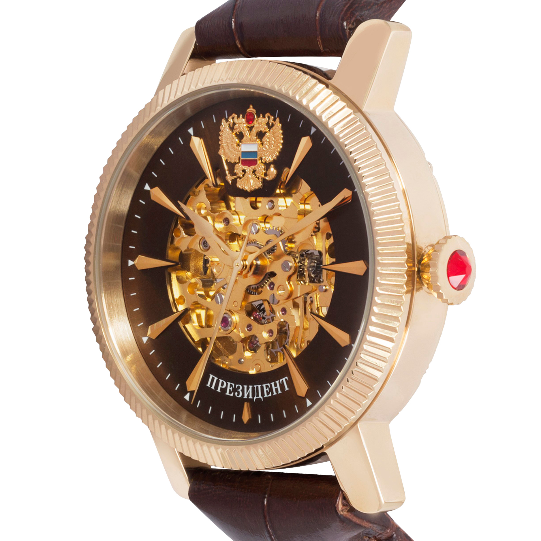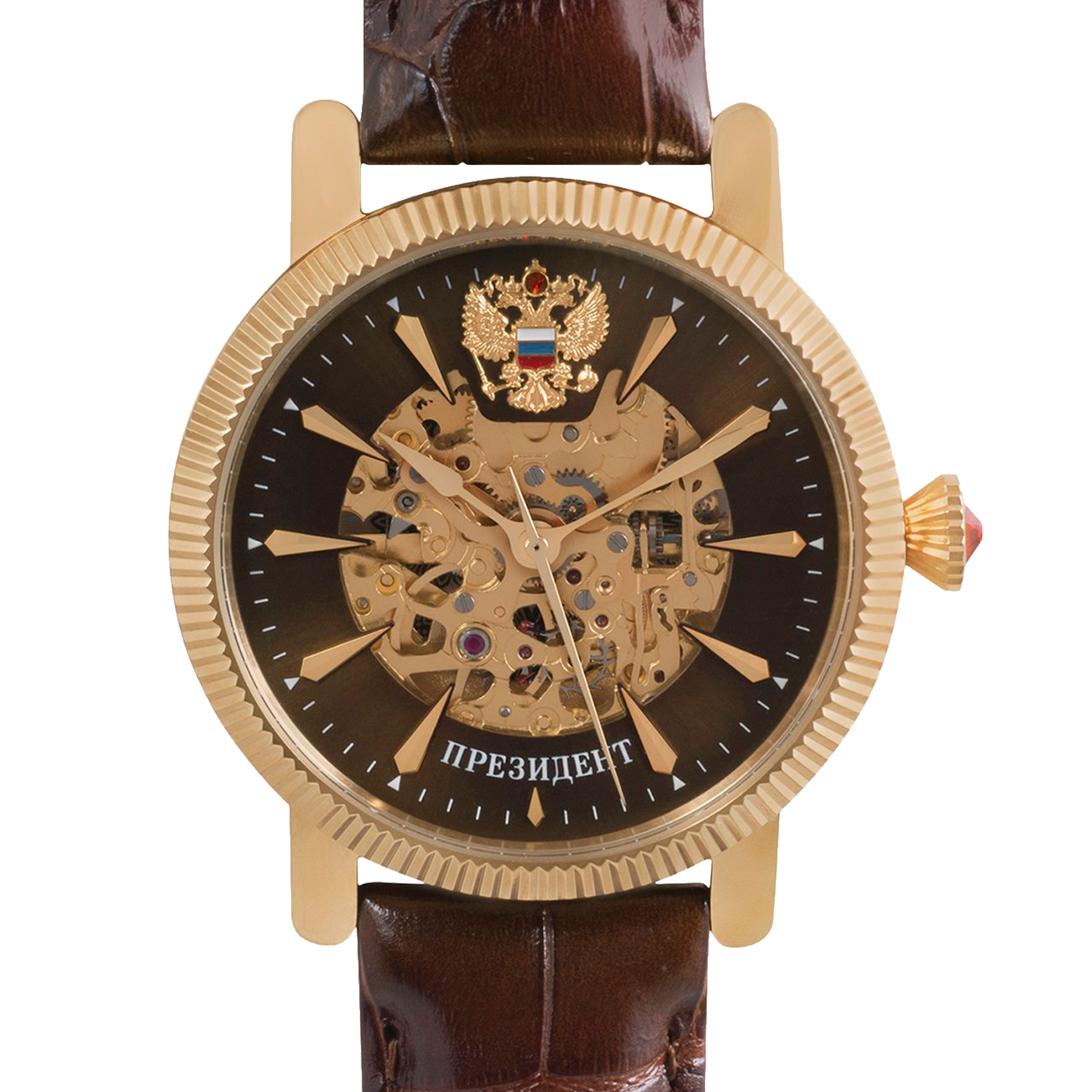 Наручные механические часы Президент коричнево-золотистые, с коричневым ремешком