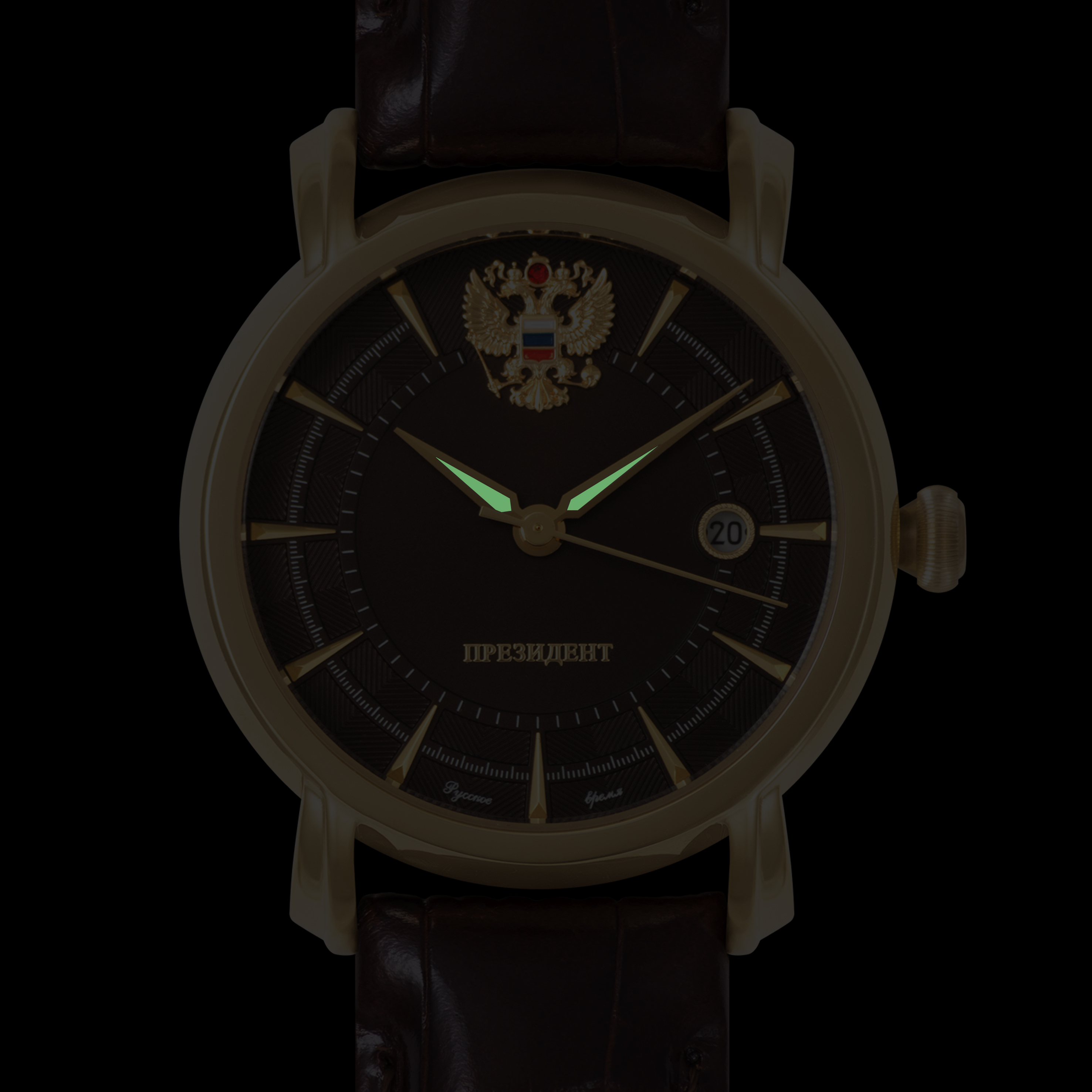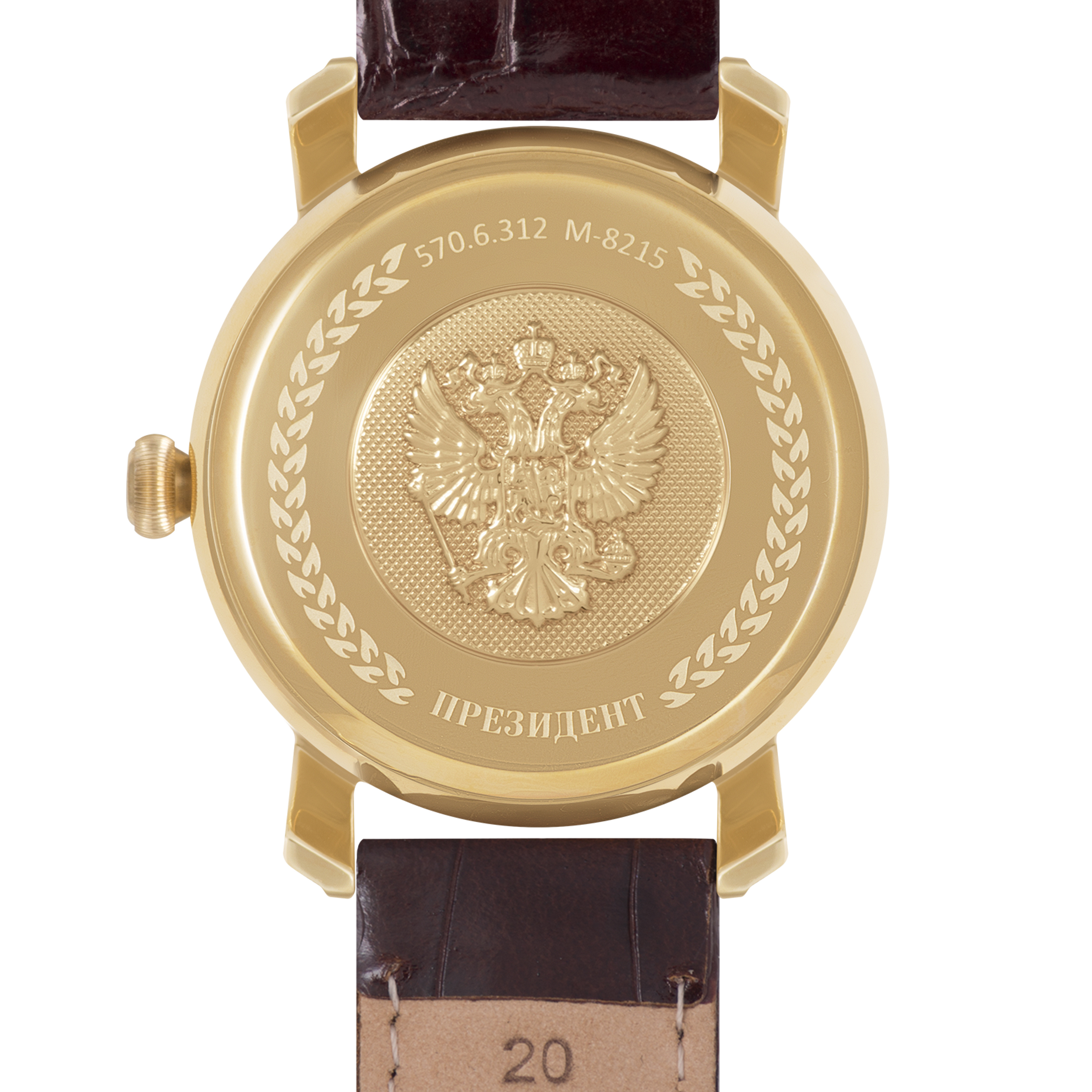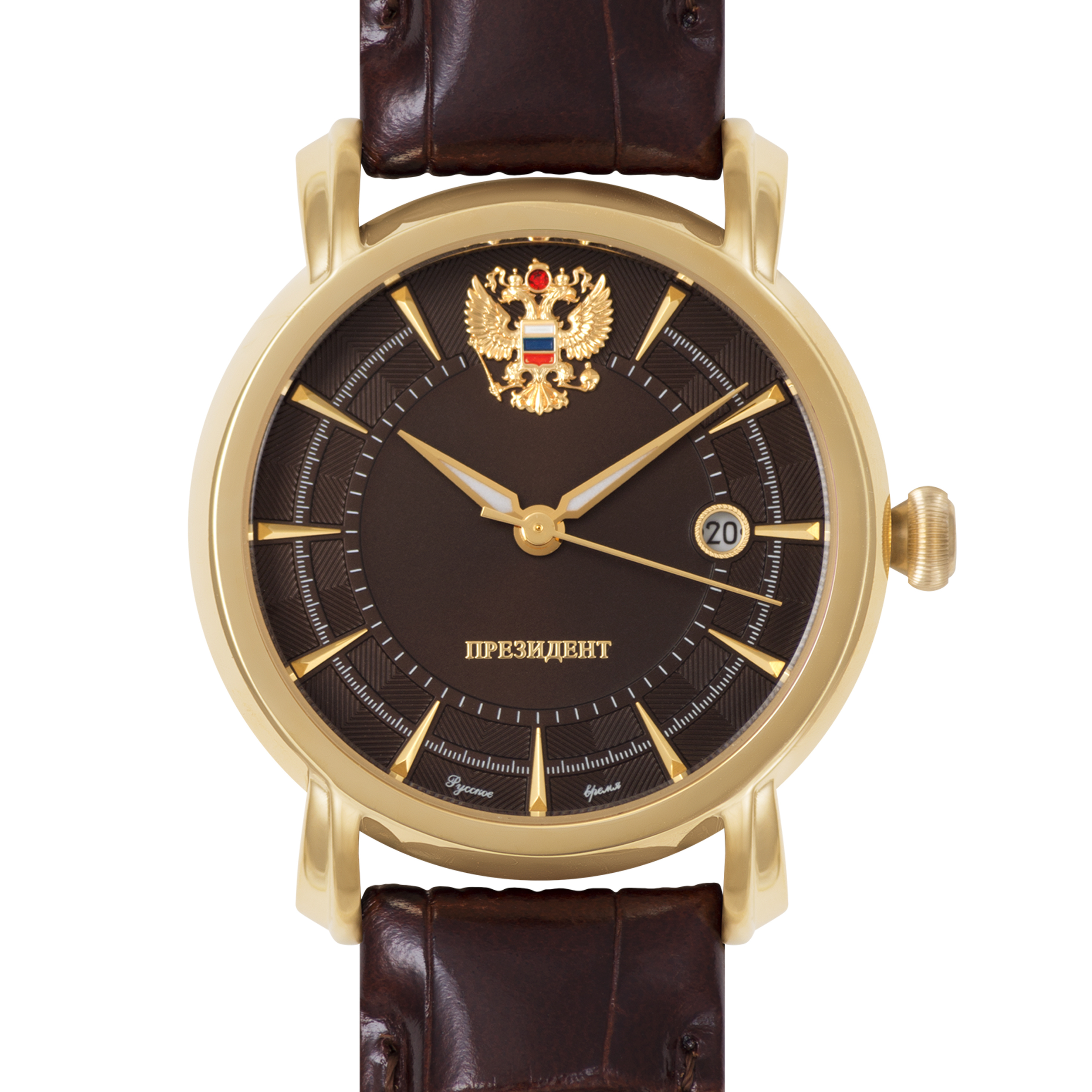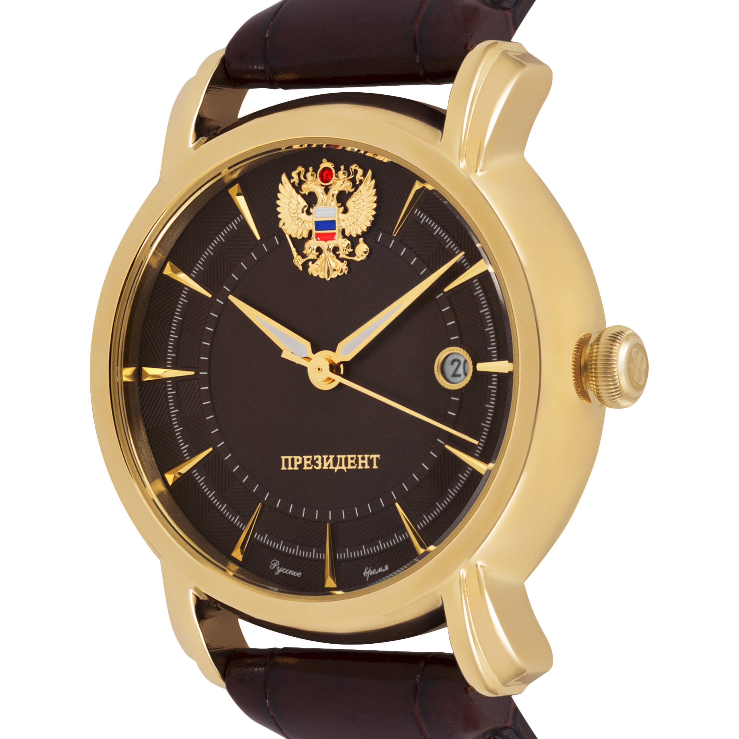 Наручные механические часы Президент коричнево-золотистые, с коричневым ремешком