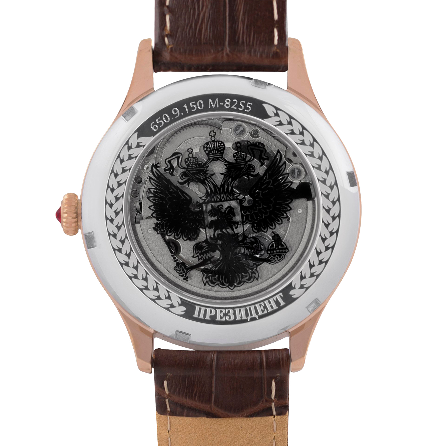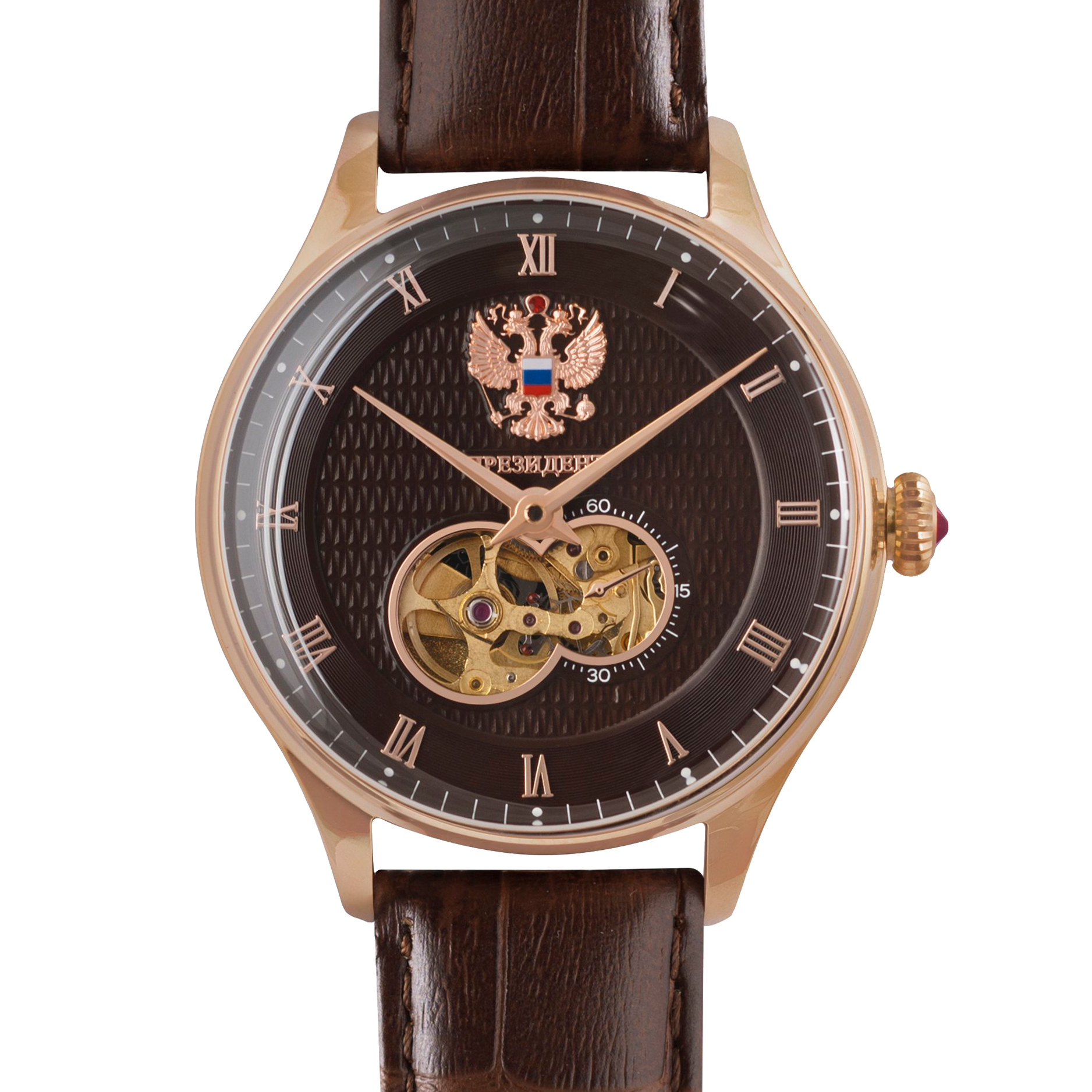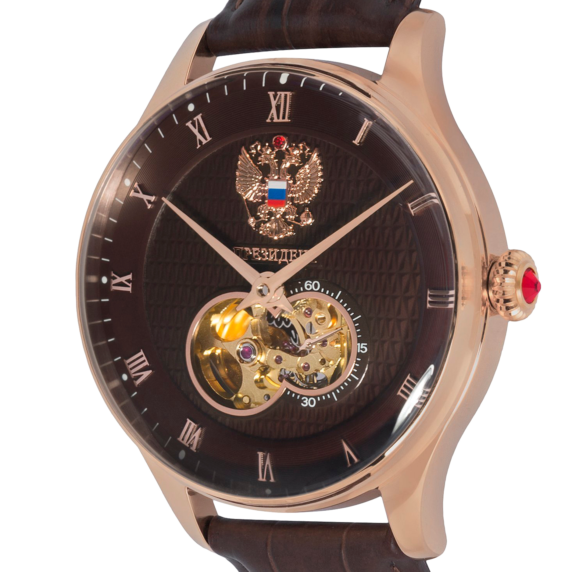 Наручные механические часы Президент коричнево-золотистые, с коричневым ремешком
