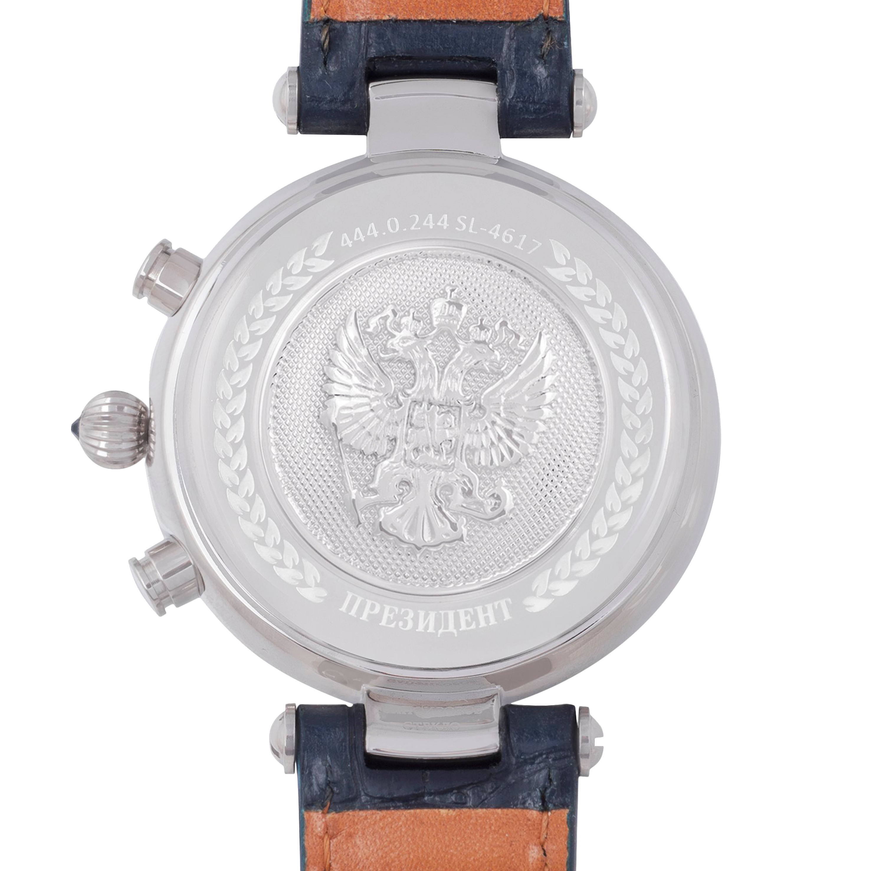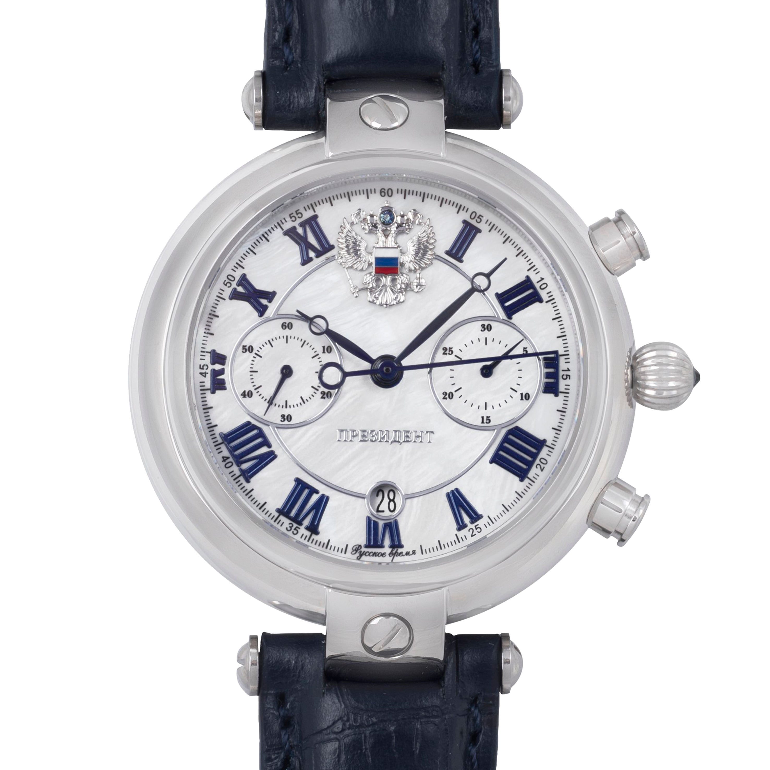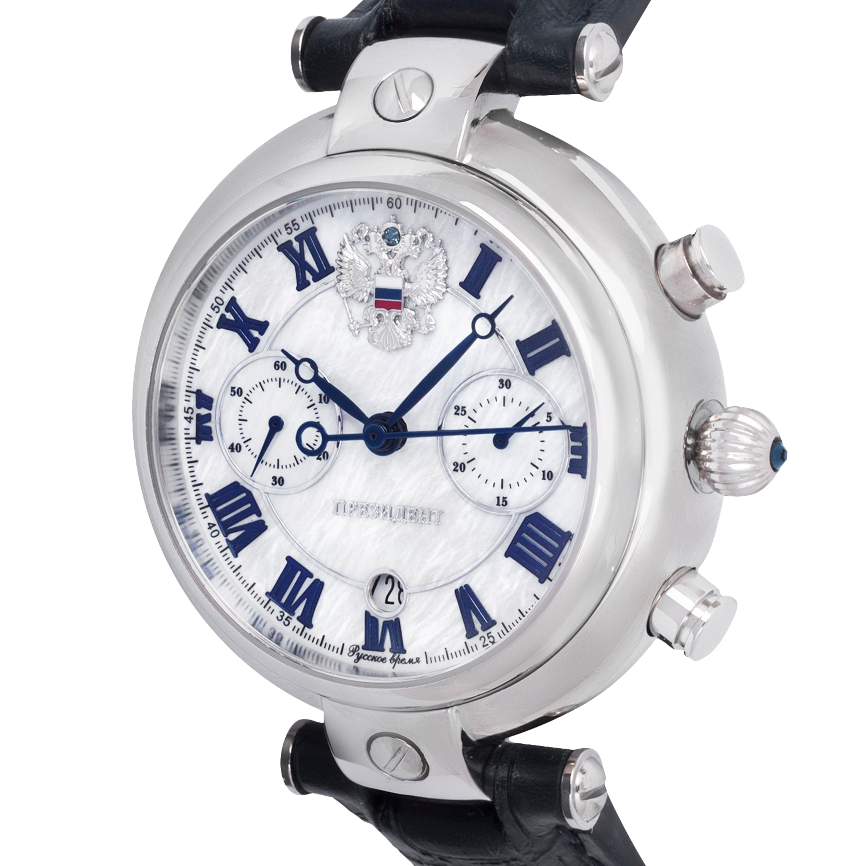 Наручные механические часы Президент перламутрово-серебристые, с синим ремешком