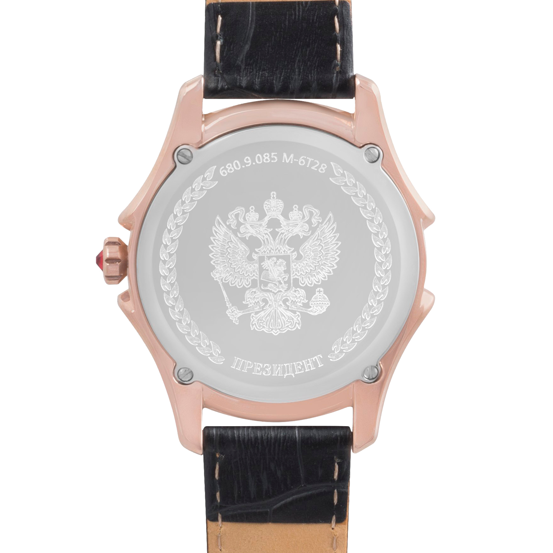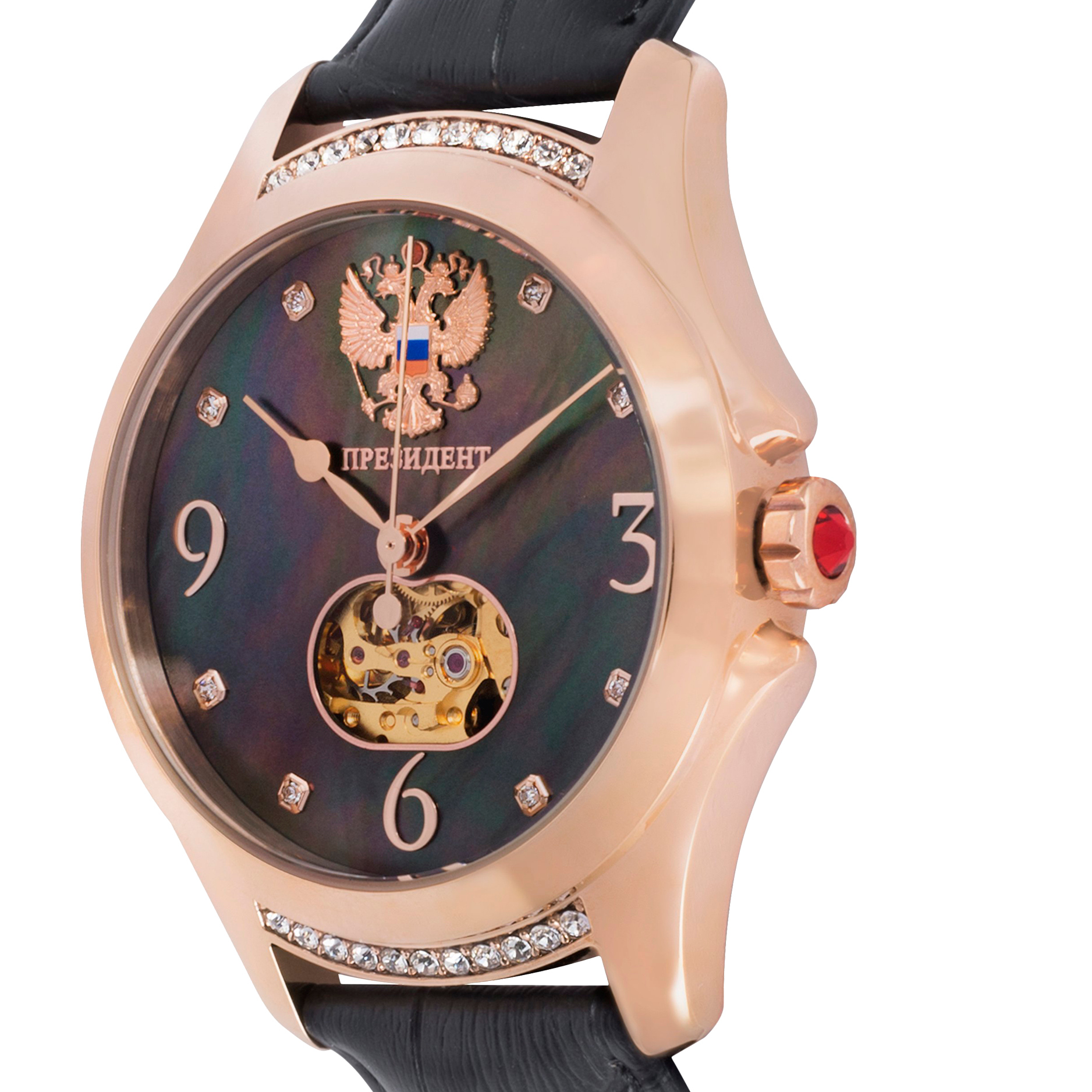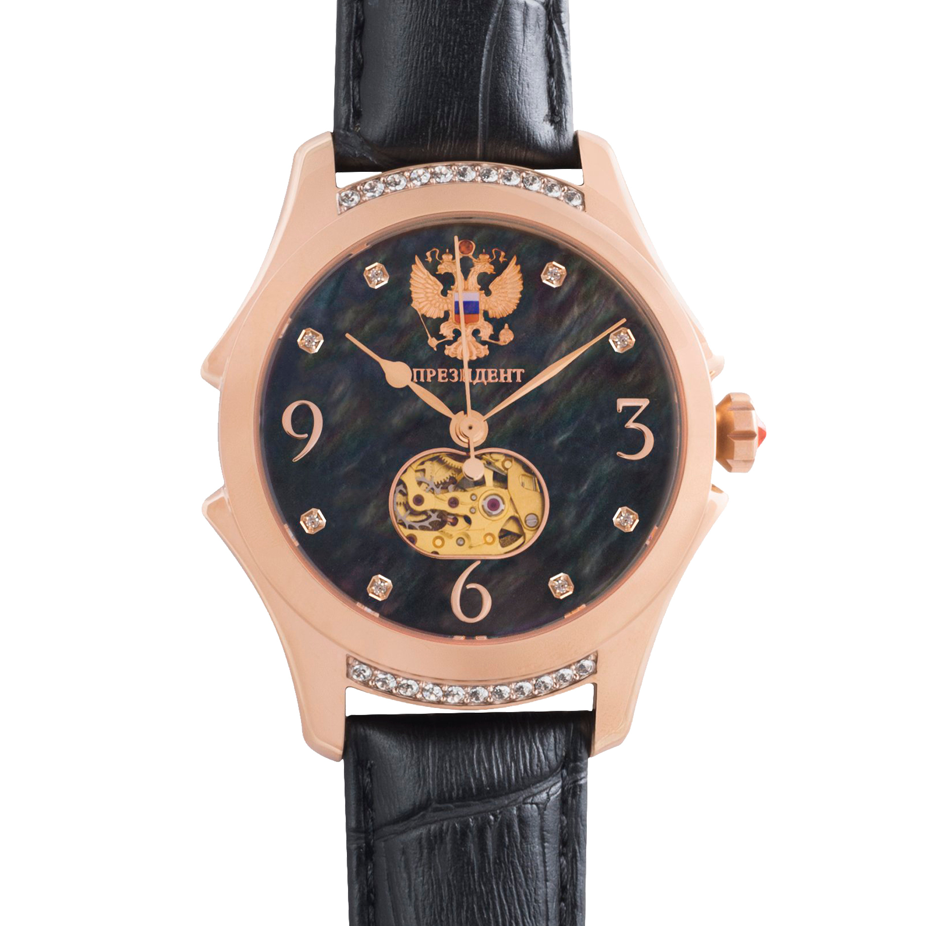 Наручные механические часы Президент перламутрово-золотистые, с черным ремешком