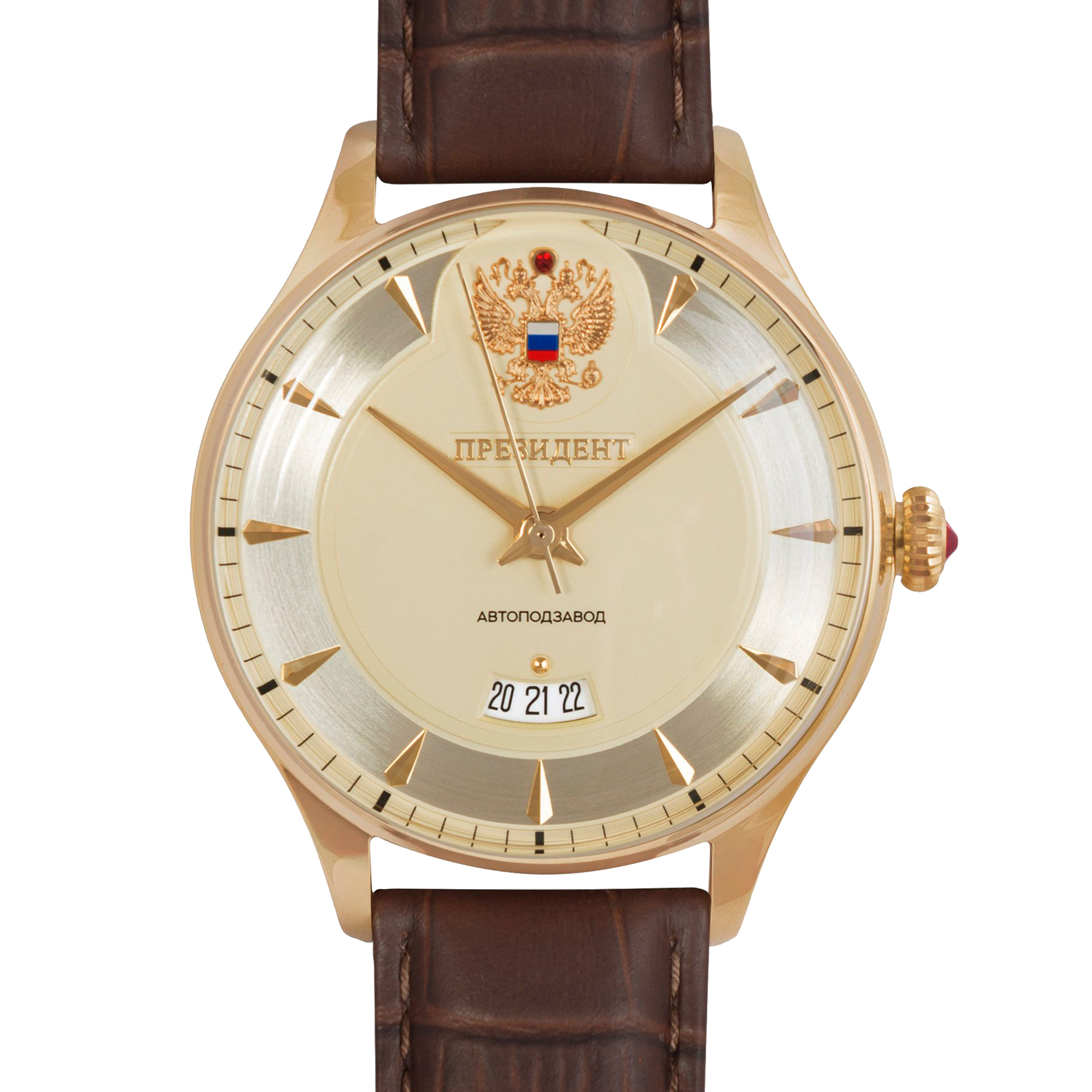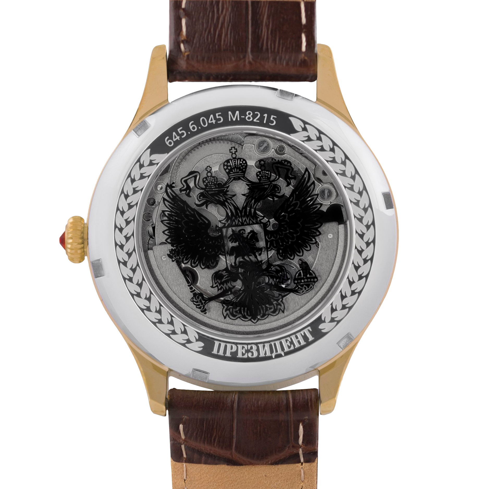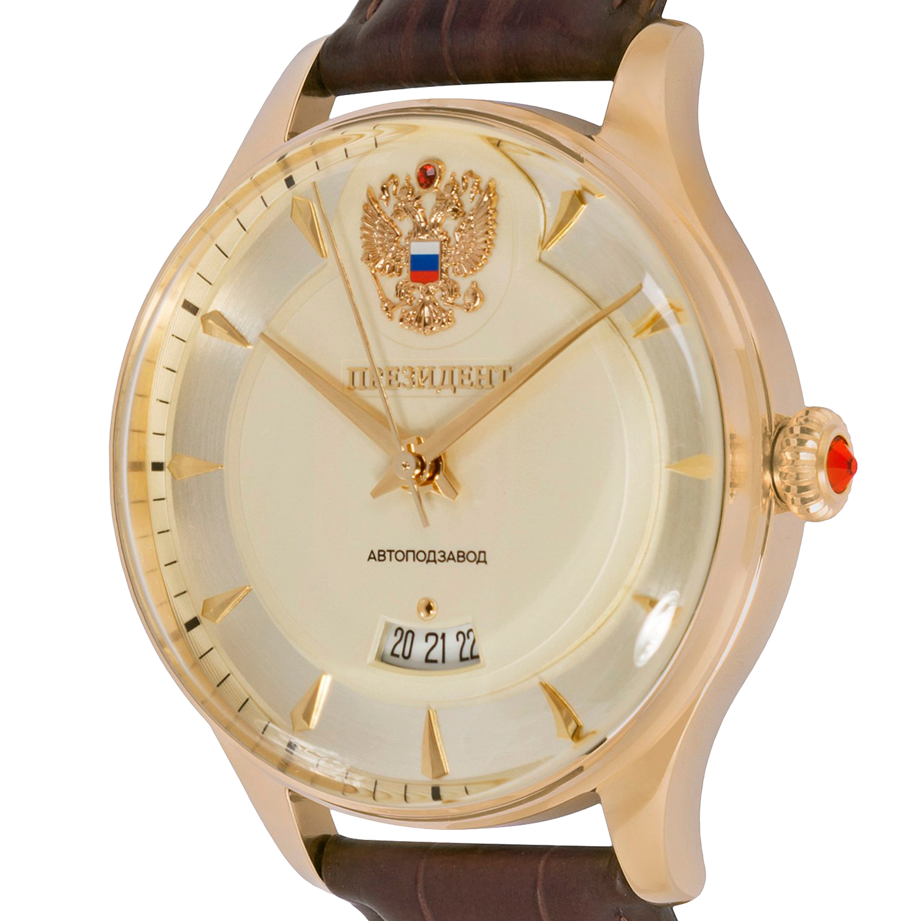 Наручные механические часы Президент золотистые, с коричневым ремешком