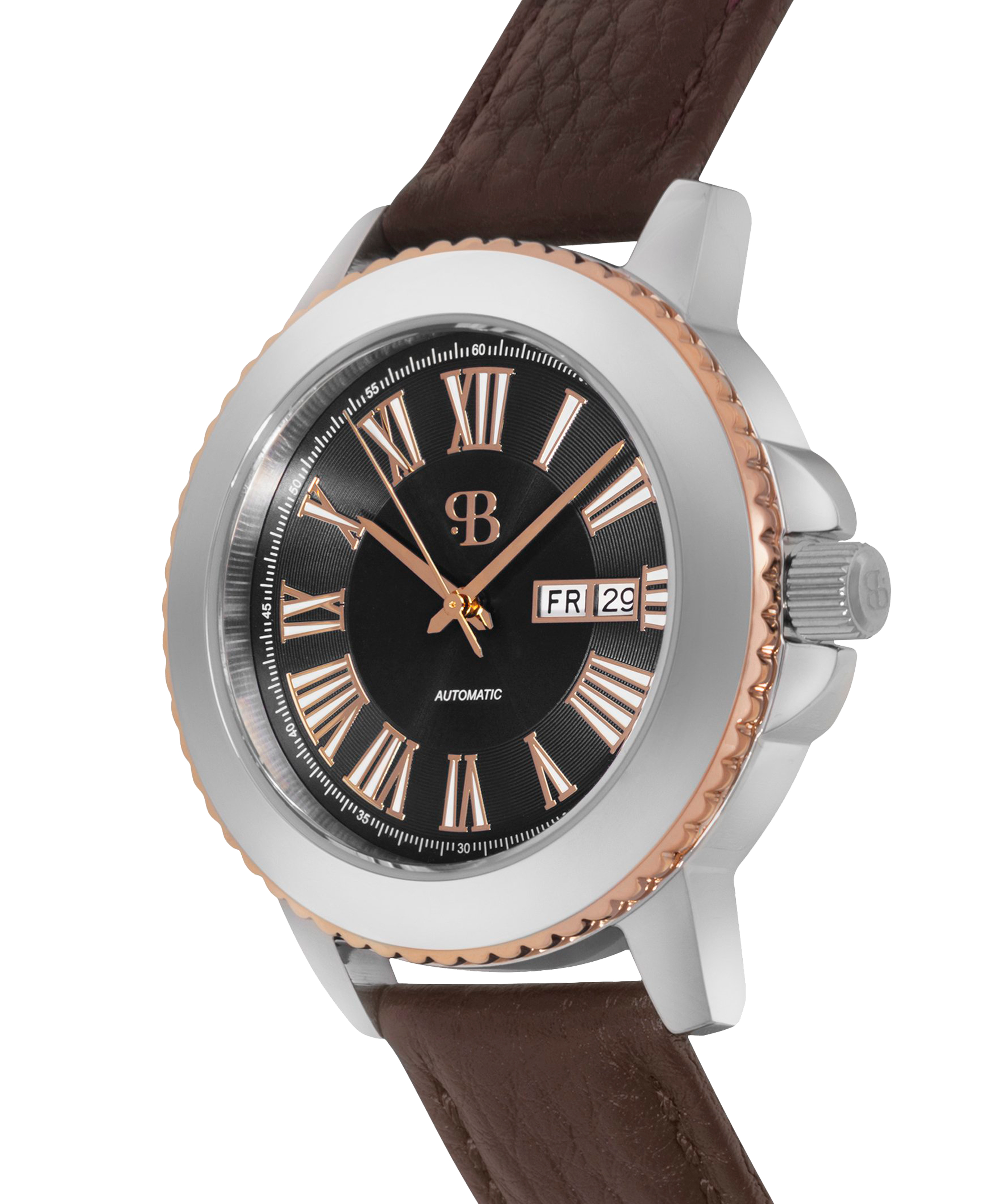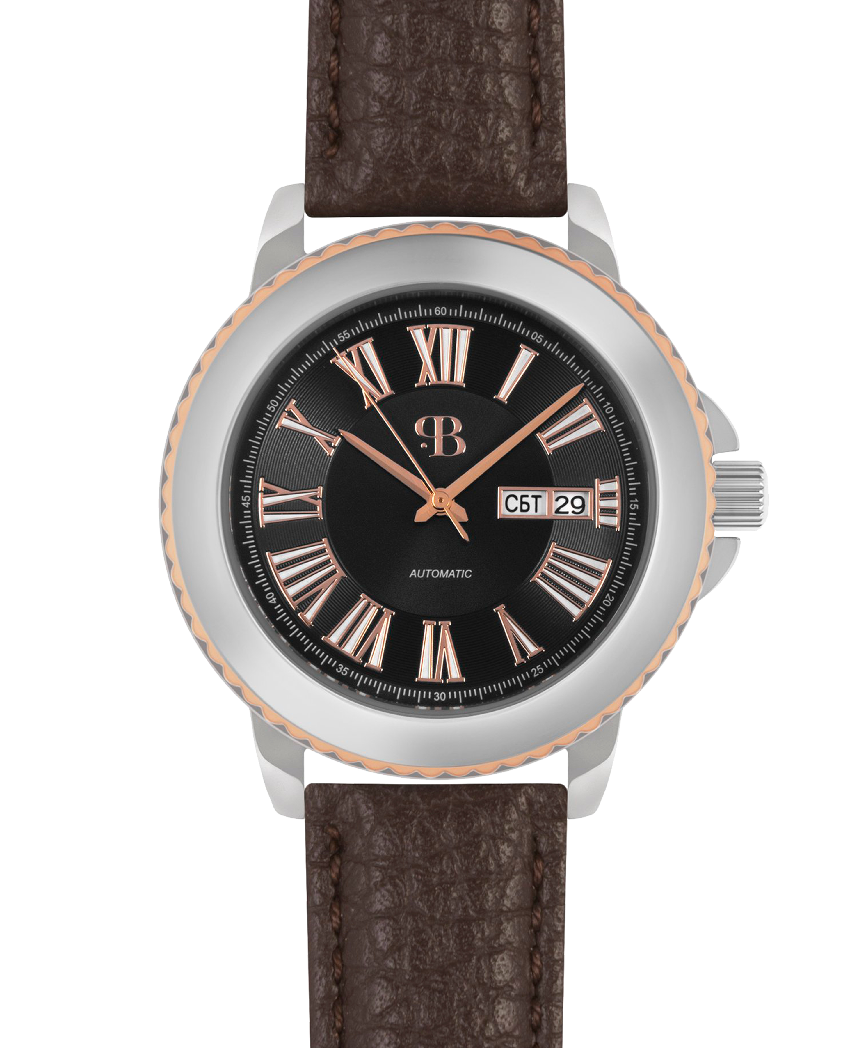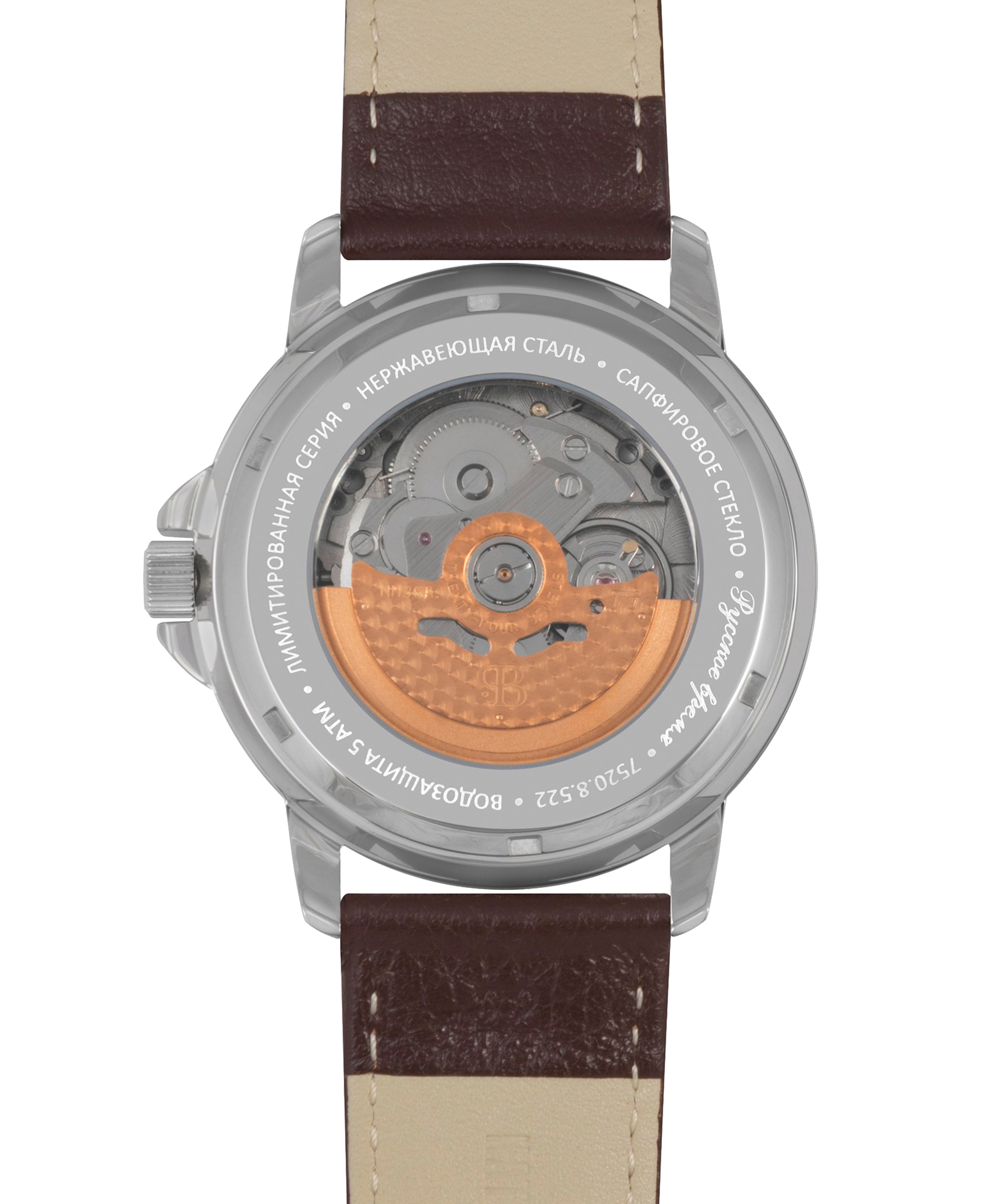 Наручные механические часы Русское время чернно-серебристые с коричневым ремешком