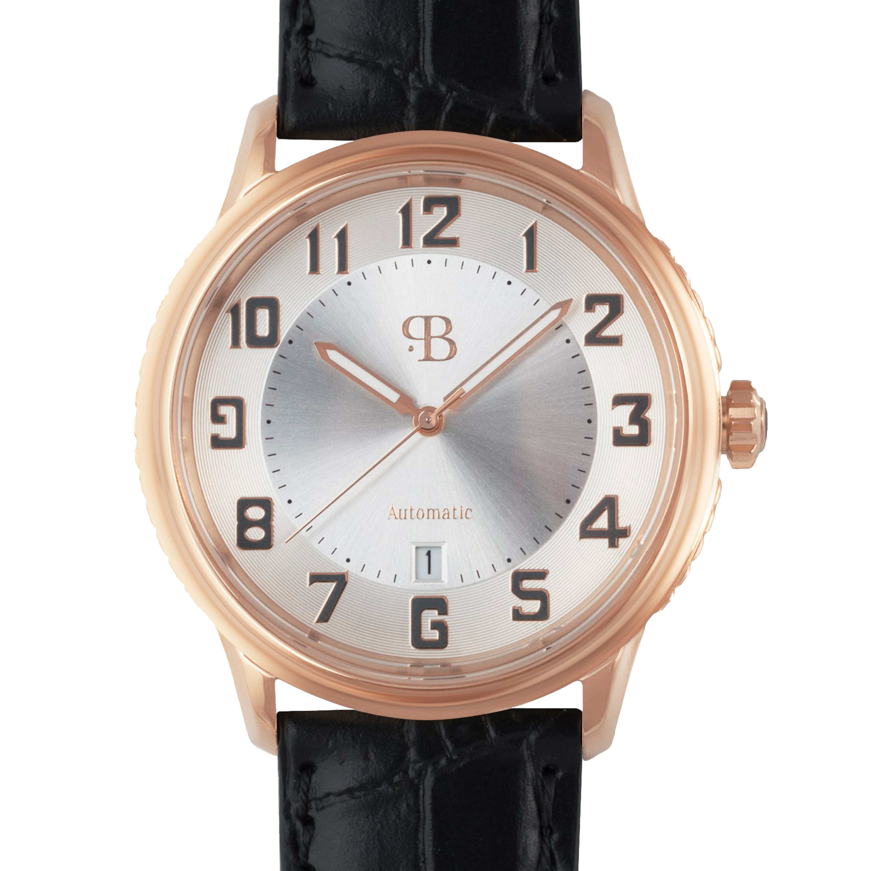 Наручные механические часы Русское время серебристо-золотистые с черным ремешком