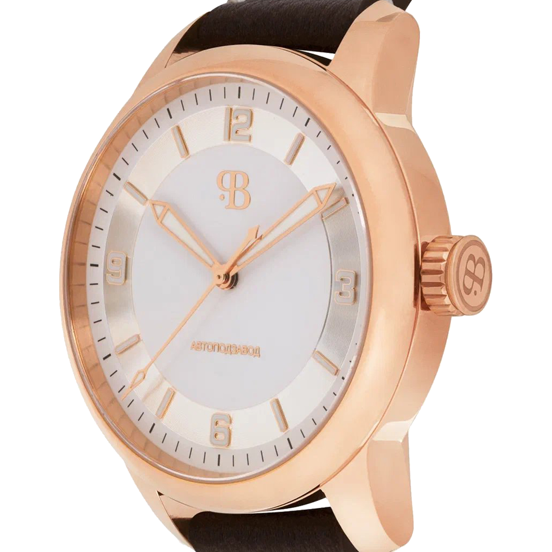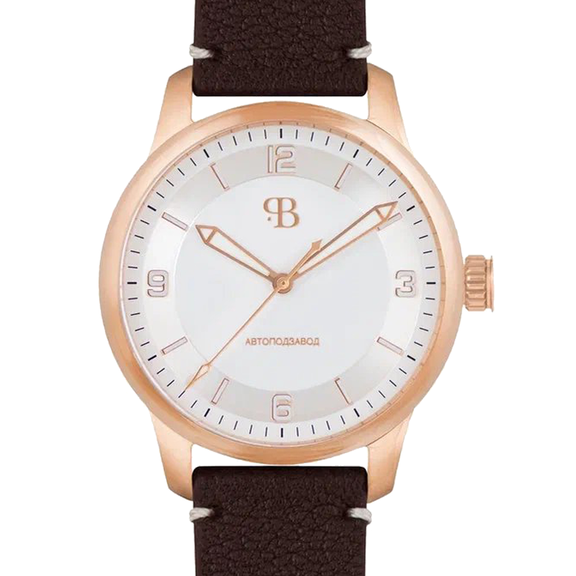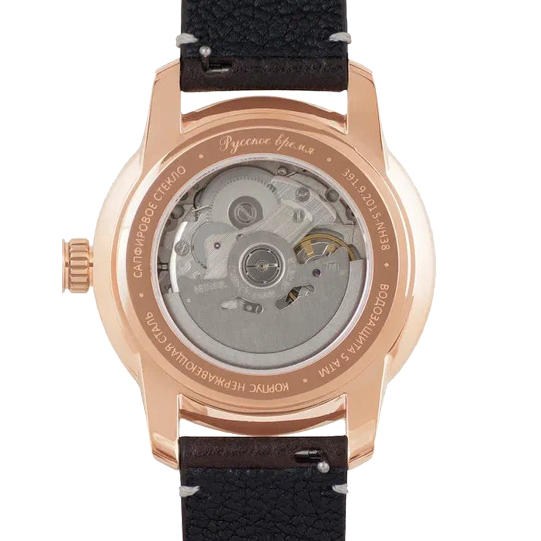 Наручные механические часы Русское время серебристо - золотистые с коричневым ремешком