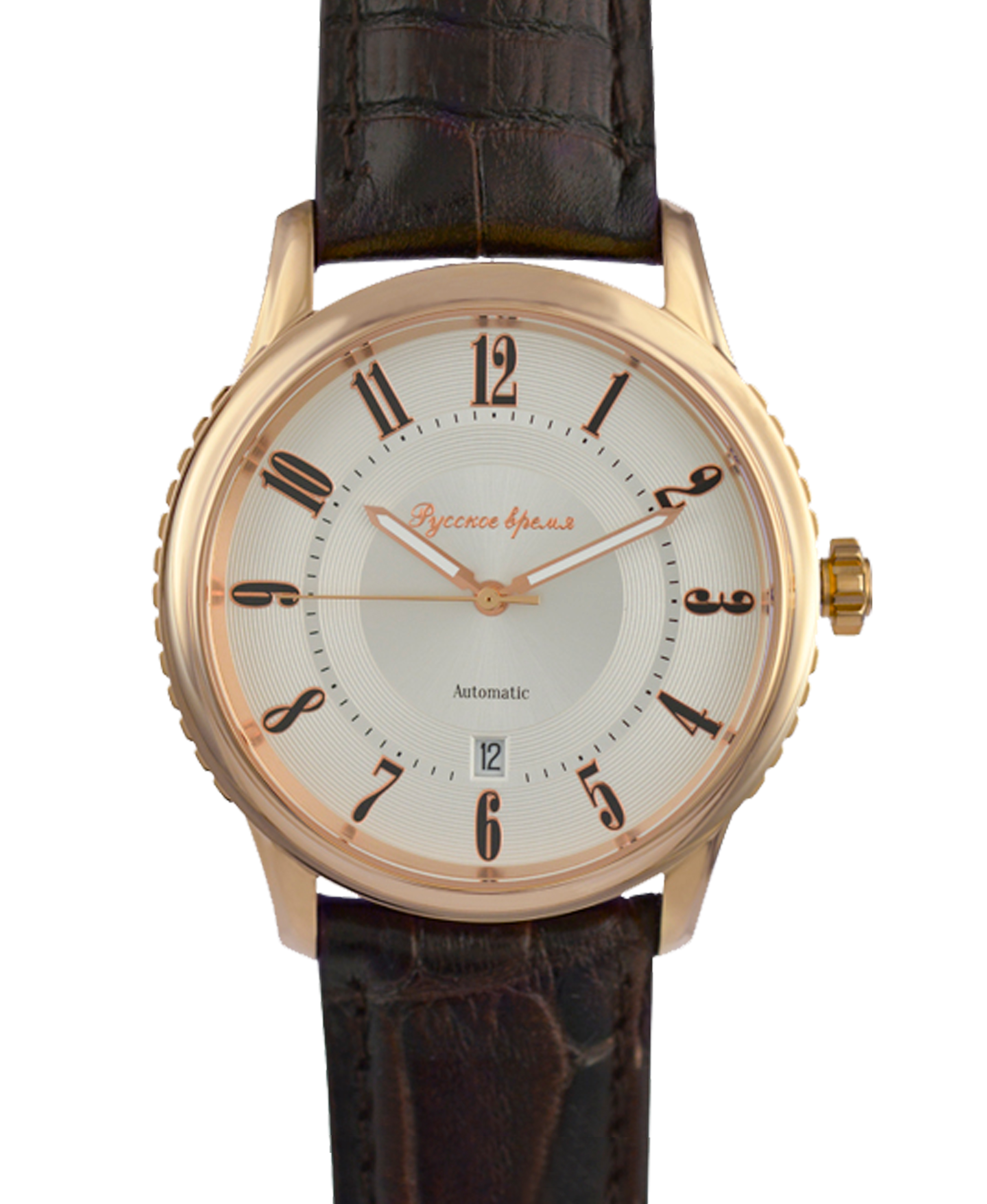 Наручные механические часы Русское время серебристо-золотистые с коричневым ремешком