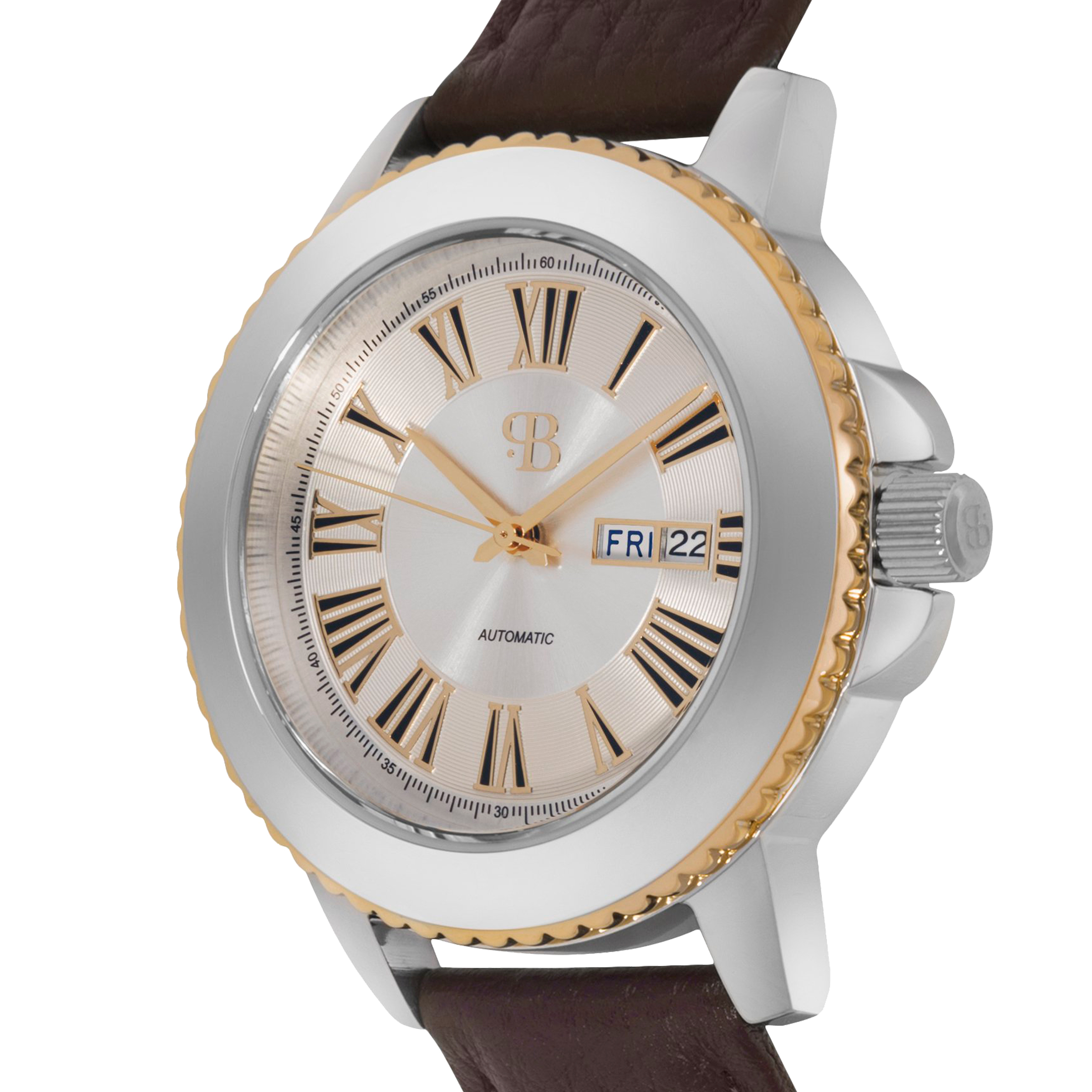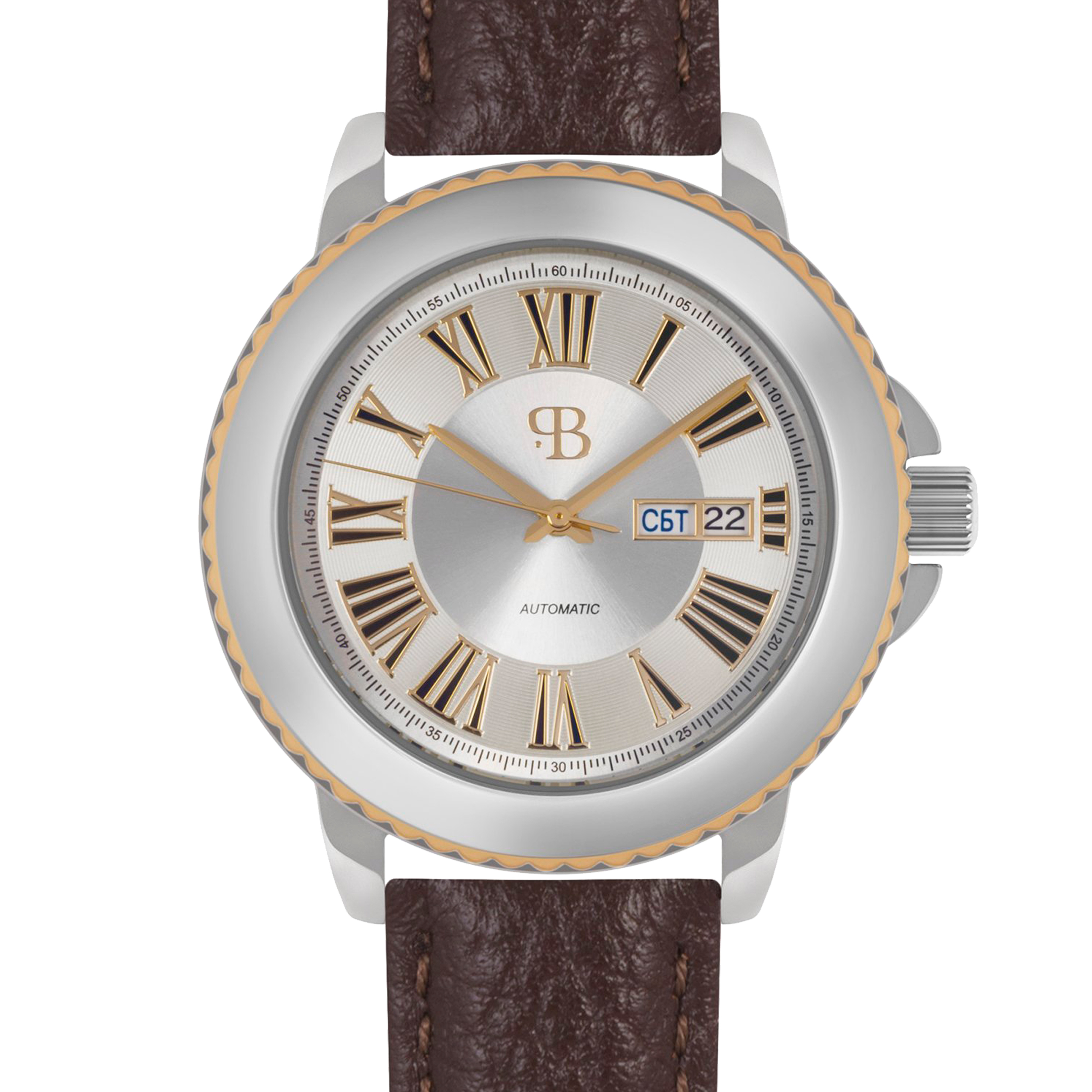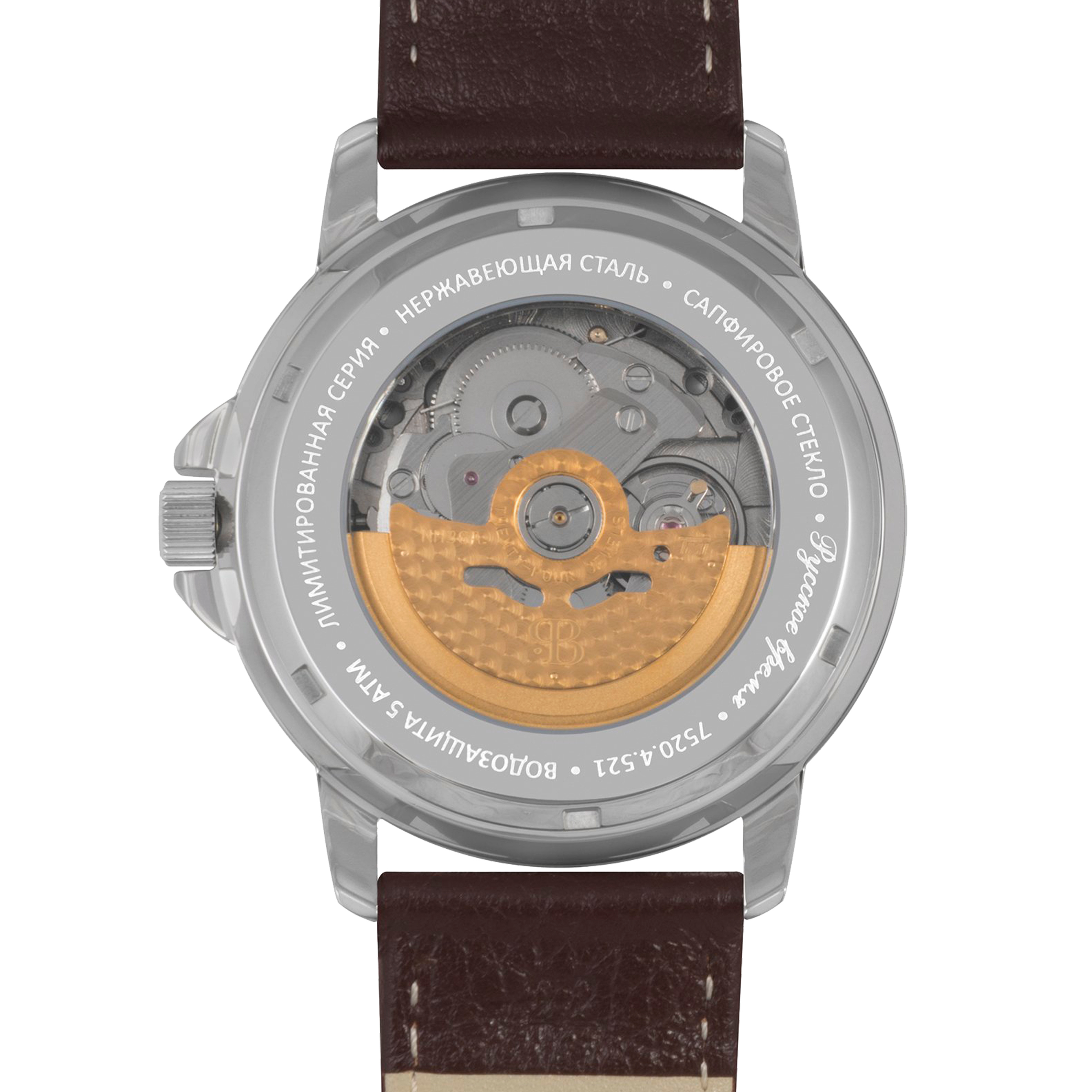 Наручные механические часы Русское время золотисто-серебристые с коричневым ремешком