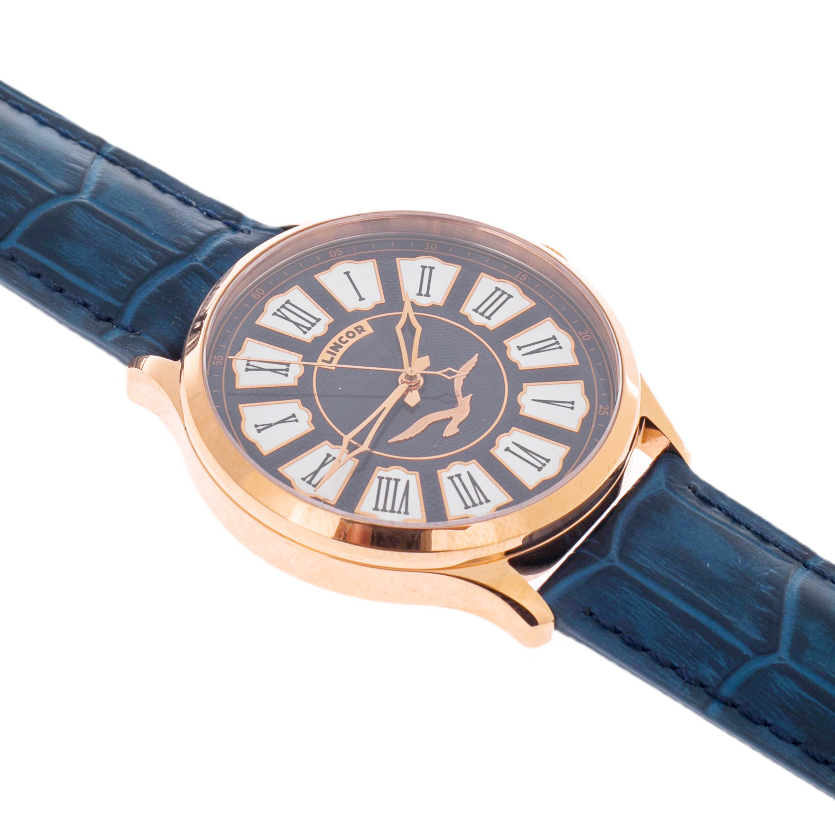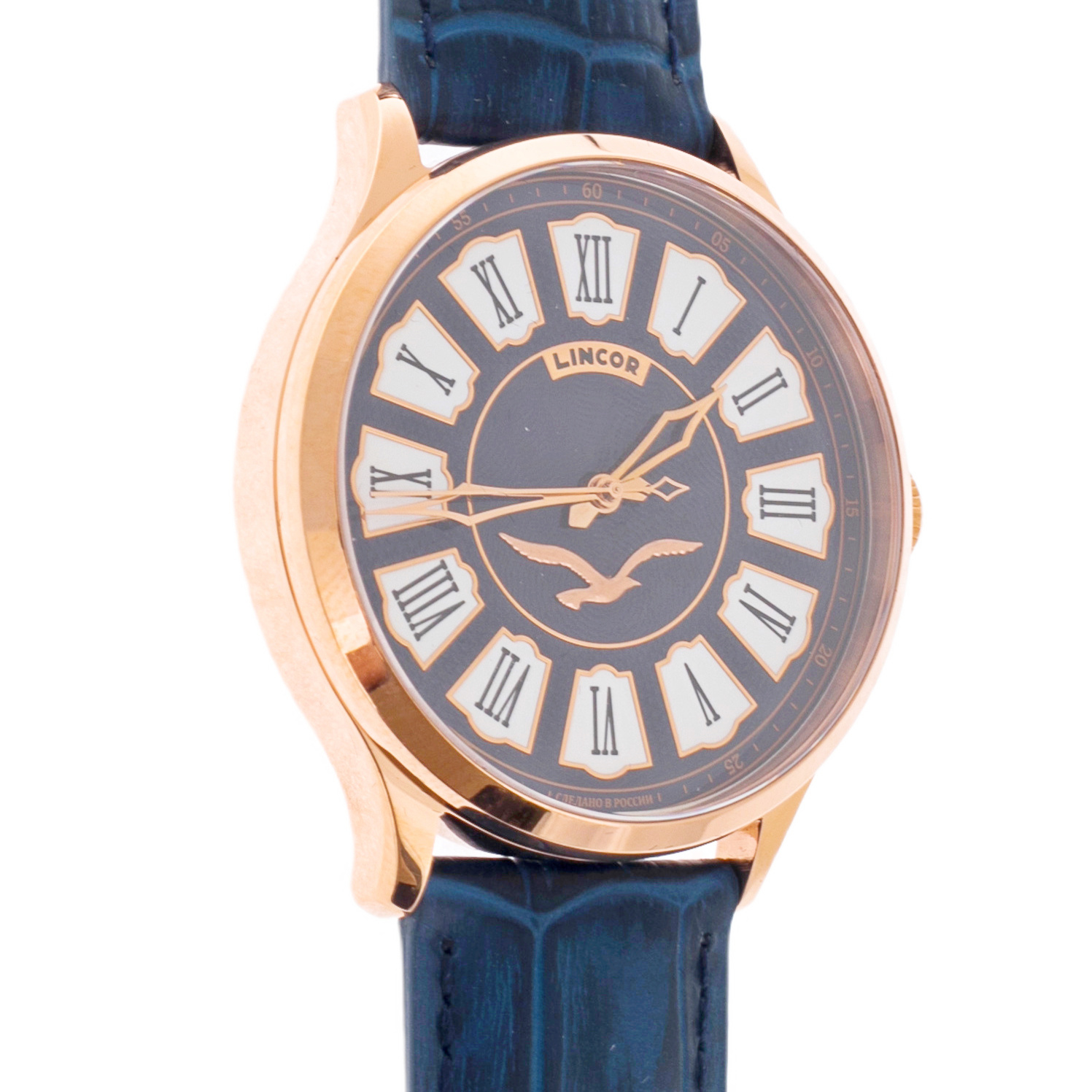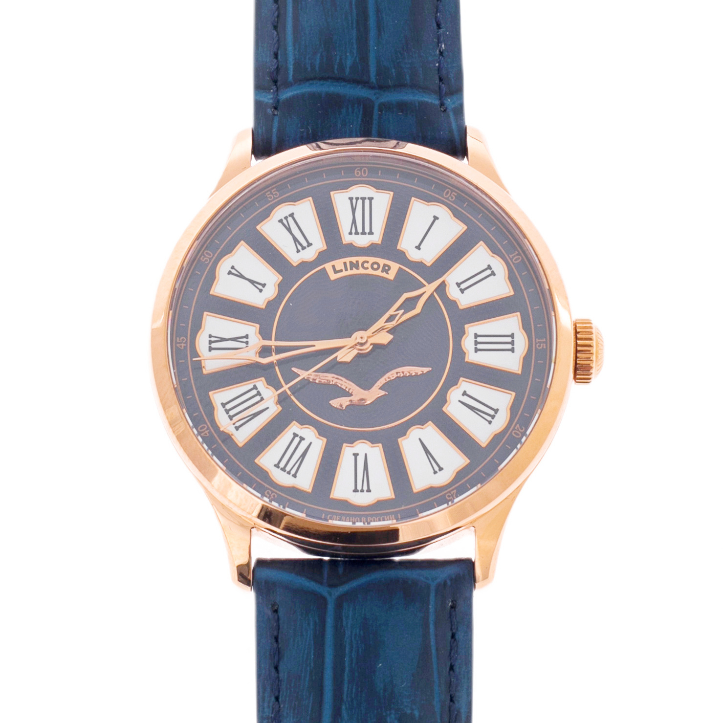 Наручные механические часы с автоподзаводом Lincor UNI с синим ремешком
