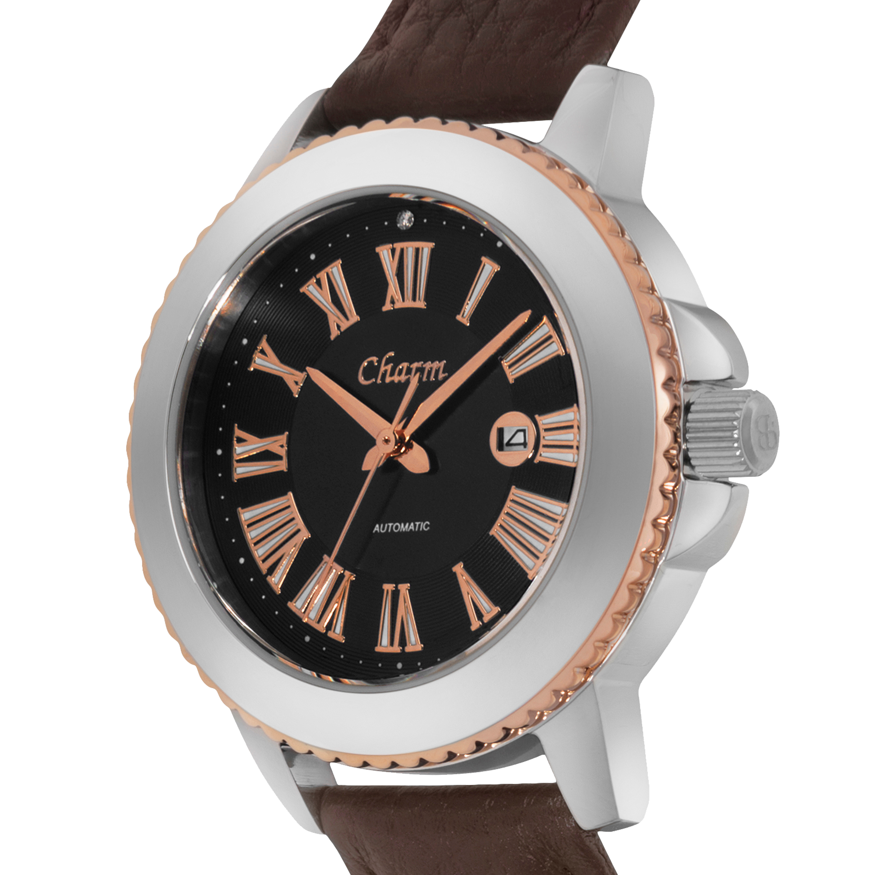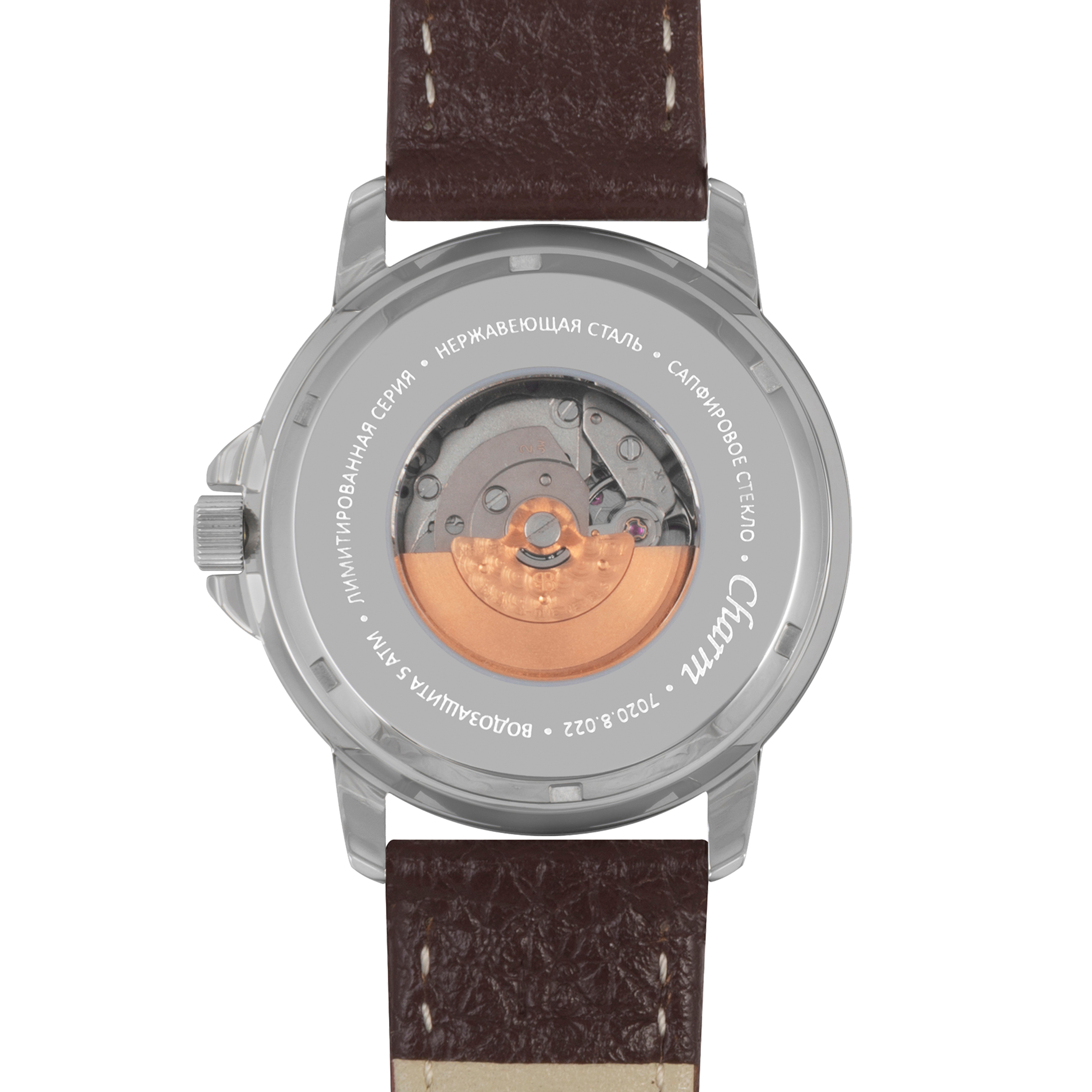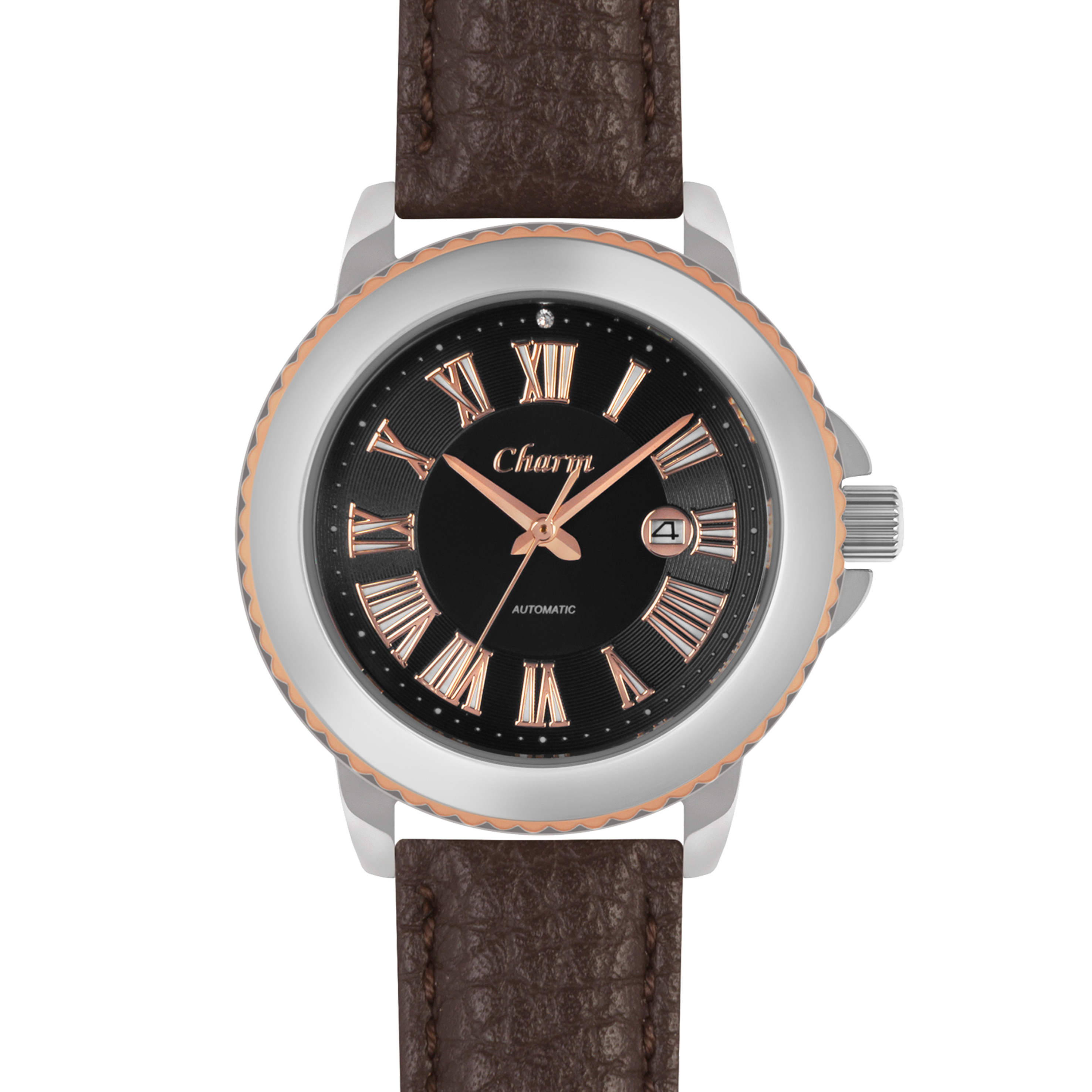Наручные механические часы Шарм черно- серебристые с коричневым ремешком