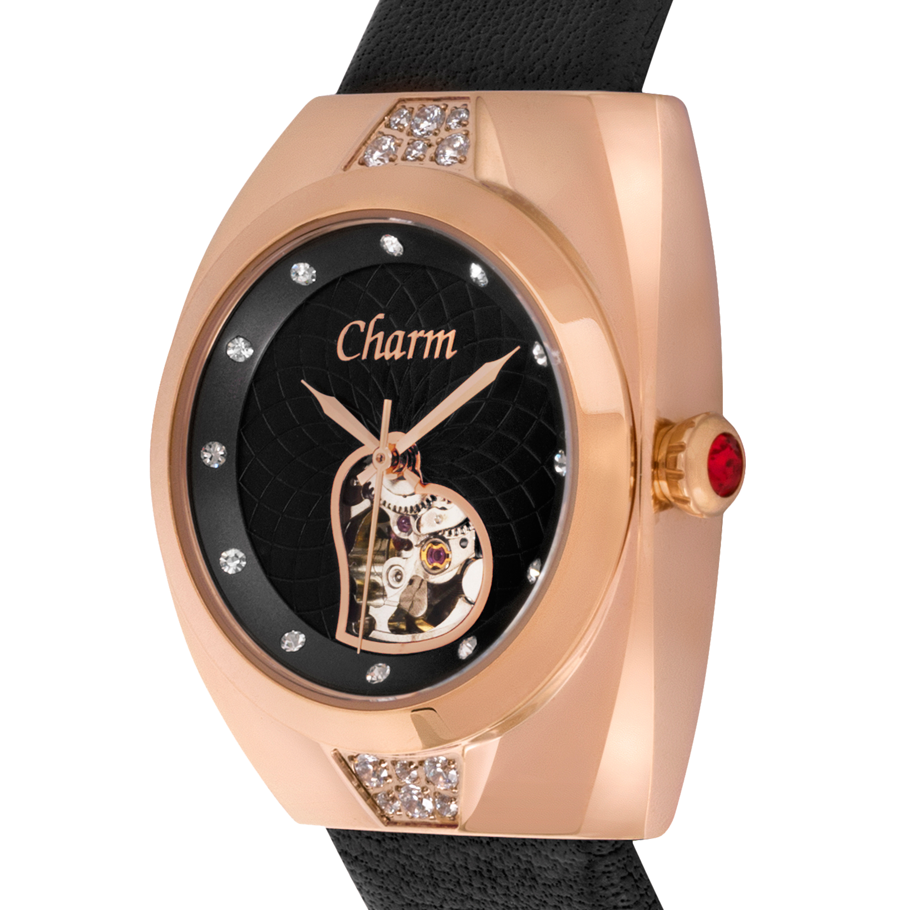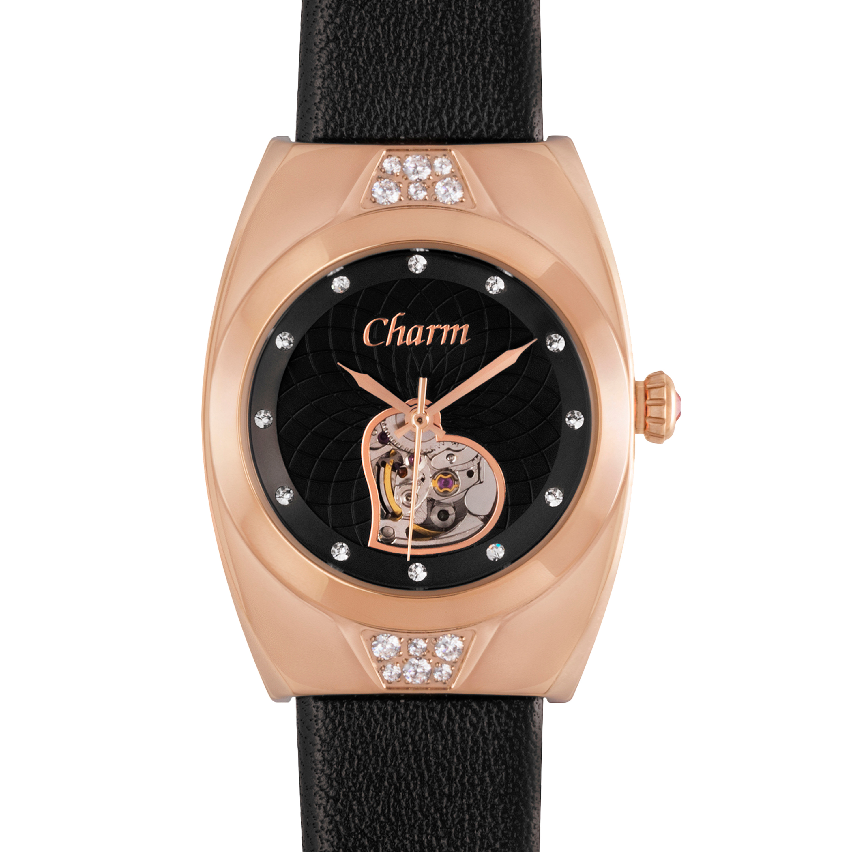 Наручные механические часы Шарм черно-золотистые с черным ремешком