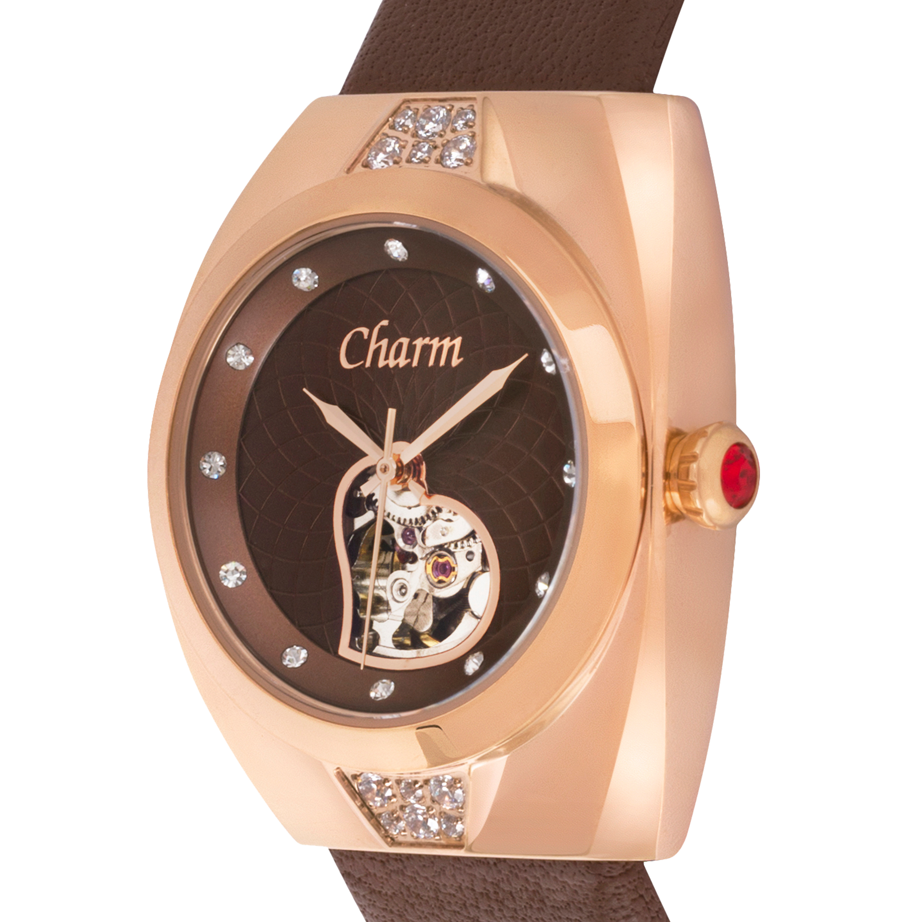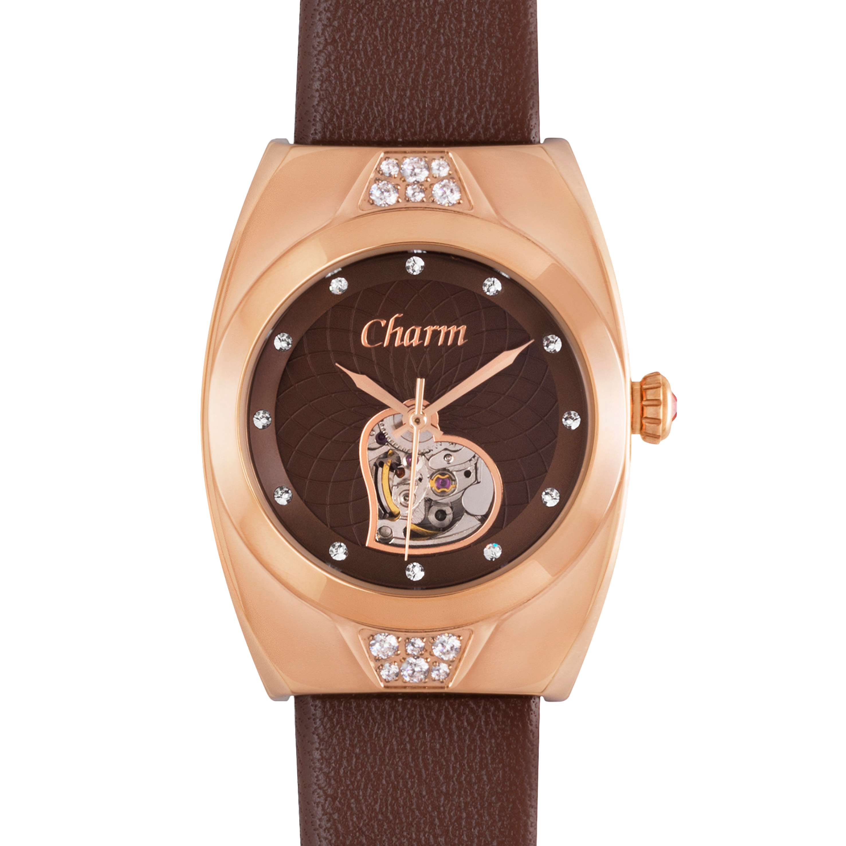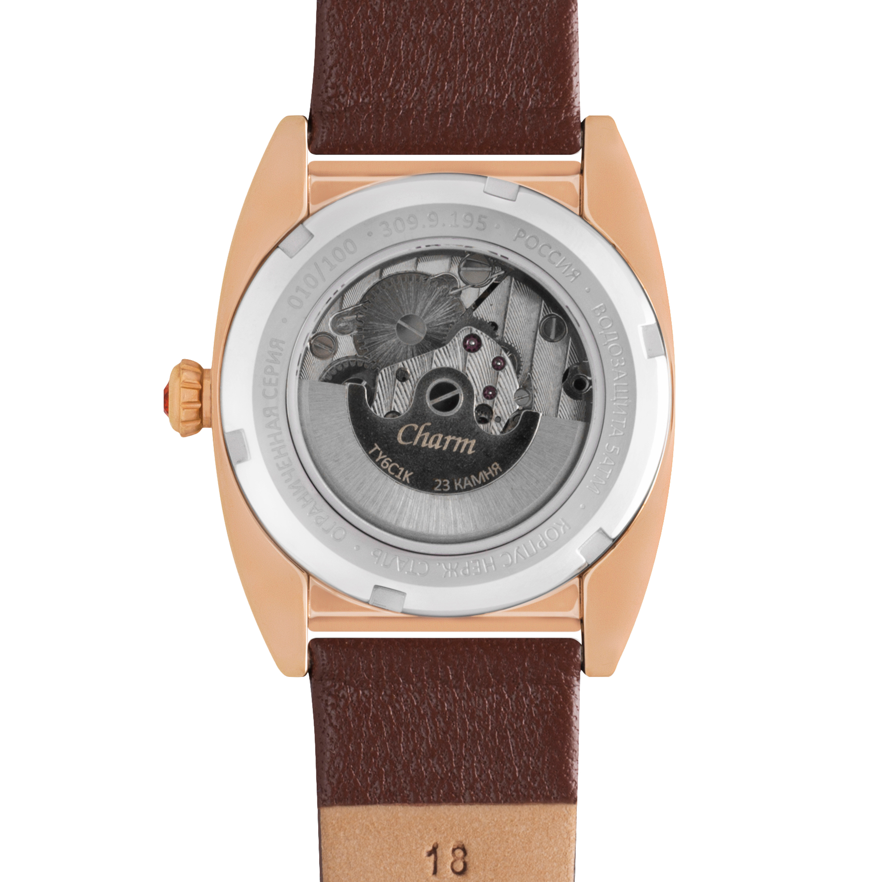 Наручные механические часы Шарм коричнево-золотистые с коричневым ремешком
