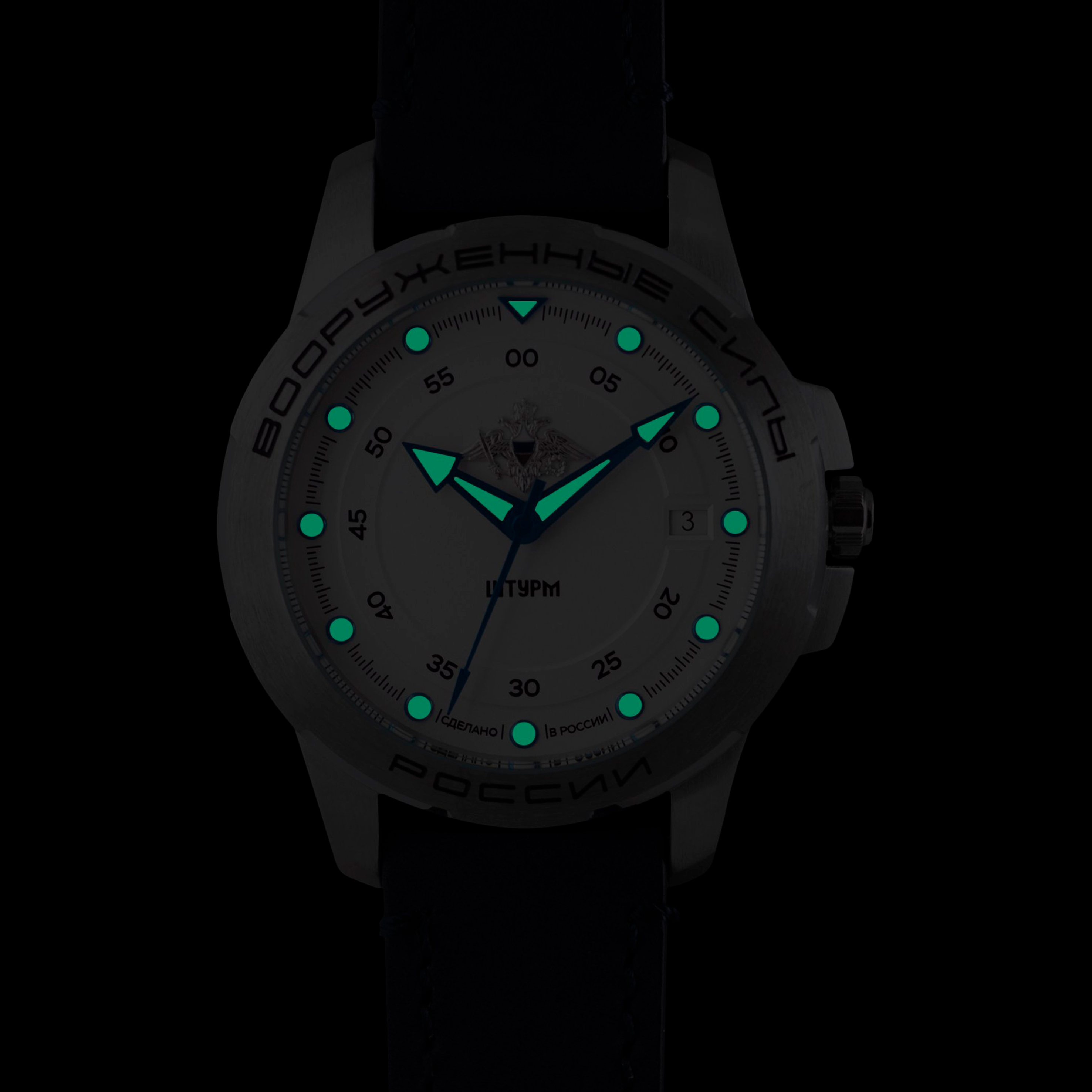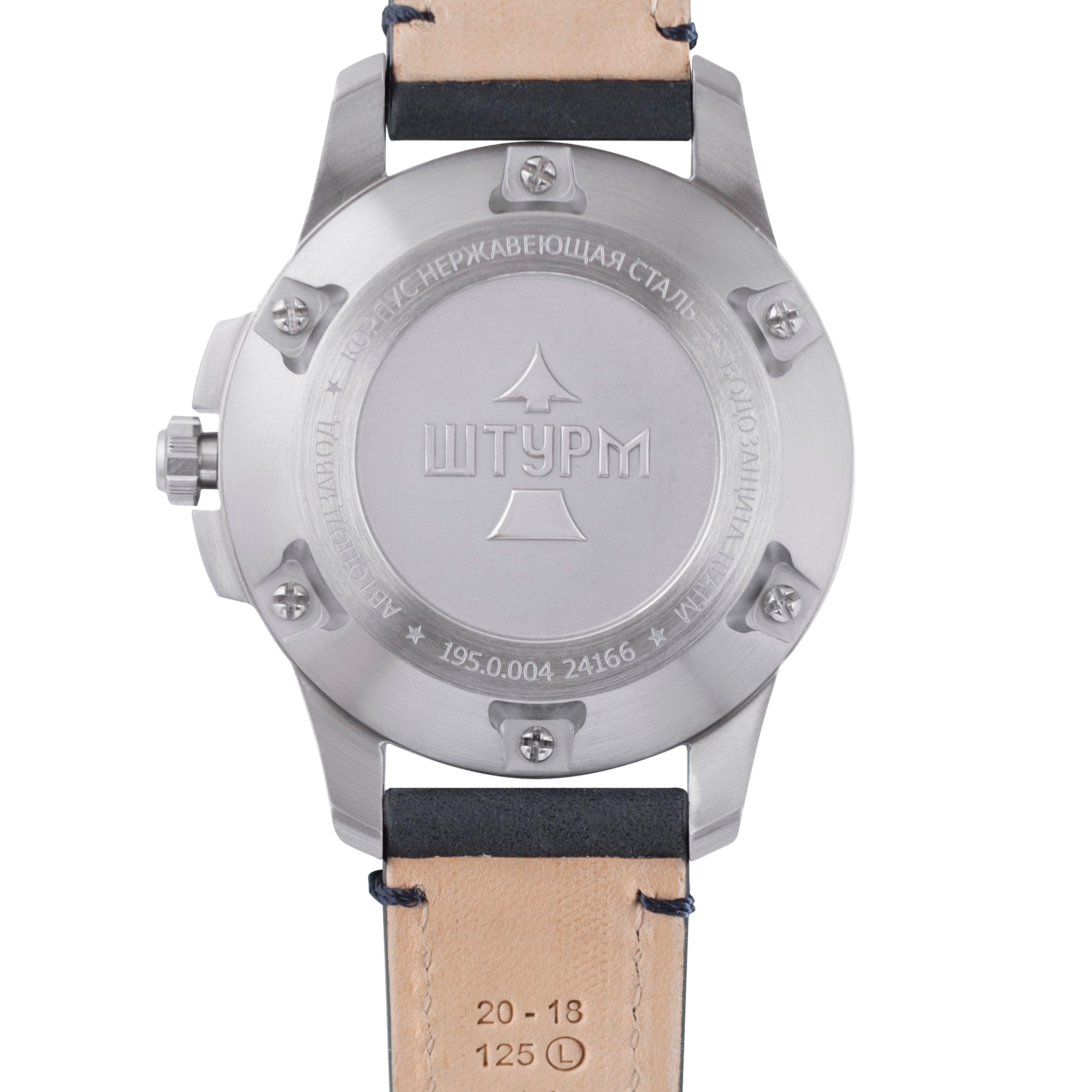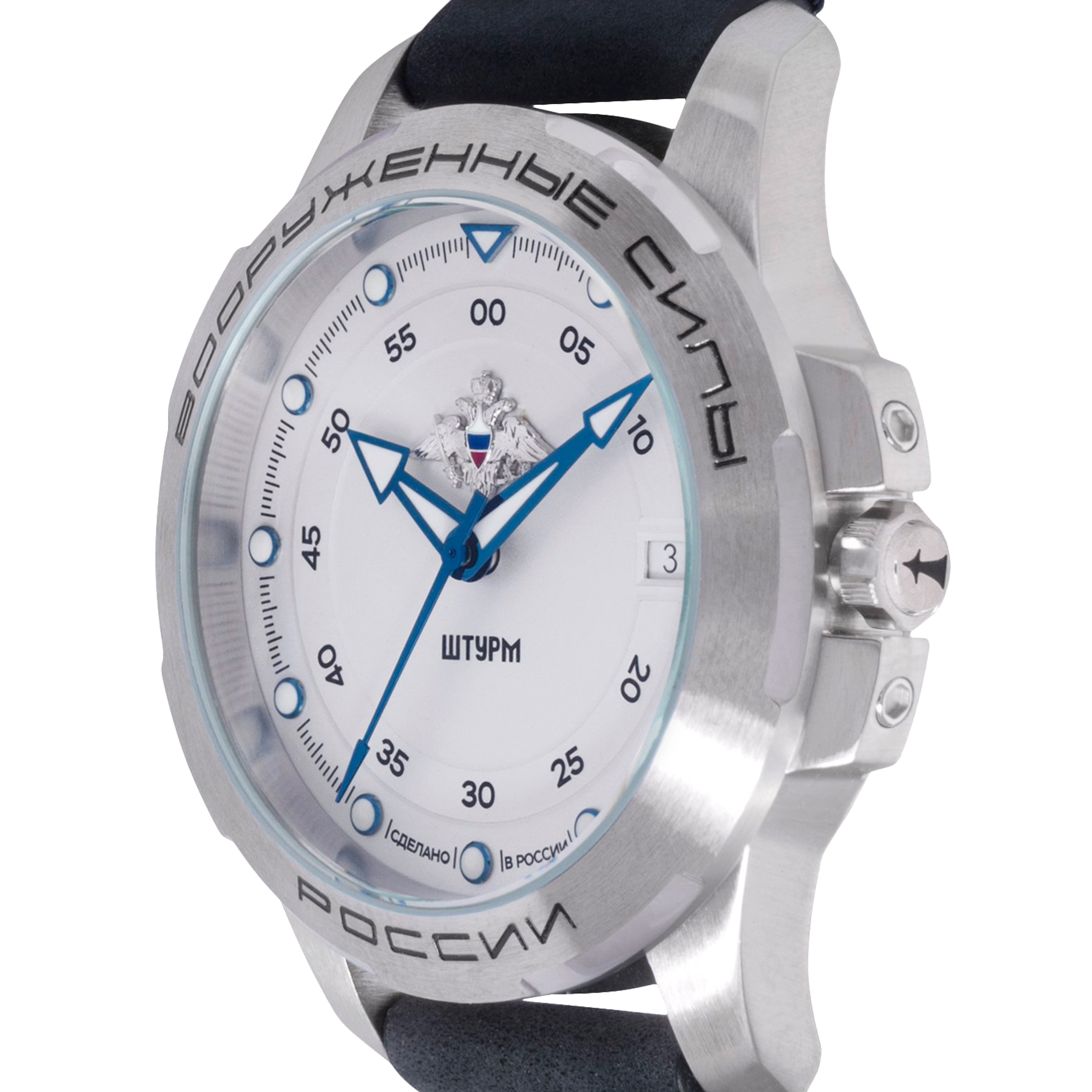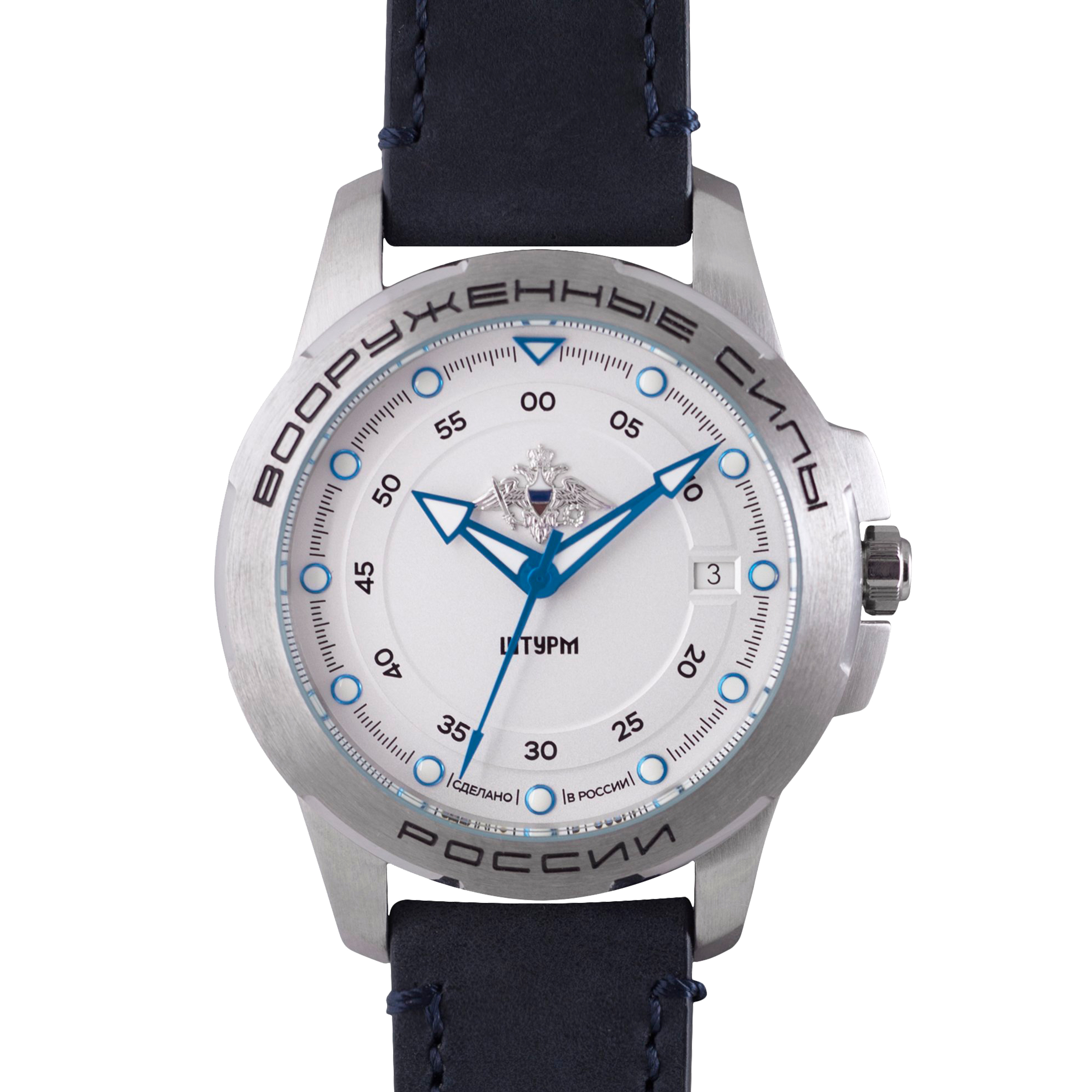Наручные механические часы Штурм бело-серебристые, с темно-синим ремешком