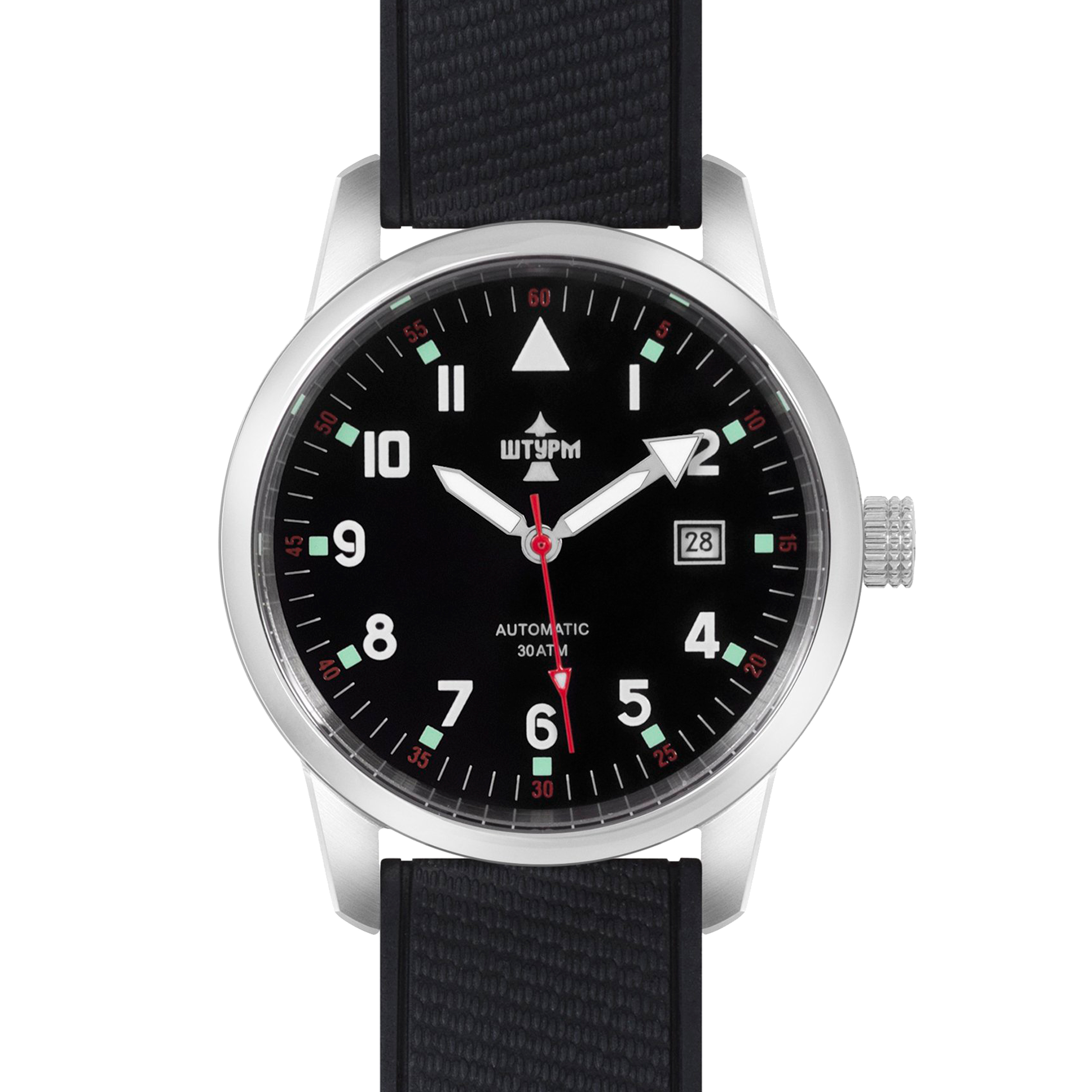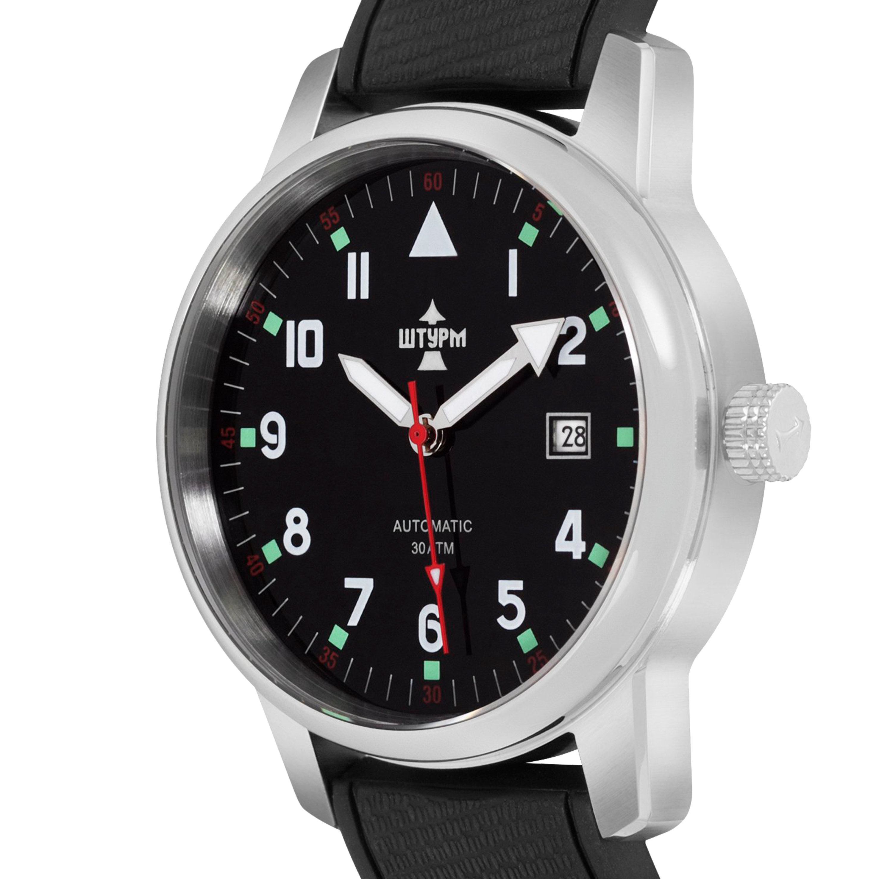 Наручные механические часы Штурм черно-серебристые, с черным ремешком