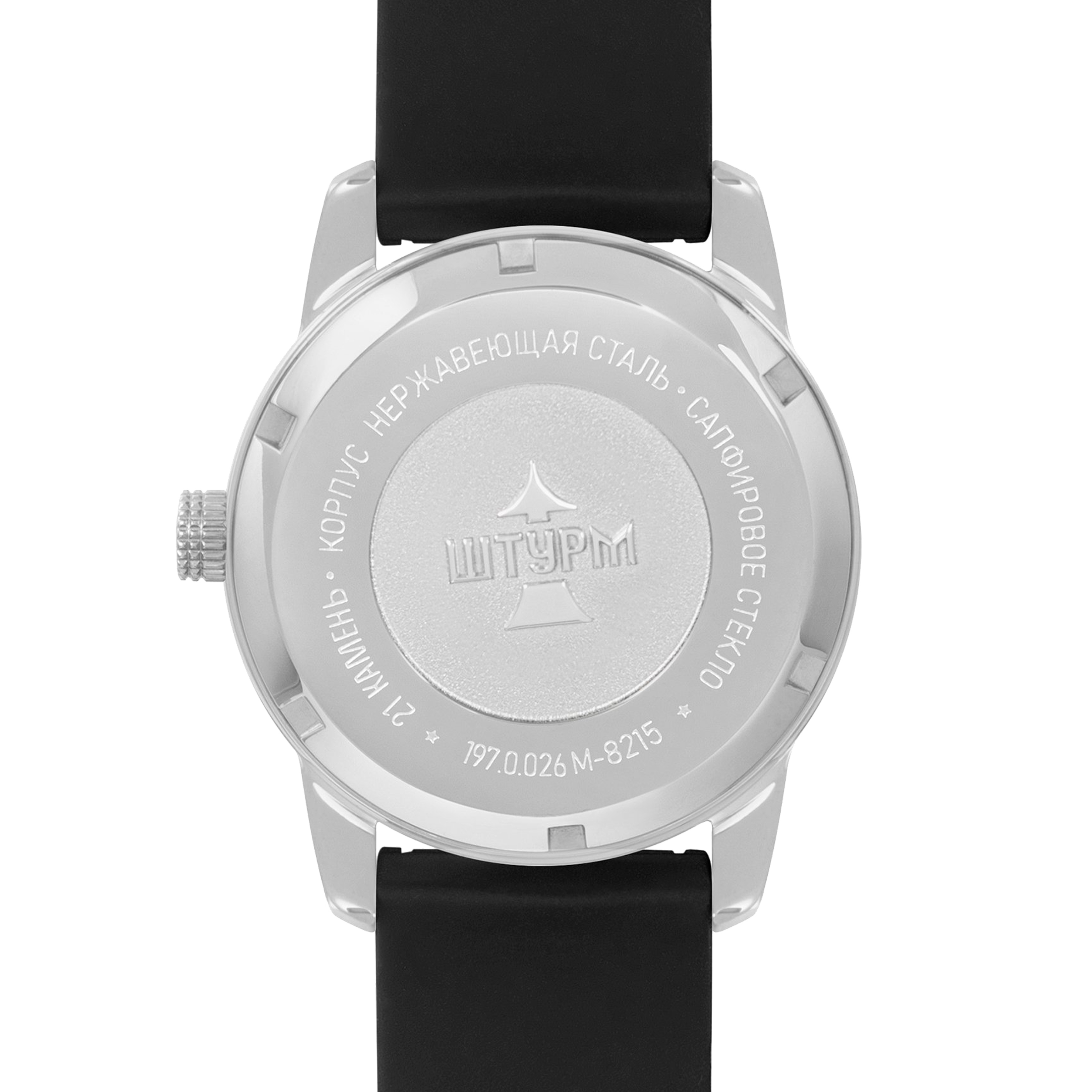 Часы Штурм станут настоящим подарком для уверенного в себе мужчины, который ценит надежность. Толстый корпус из нержавеющей стали не подвержен коррозии, ему не страшны удары и прочие механические повреждения.
