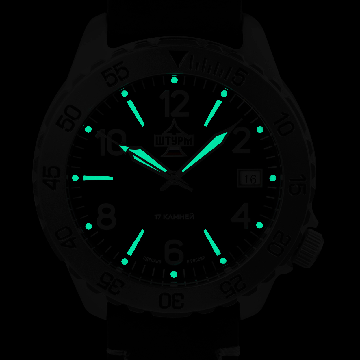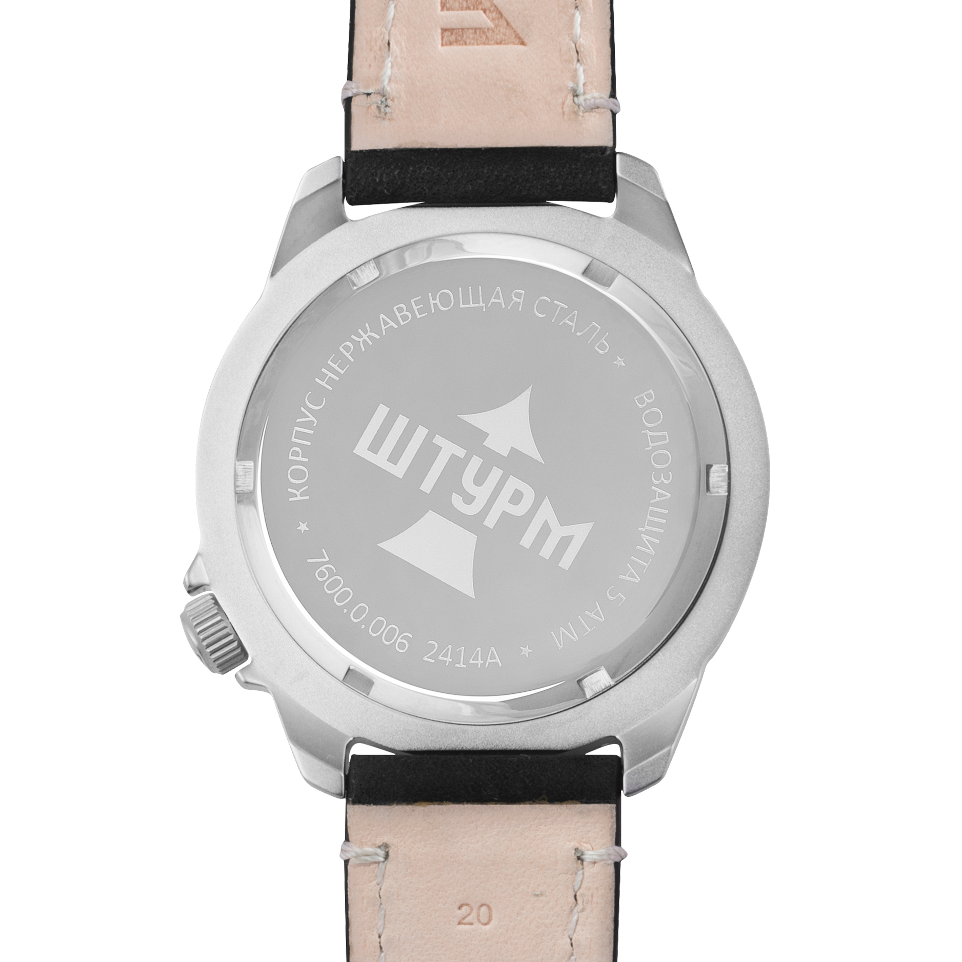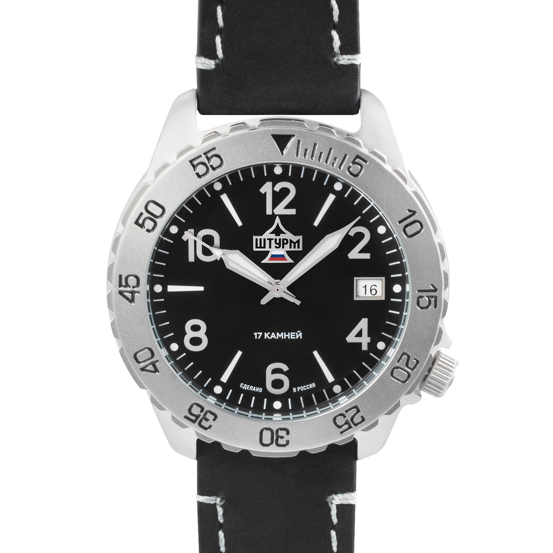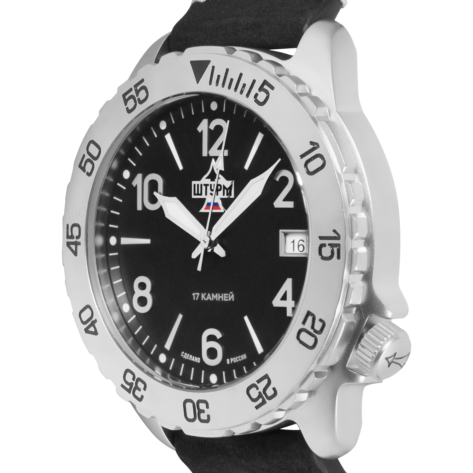 Наручные механические часы Штурм черно-серебристые, с черным ремешком