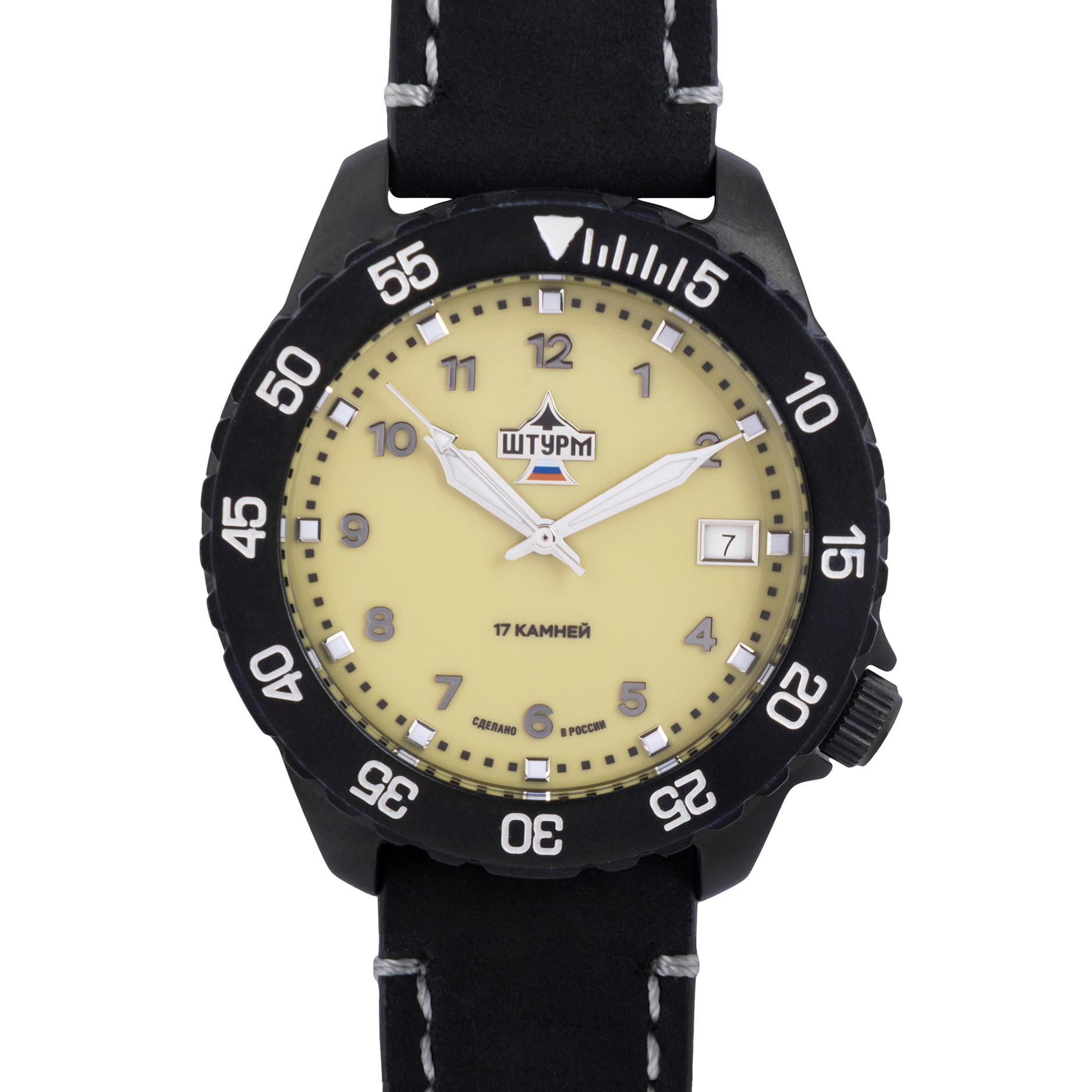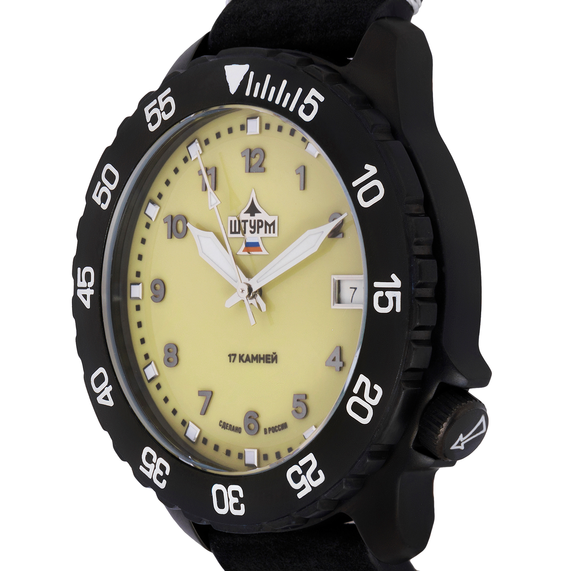 Наручные механические часы Штурм черно-желтые, с черным ремешком