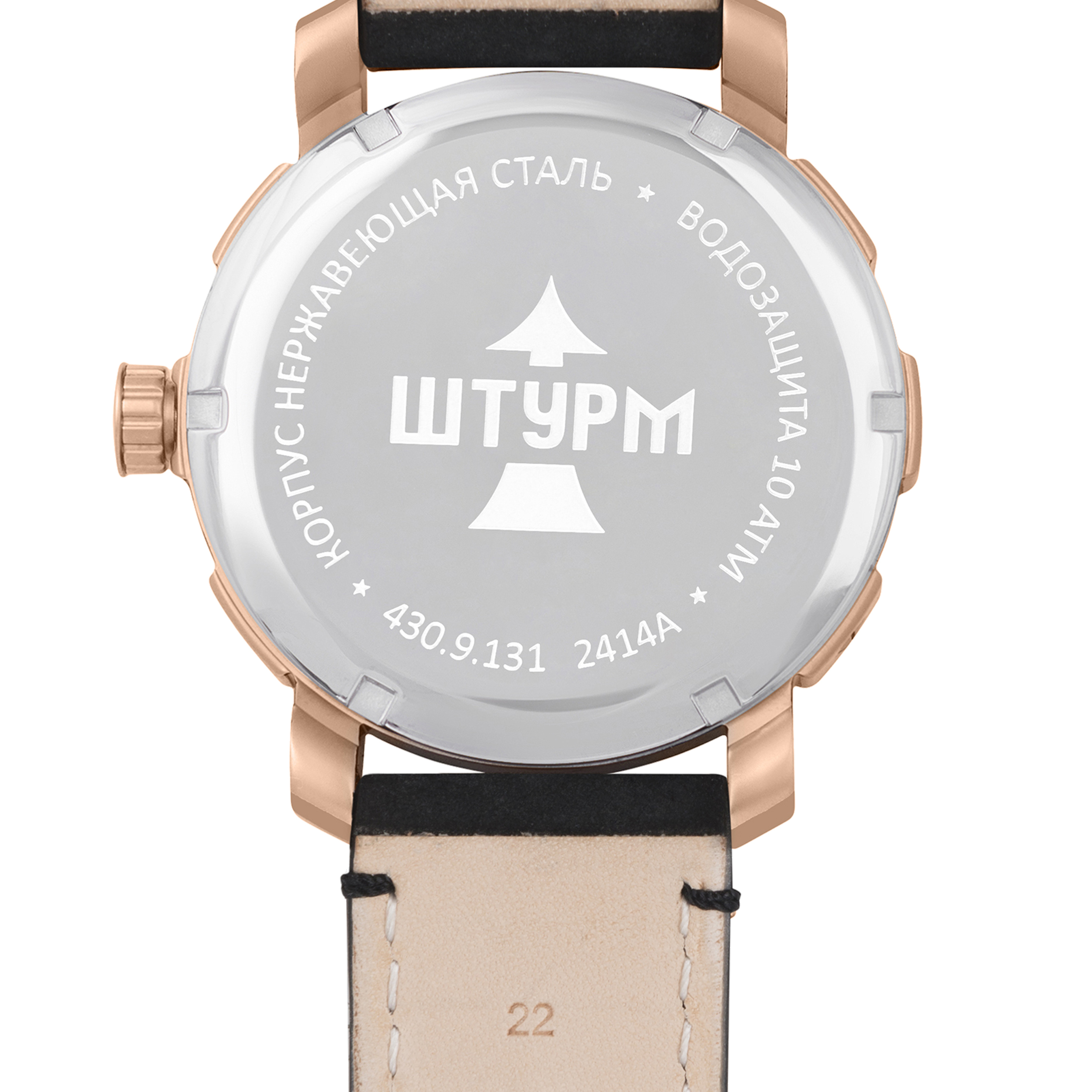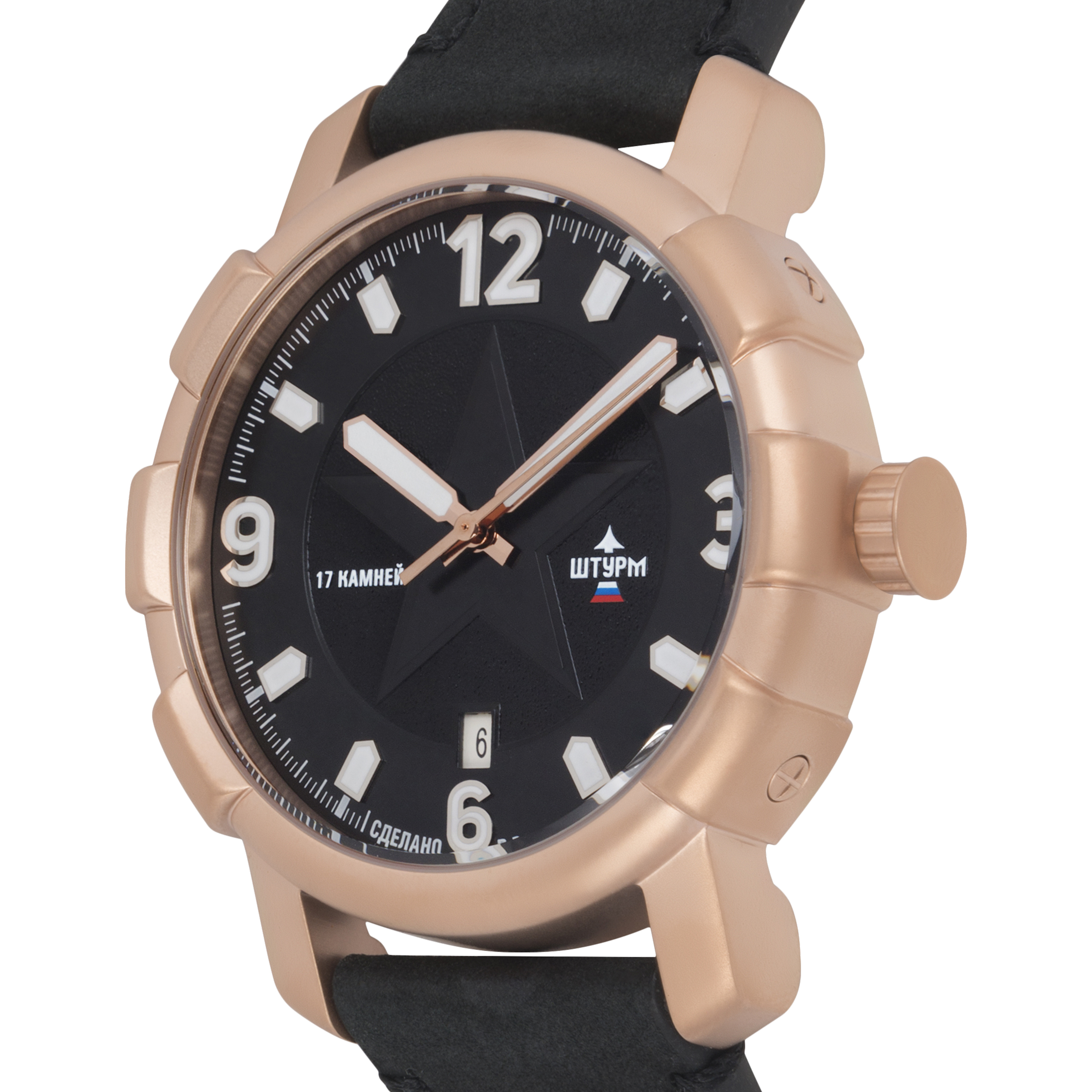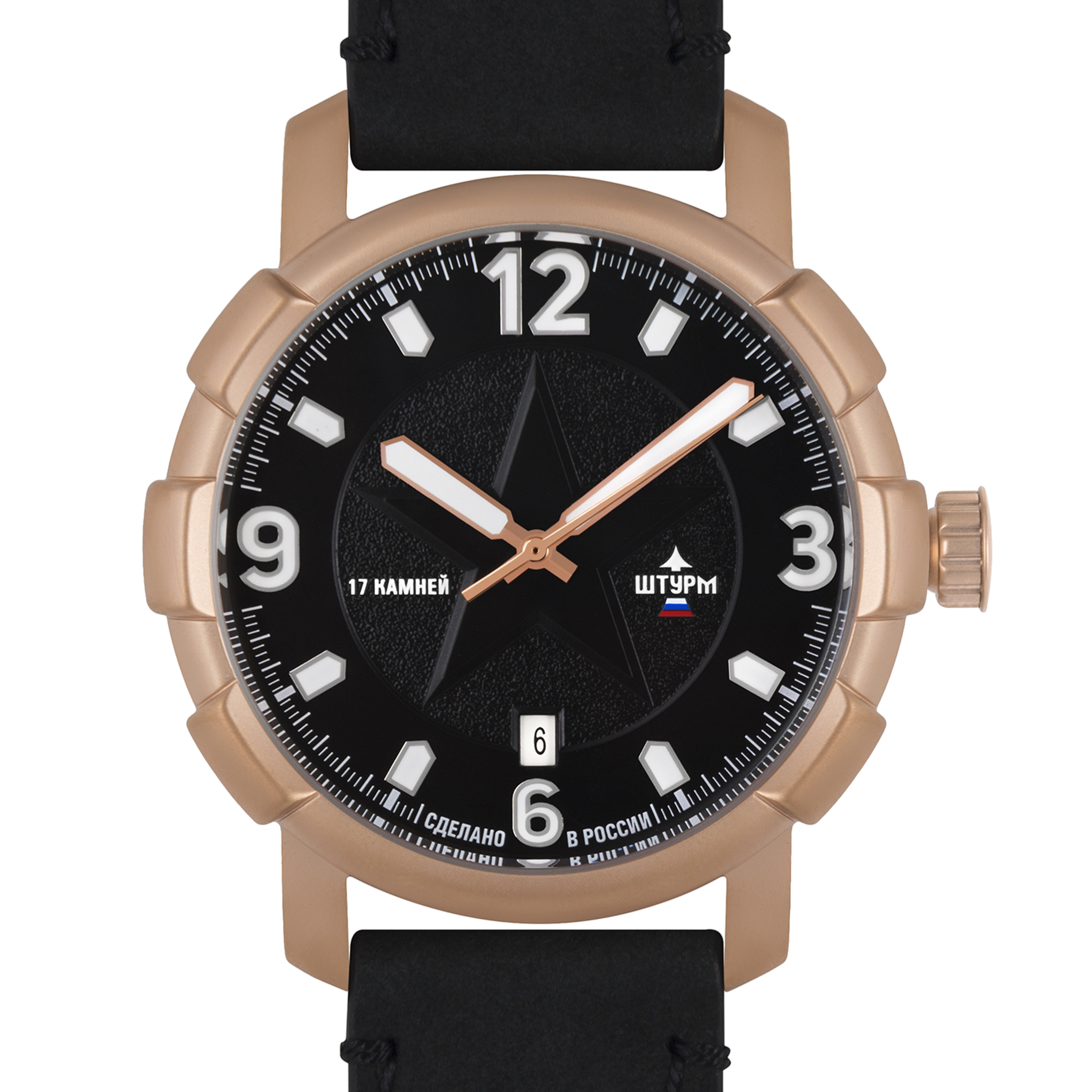 Наручные механические часы Штурм черно-золотистые, с черным ремешком