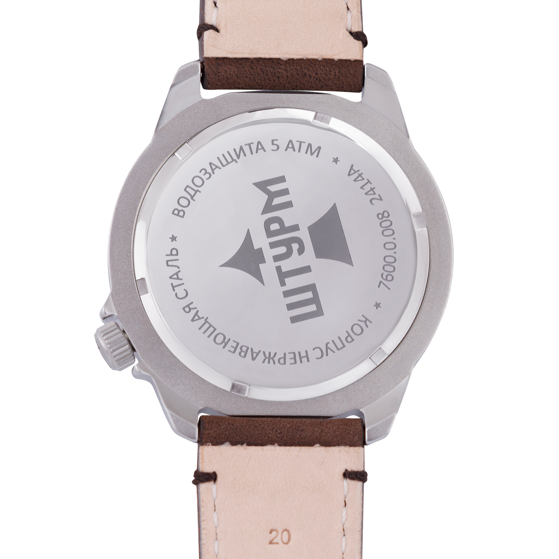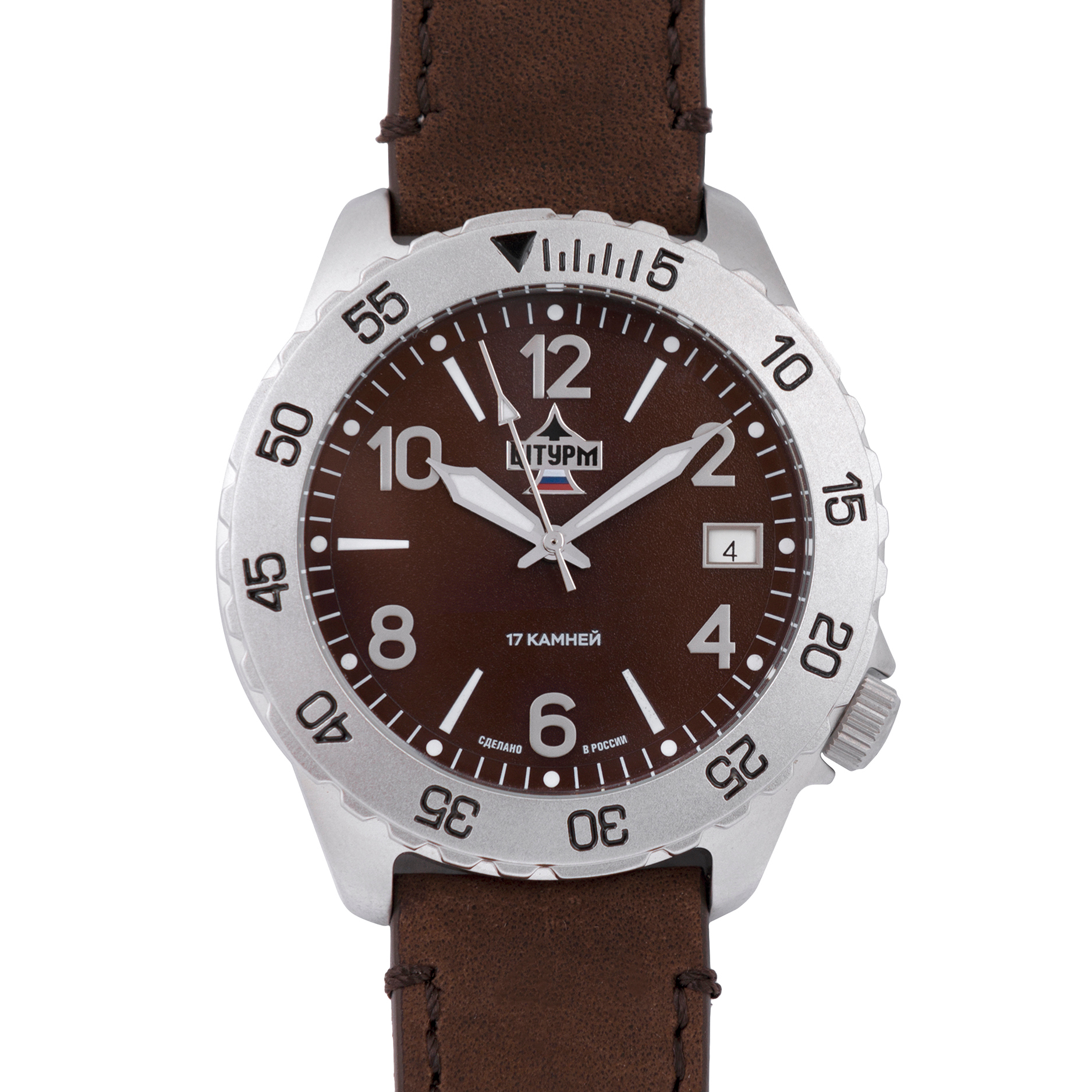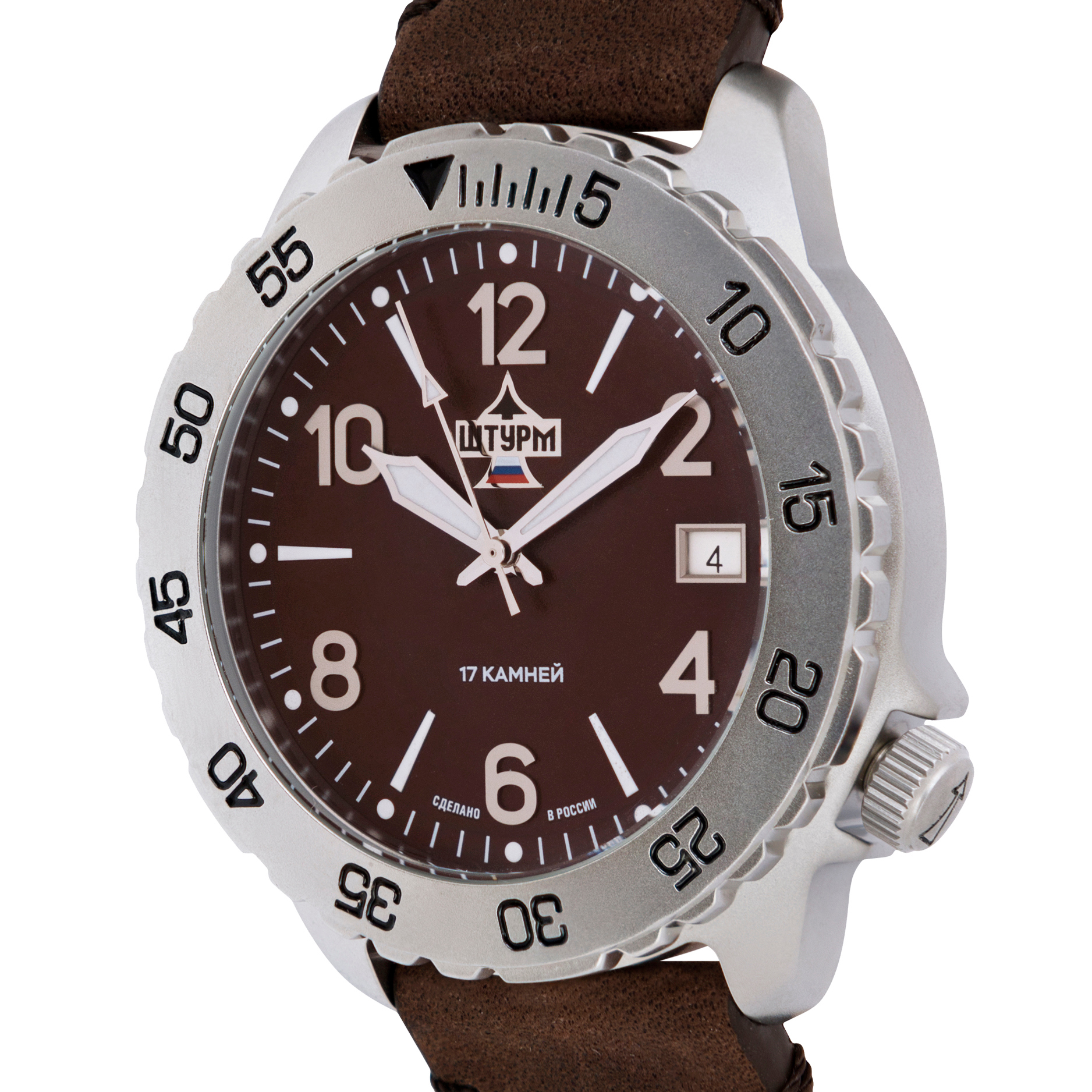 Наручные механические часы Штурм коричнево-серебристые, с коричневым ремешком