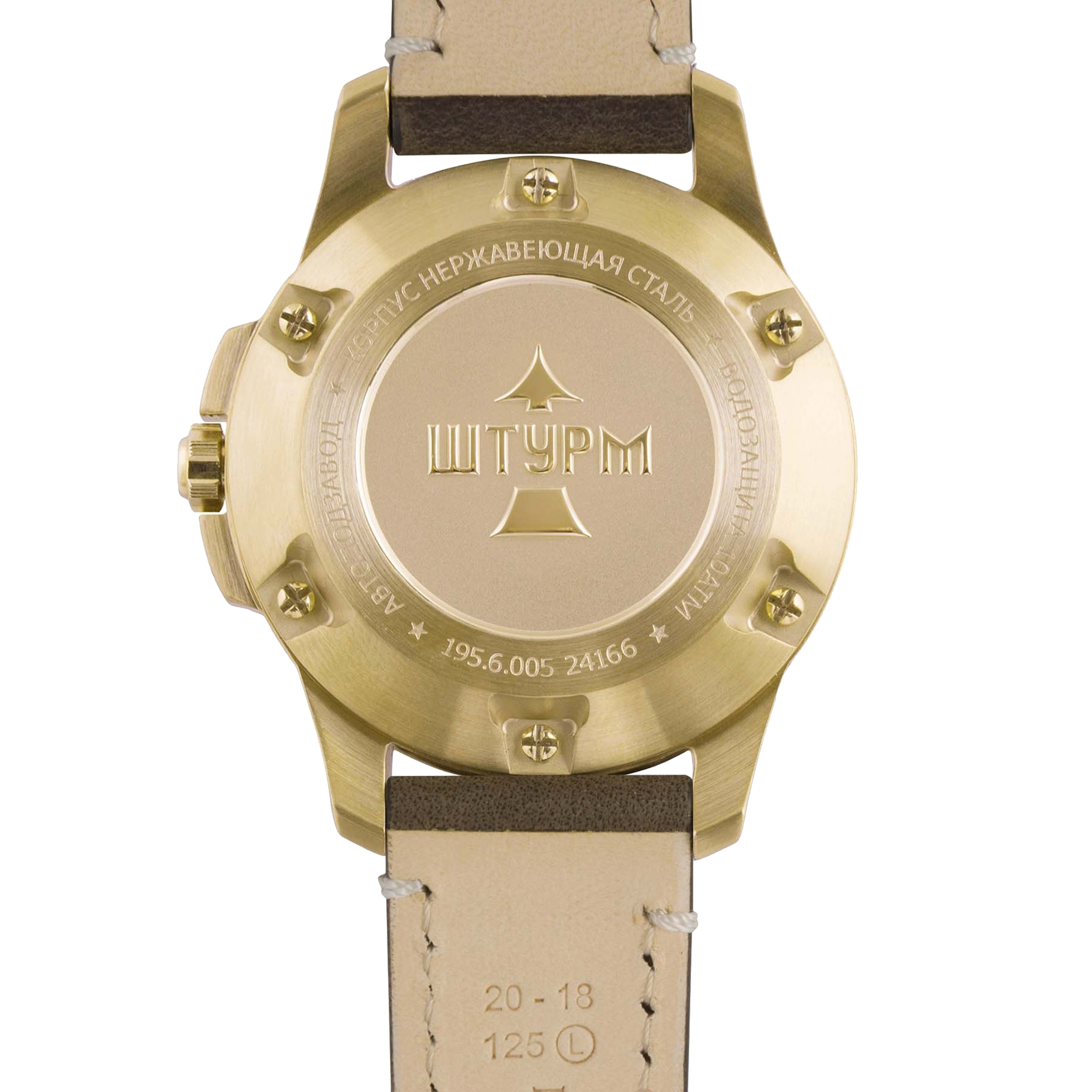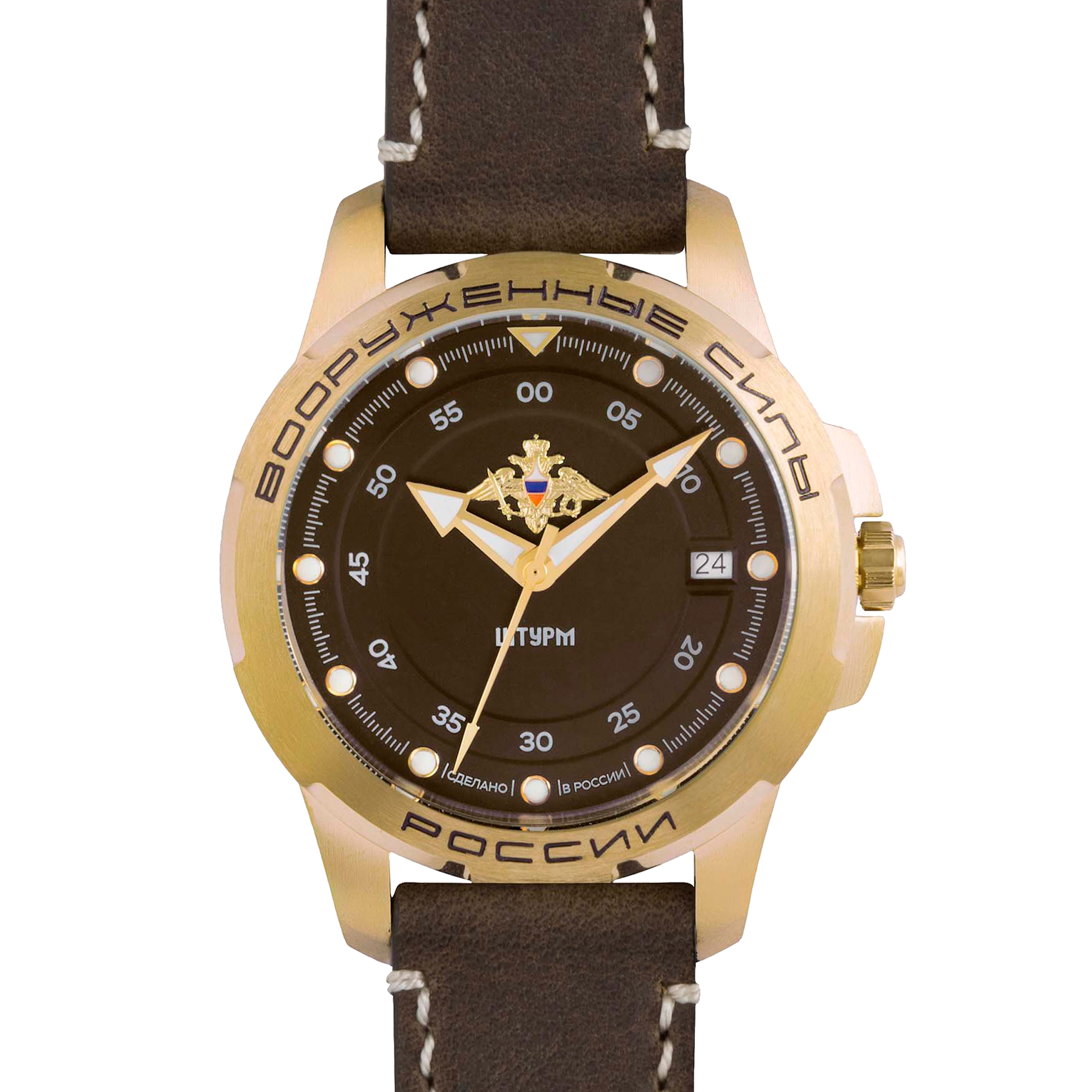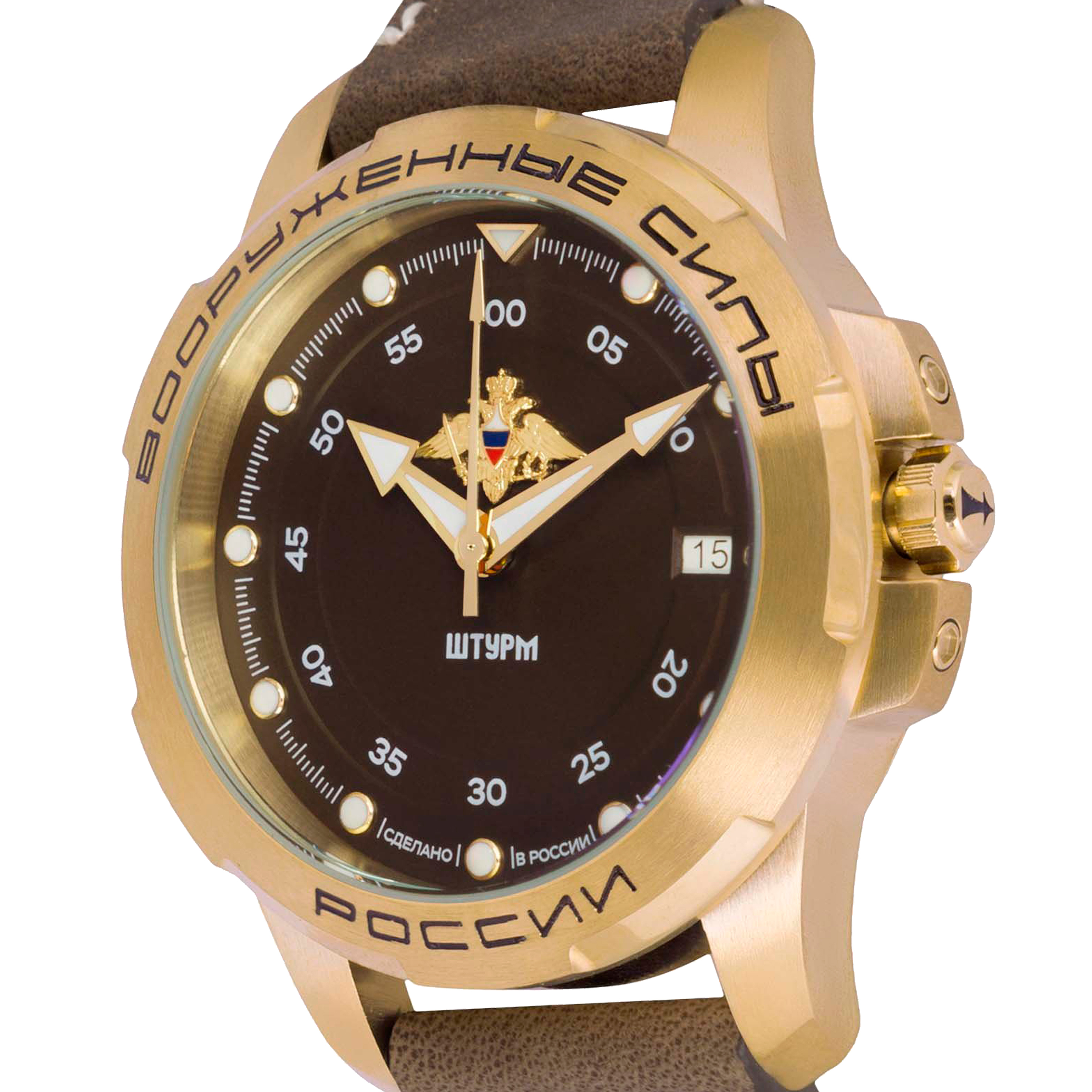 Наручные механические часы Штурм коричнево-золотистые, с коричневым ремешком