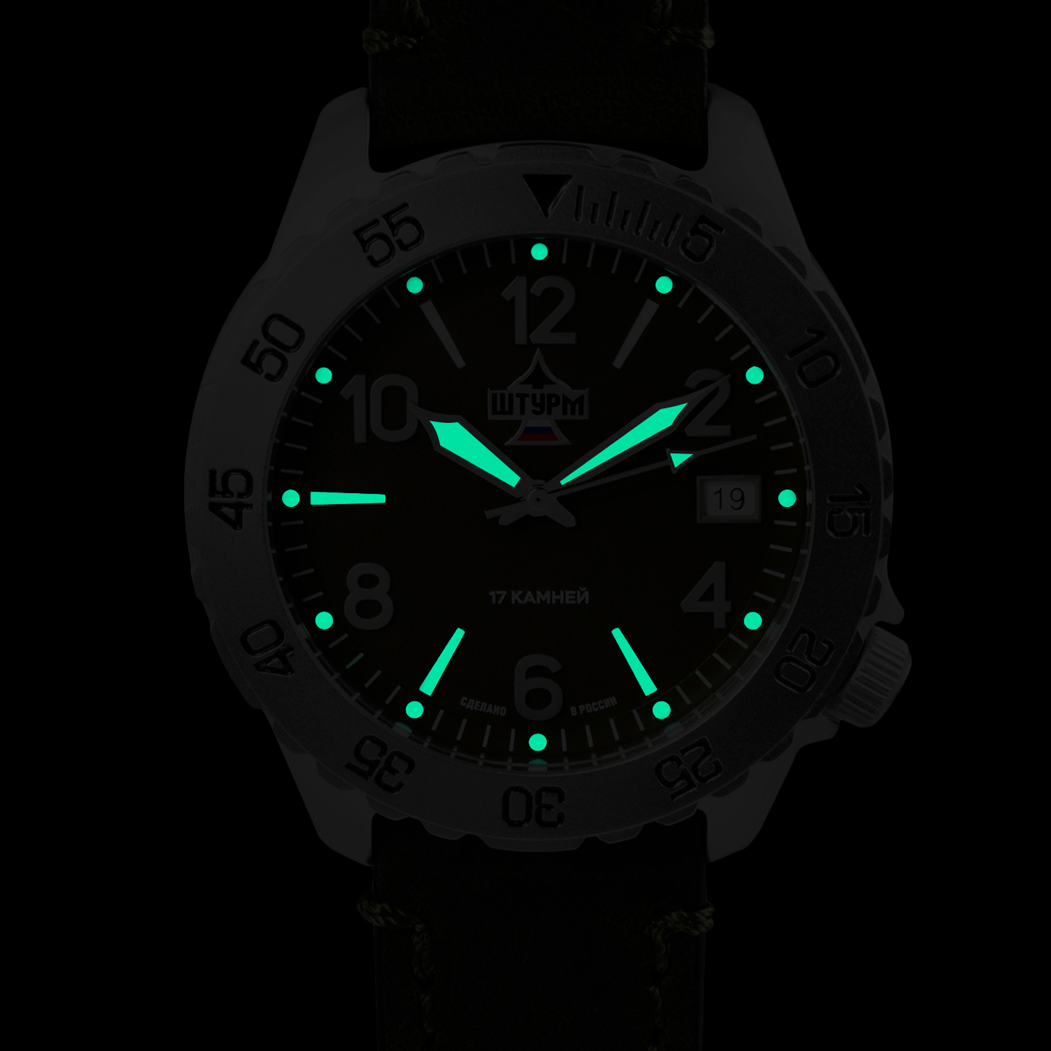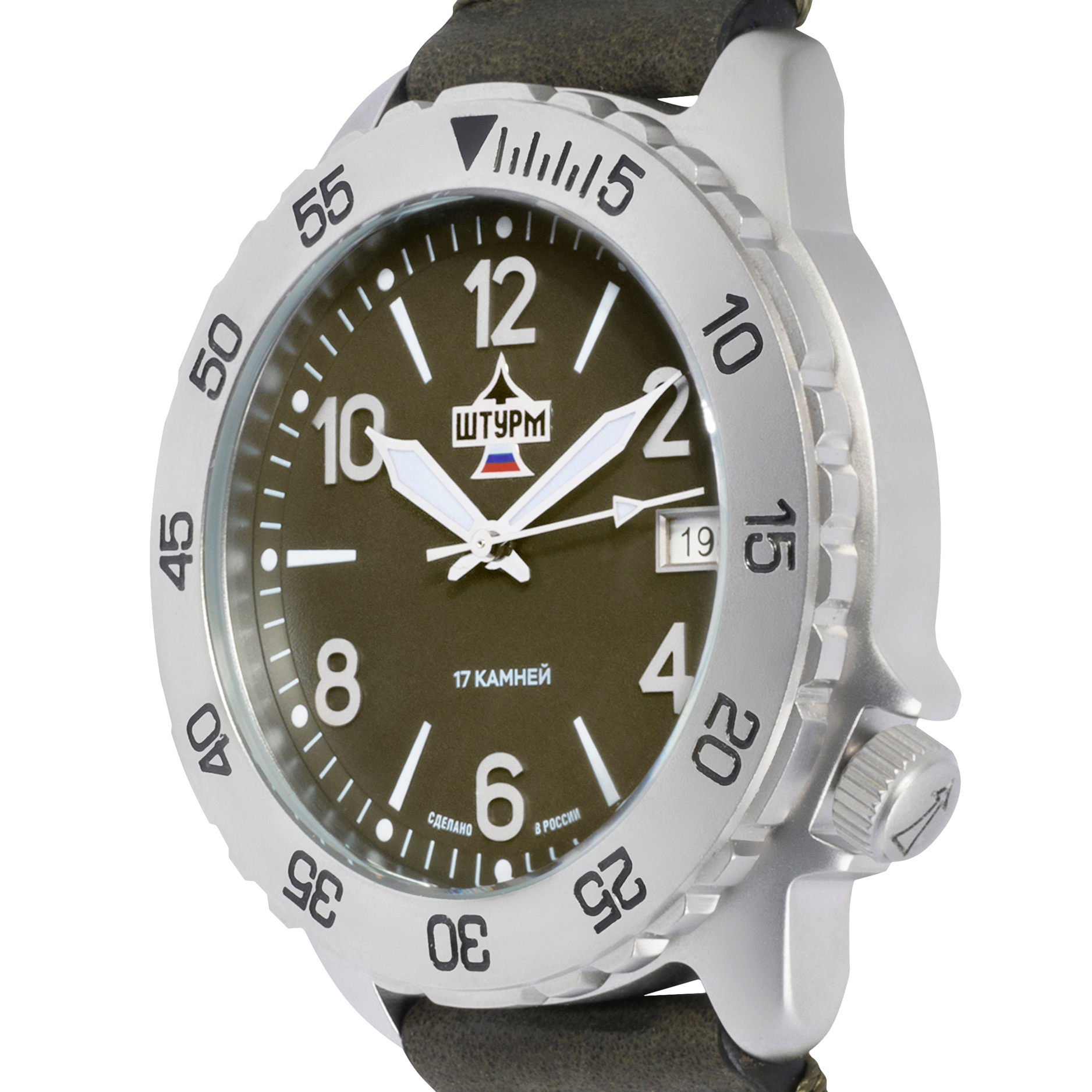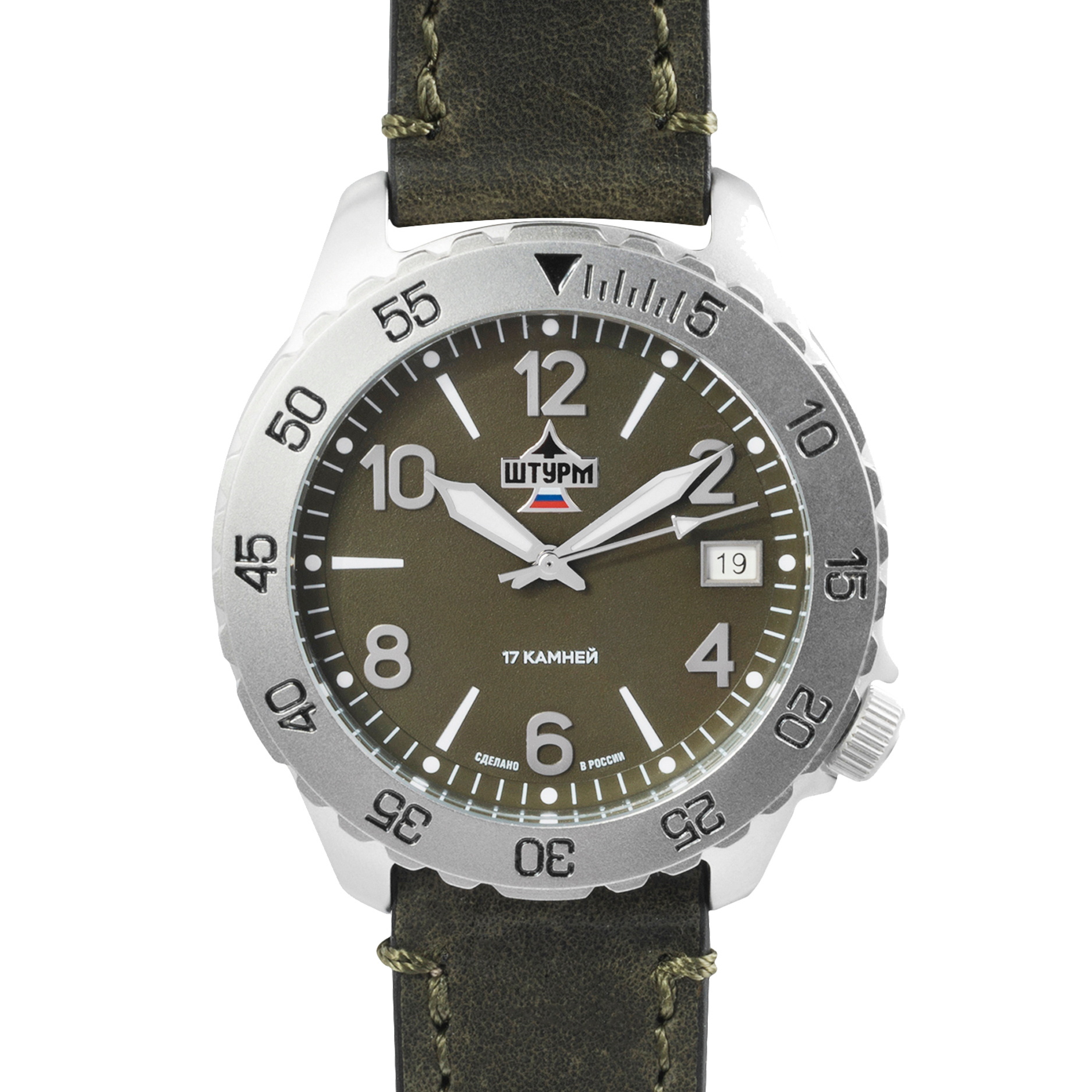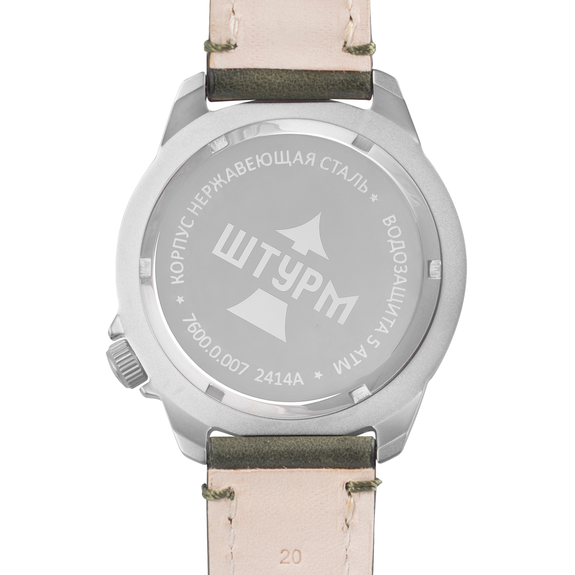 Наручные механические часы Штурм зелено-серебристые, с зеленым ремешком