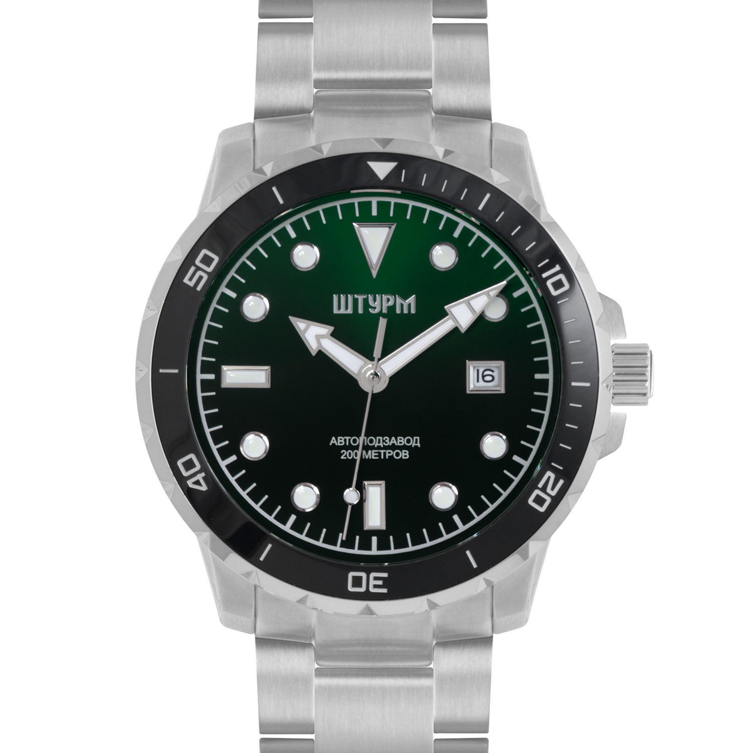 Наручные механические часы Штурм зелено-серебристые
